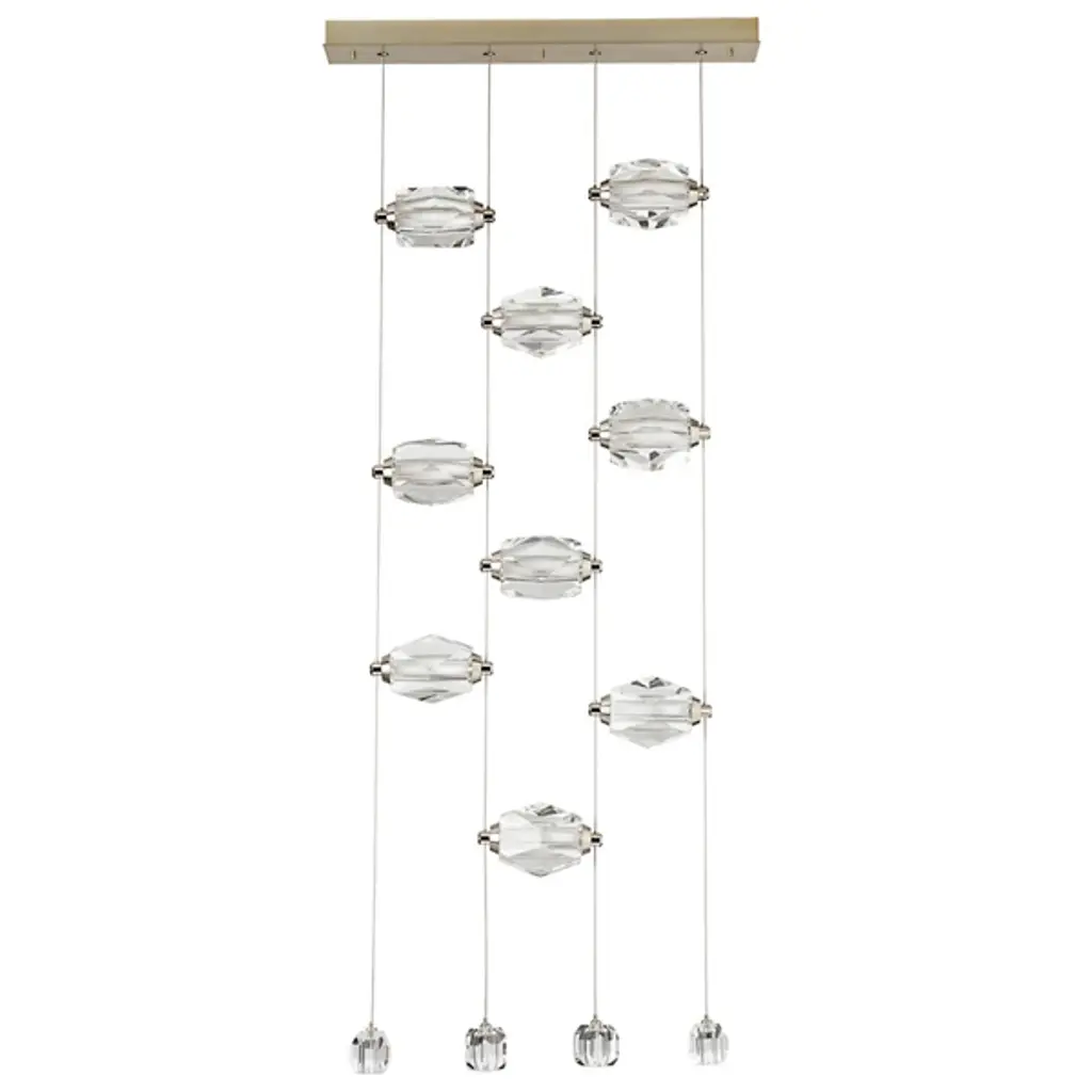 A veritable curtain of sparkling decadence for modern interiors. The Gatsby LED Linear Suspension by Hubbardton Forge is an ultra-modern take on classic crystal chandelier, with numerous crystal shades spanning slender low-voltage cables that are weighed down by crystal endpoints for added stability and shimmer. The shades can be moved up or down the cables to create just the right configuration. In place over a dining table or large foyer, this linear suspension produces both dazzling plays of light and useful ambience.