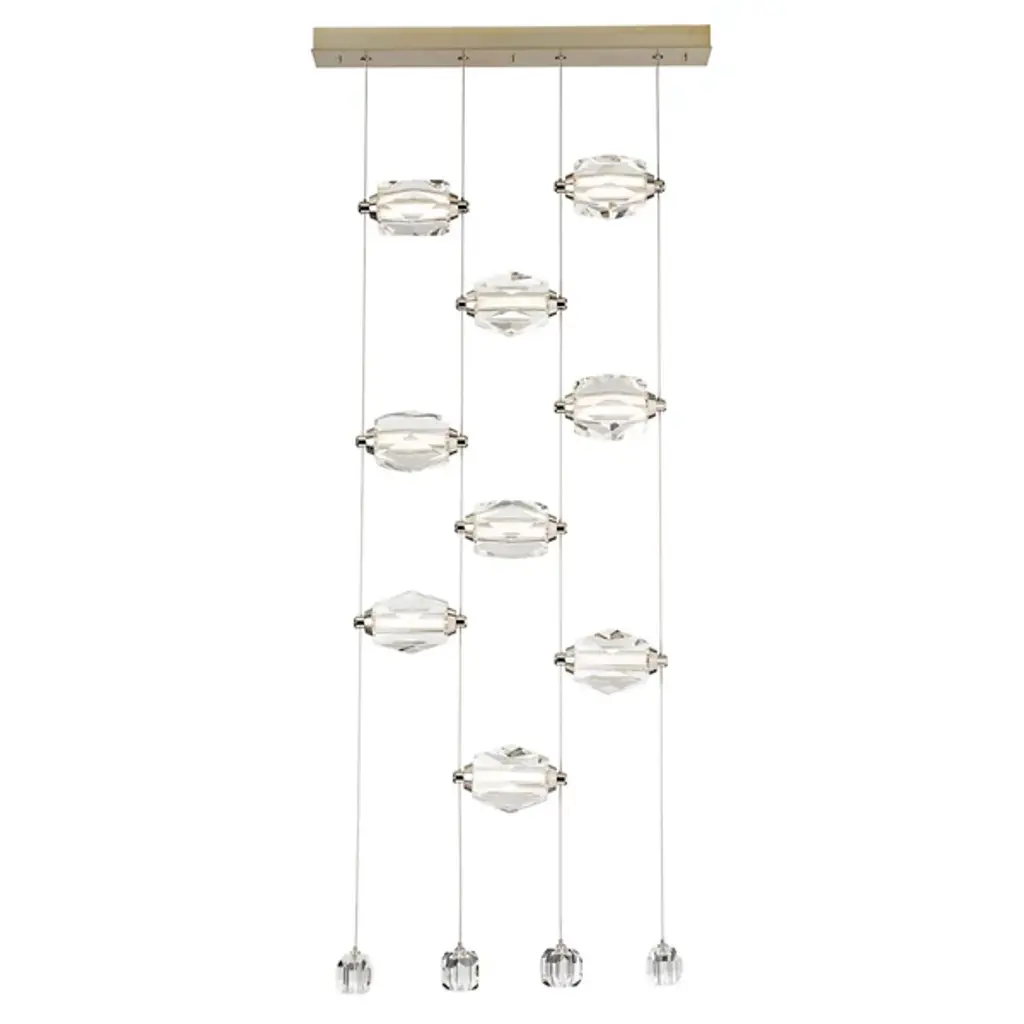 A veritable curtain of sparkling decadence for modern interiors. The Gatsby LED Linear Suspension by Hubbardton Forge is an ultra-modern take on classic crystal chandelier, with numerous crystal shades spanning slender low-voltage cables that are weighed down by crystal endpoints for added stability and shimmer. The shades can be moved up or down the cables to create just the right configuration. In place over a dining table or large foyer, this linear suspension produces both dazzling plays of light and useful ambience.