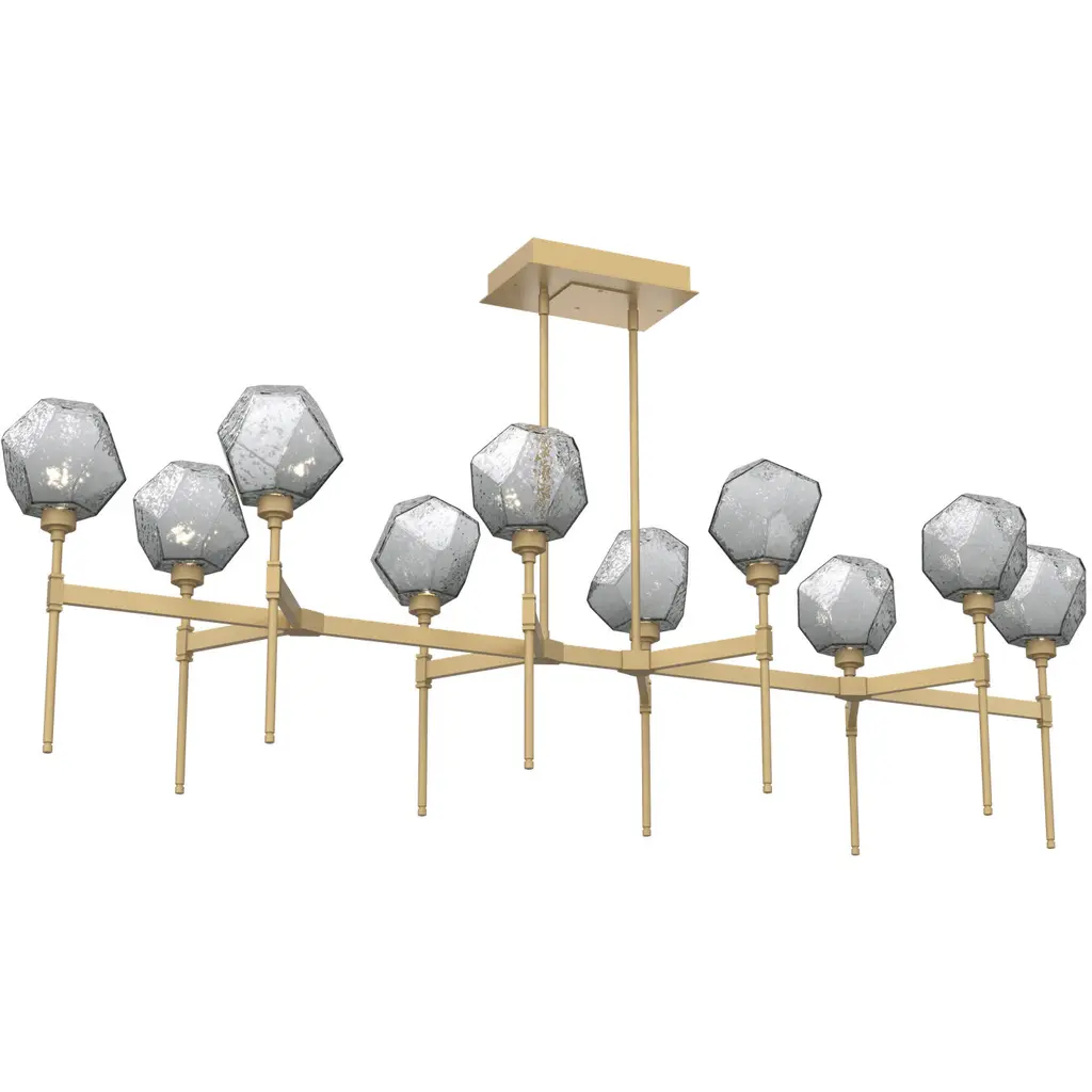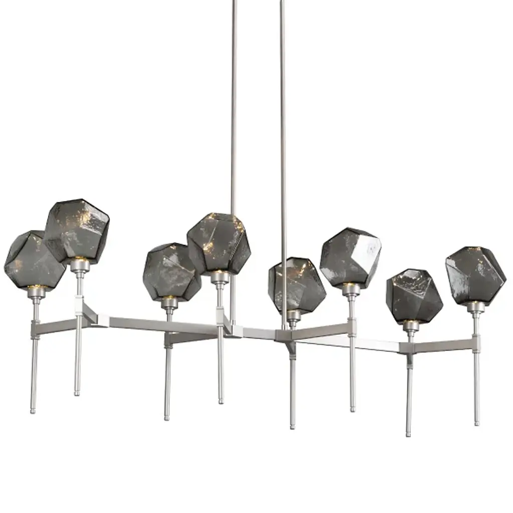Bedazzle your home with the Gem Belvedere LED Linear Suspension by Hammerton Studio. This striking fixture features a series of hand-blown glass crystals set atop slender polished metal stems. Affixed to a linear frame, the textural shades emit a soft light from concealed LED light modules to create an atmospheric effect. Perfect for illuminating a dining area or kitchen island, this fixture beautifully combines modern sleekness with a raw edge.