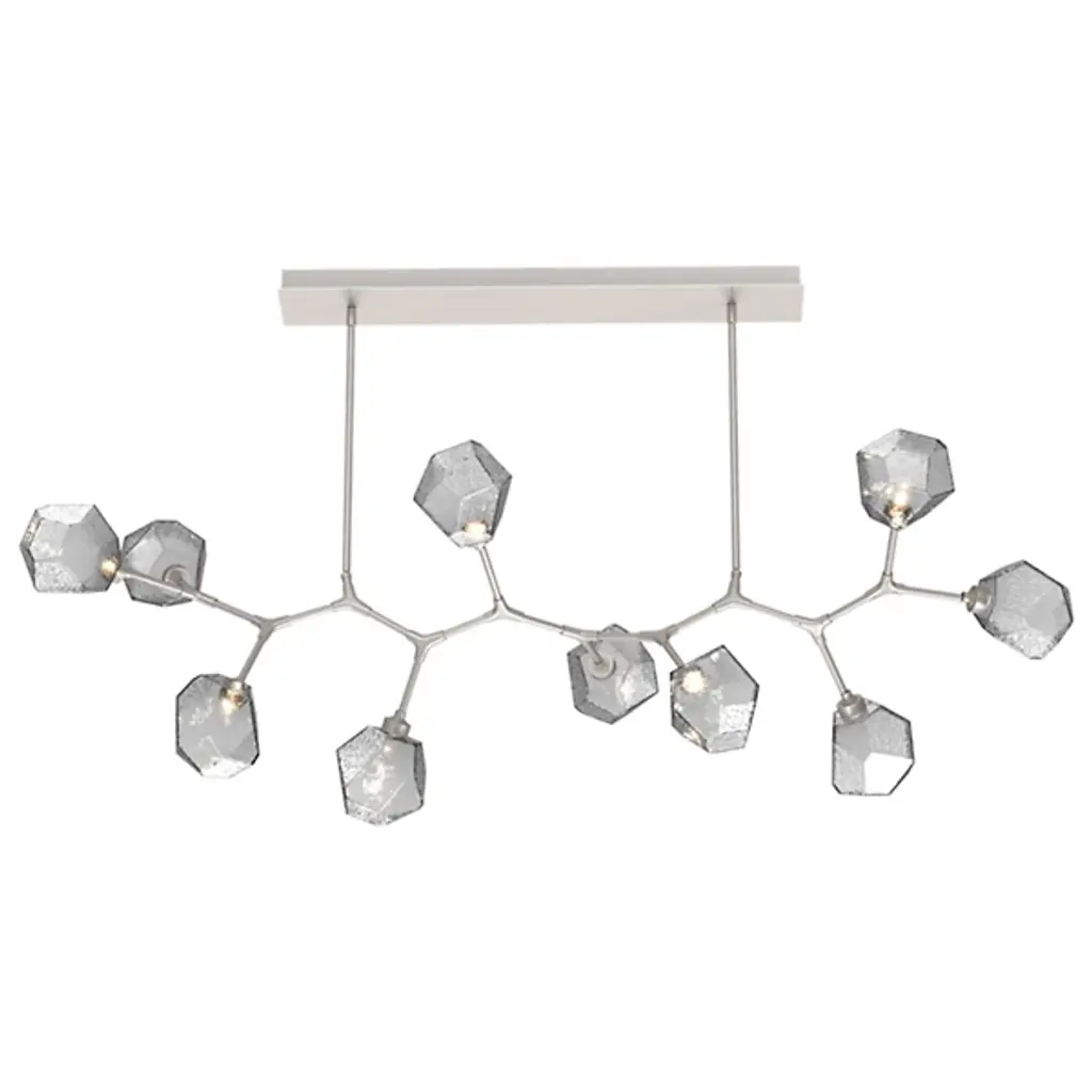 The Gem Modern Branch LED Linear Suspension from Hammerton Studio seamlessly blends organic and geometric motifs for a striking aesthetic. The versatile branch-style fixture presents an intriguing juxtaposition, offering a playful yet sophisticated look that transcends various interior styles. This chandelier is a bold statement piece, harmonizing the organic and geometric aspects into a cohesive design, making it a versatile and captivating addition to a wide range of interior décors. Illuminate your space with a style that effortlessly bridges the gap between playfulness and sophistication.