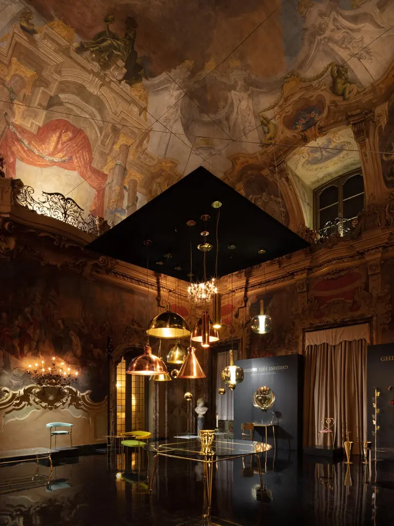The bell metal lamp used in industrial halls is a no-name icon to the metal suspension, in a balance between technical and functional image and memory, easily finds its place in the contemporary sensibility. For Ghidini I have developed a noble metal version with the smooth and reflective bell, the distinguishing features are the casting that encloses the bulb holder and the anchor hook, and the polycarbonate that closes the bell used for the diffusion of light.Materials:Copper.