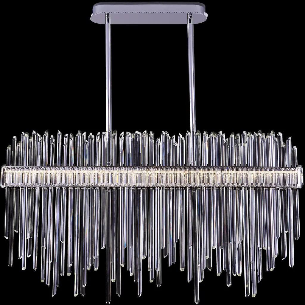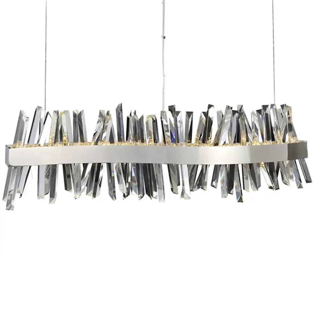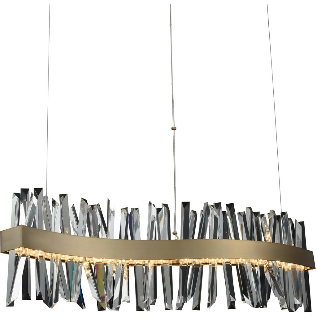 Named after a persistent body of ice that is constantly moving, the Allegri by Kalco Lighting Glacier LED Wave Linear Suspension also has a sense of movement with its curved metallic band set in the middle of vertically standing crystal spears. Powered with modern LED lighting, your space will be lit with energy efficiency, the light refracting and reflecting through the crystals to produce a pleasing rainbow of colors.