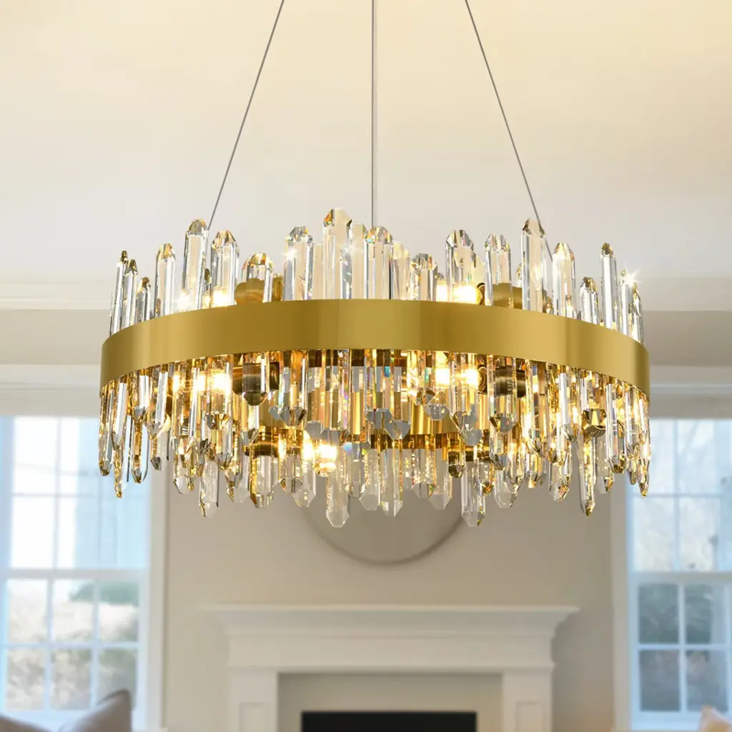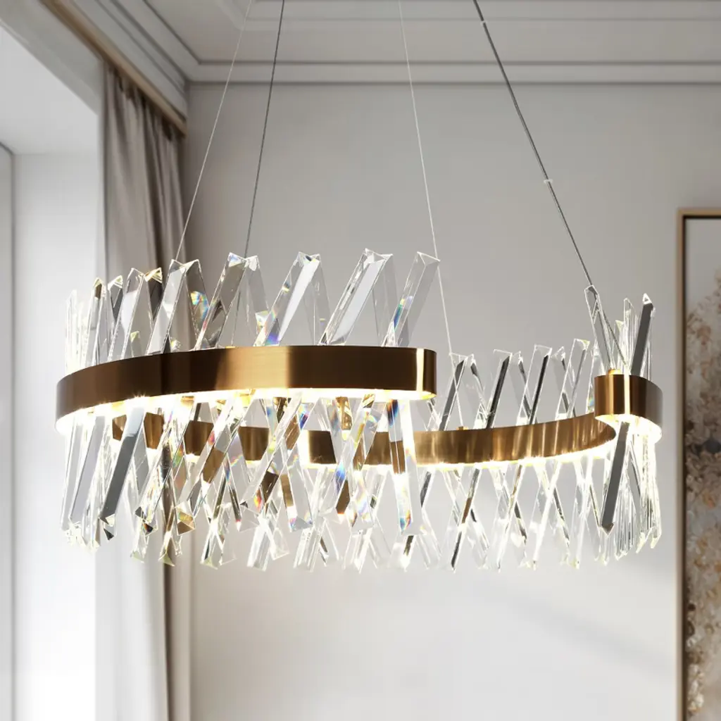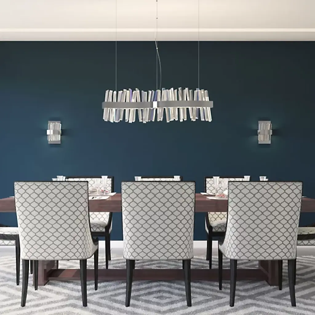 Named after a persistent body of ice that is constantly moving, the Allegri by Kalco Lighting Glacier LED Wave Linear Suspension also has a sense of movement with its curved metallic band set in the middle of vertically standing crystal spears. Powered with modern LED lighting, your space will be lit with energy efficiency, the light refracting and reflecting through the crystals to produce a pleasing rainbow of colors.