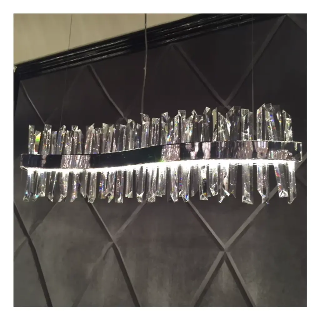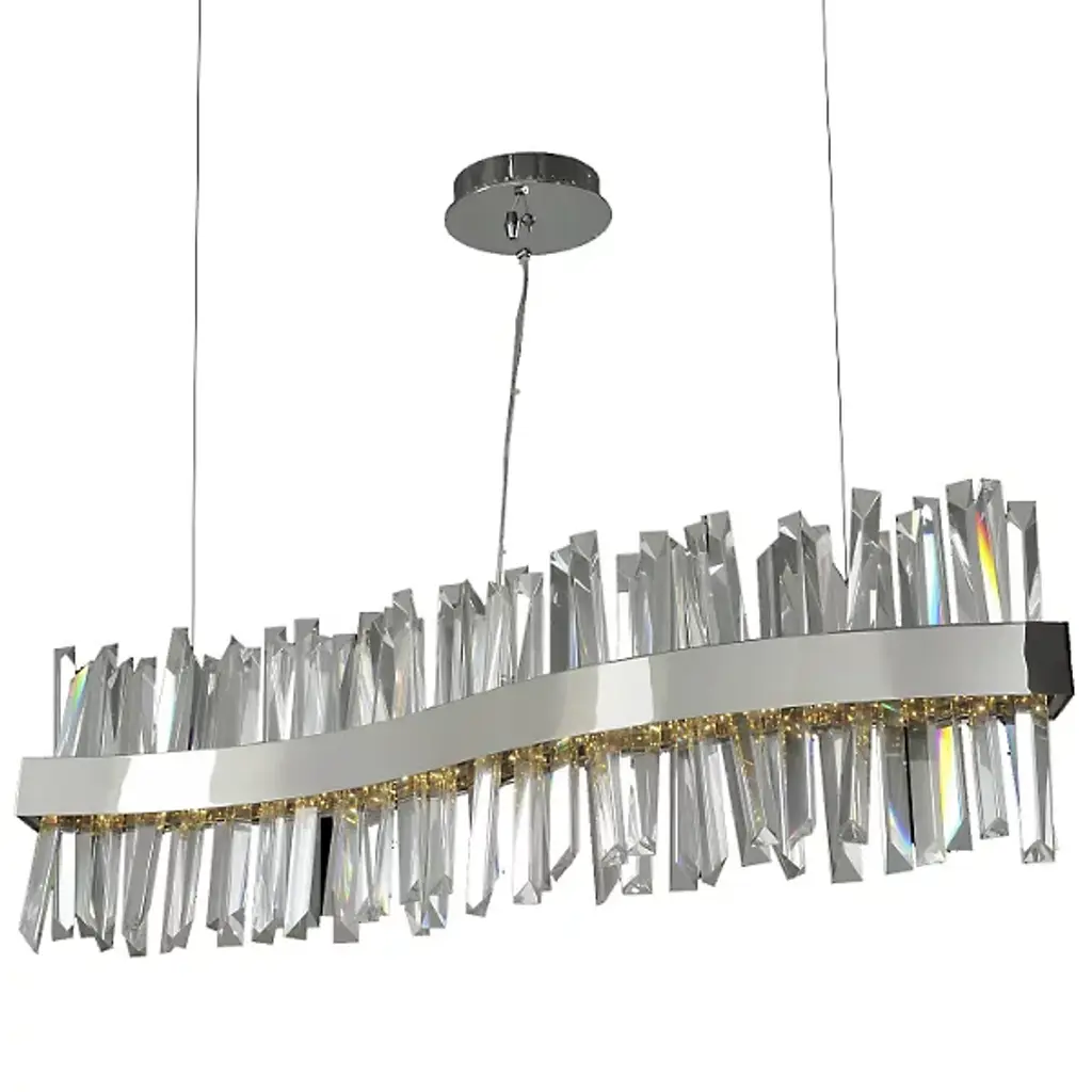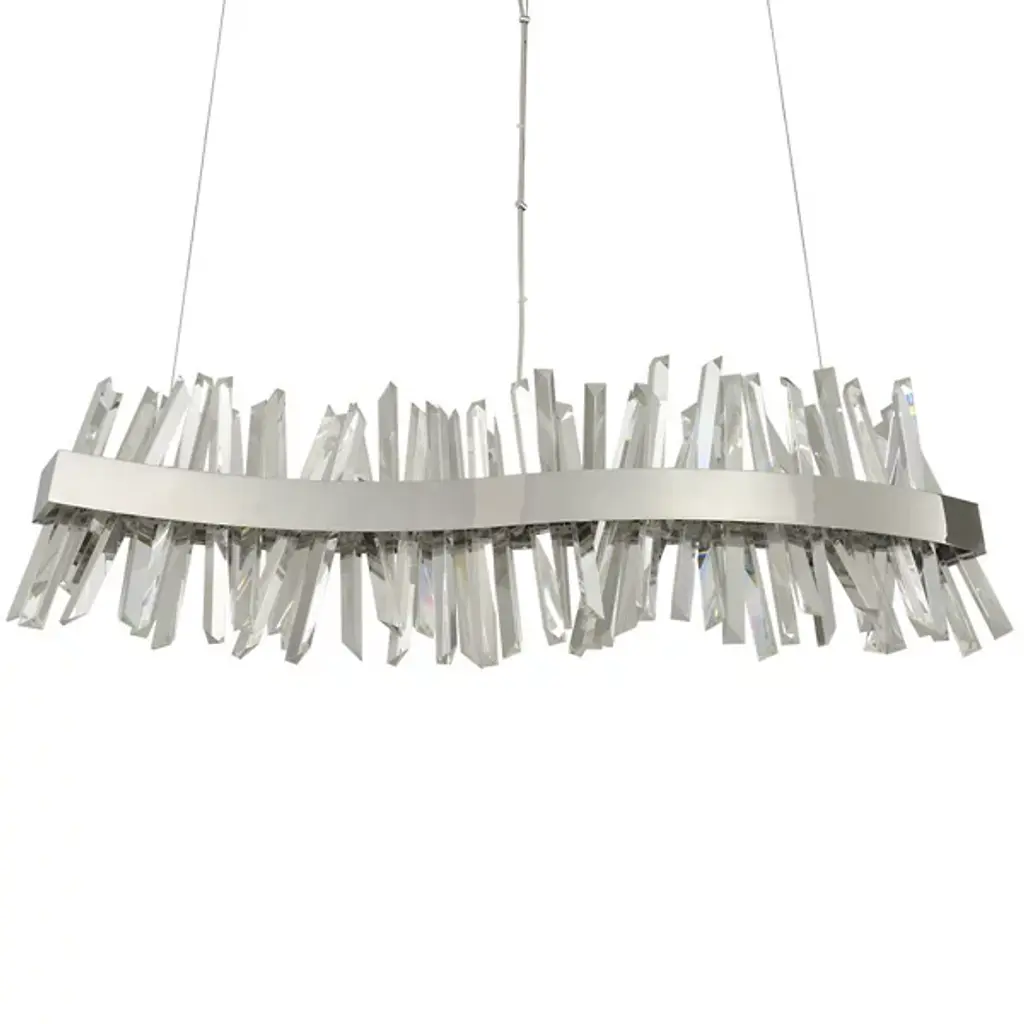 Named after a persistent body of ice that is constantly moving, the Allegri by Kalco Lighting Glacier LED Wave Linear Suspension also has a sense of movement with its curved metallic band set in the middle of vertically standing crystal spears. Powered with modern LED lighting, your space will be lit with energy efficiency, the light refracting and reflecting through the crystals to produce a pleasing rainbow of colors.