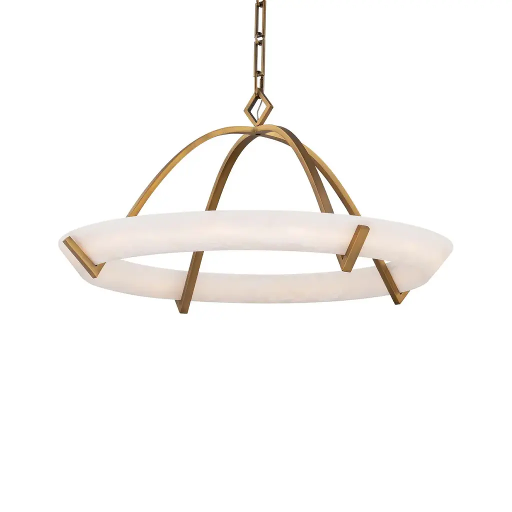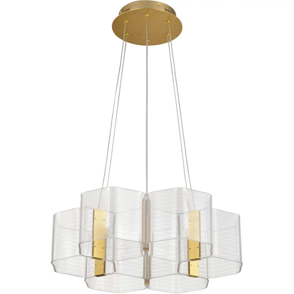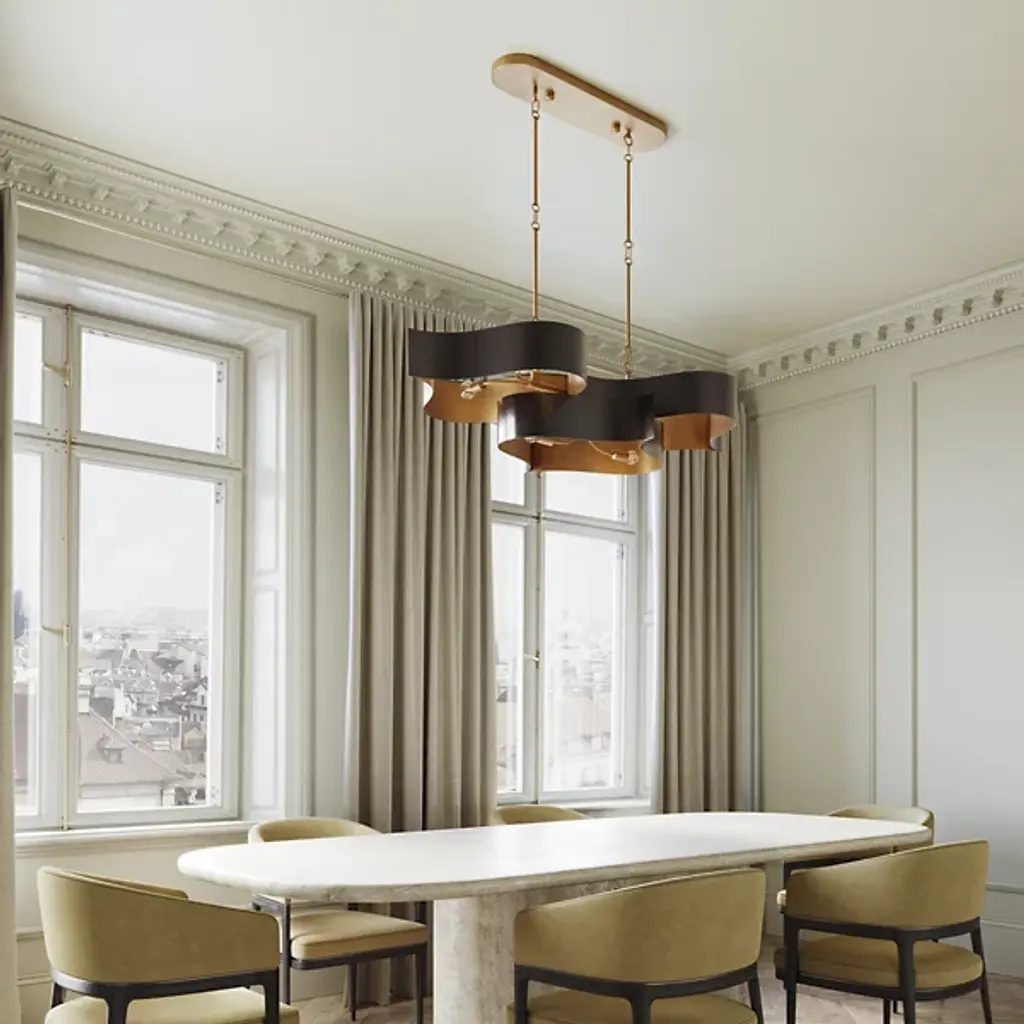 Like the petals of a Lotus flower, the Grand Lotus Linear Suspension by Currey & Company exudes beauty with its flowing form and vibrant color. This illustrious fixture is composed of hand-forged Wrought Iron strips (finished in Antique Gold Leaf) that are shaped into graceful, undulating waves. Each opening contains horizontally oriented lamping, allowing the light sources to remain hidden as they reflect off the surrounding gold and fill the area with a warm, encompassing light