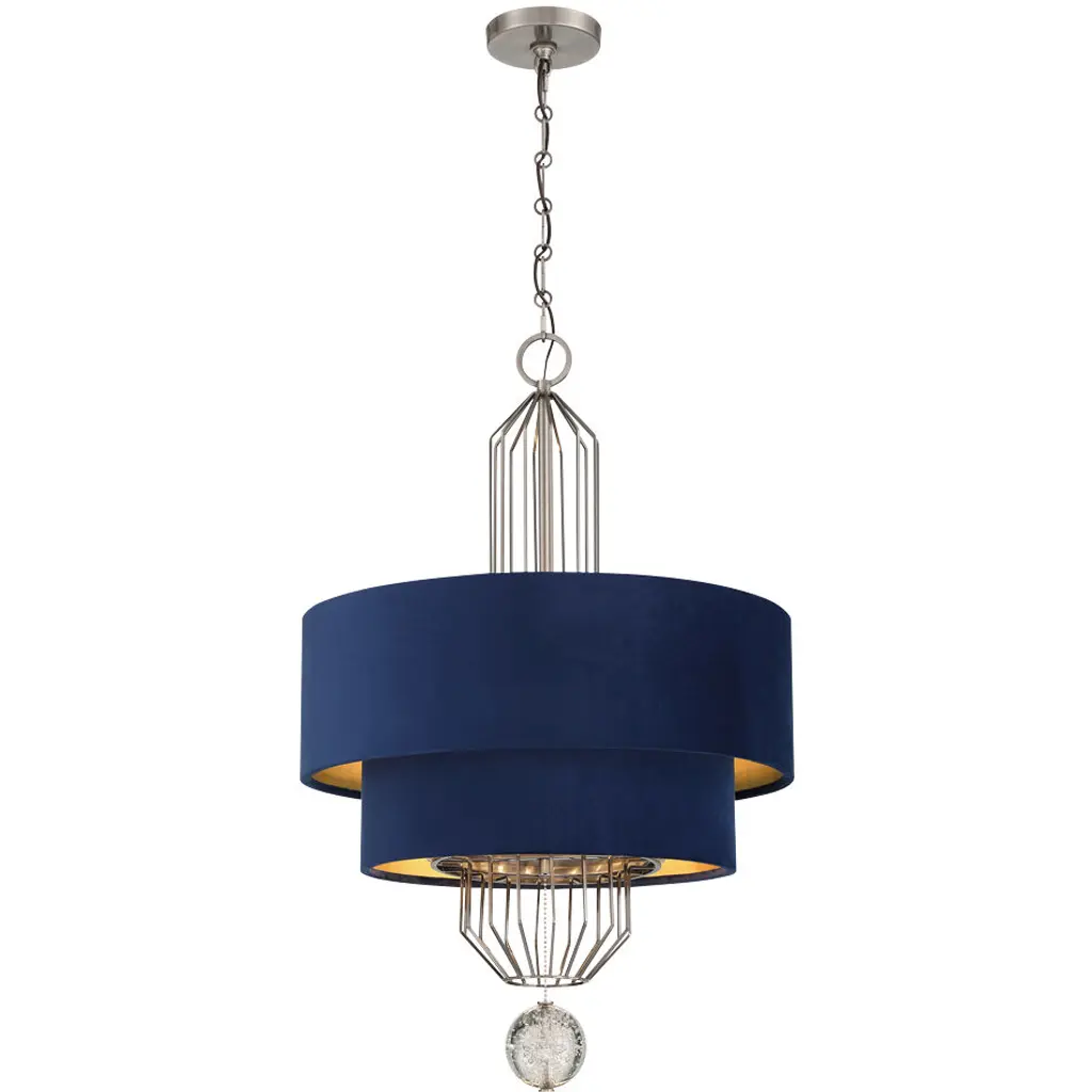 Rich materials, generous shapes, and ample lighting underscore the design of the Grandeur Linear Suspension from Metropolitan Lighting. It shares its jazzy personality with early 20th-century luminaires. The piece leaves one mesmerized with cascading metal lines that culminate over a gorgeous crystal globe. The velvet shade removes side glare as an impressive stadium shape. The shade’s wide openings help distribute a glow of grandeur.