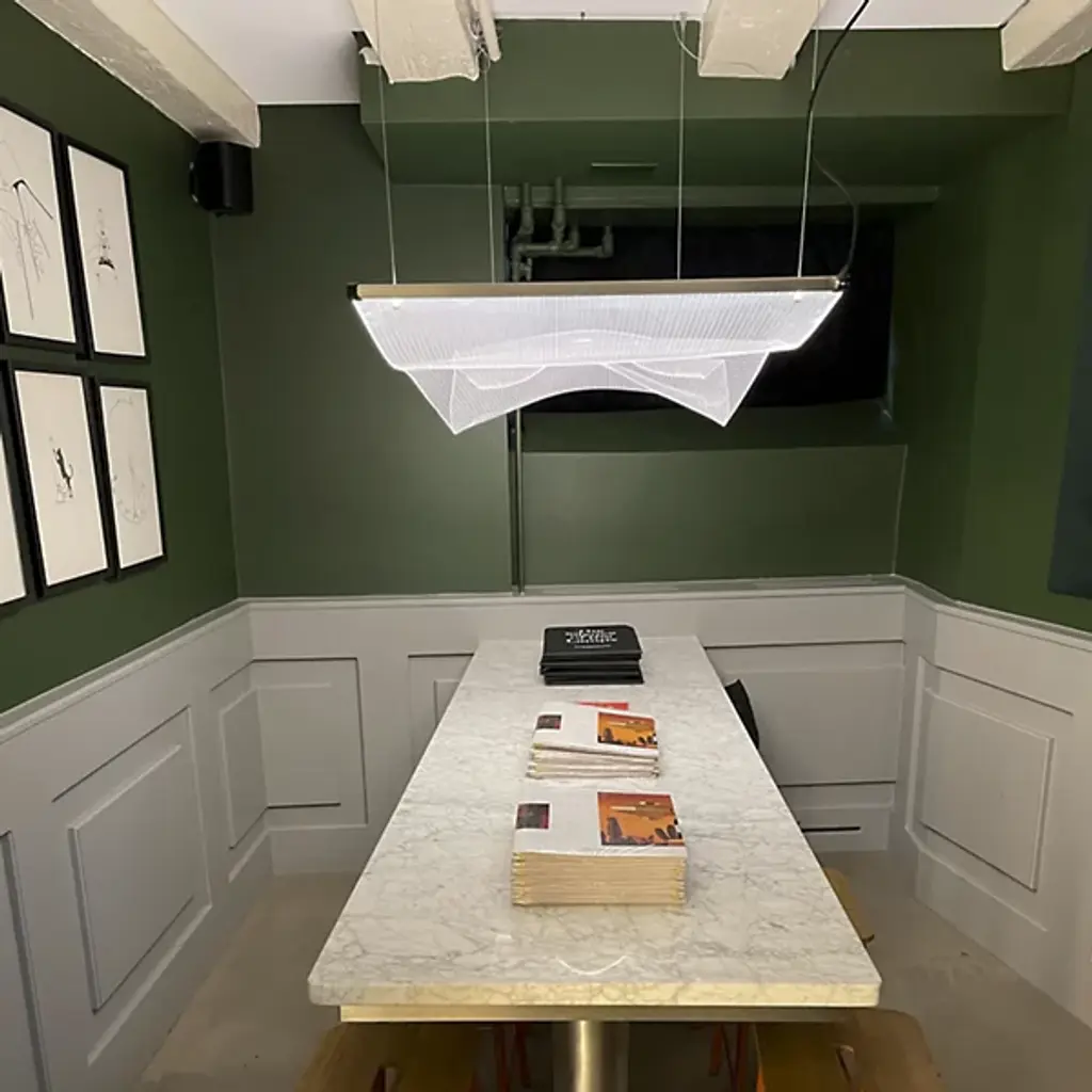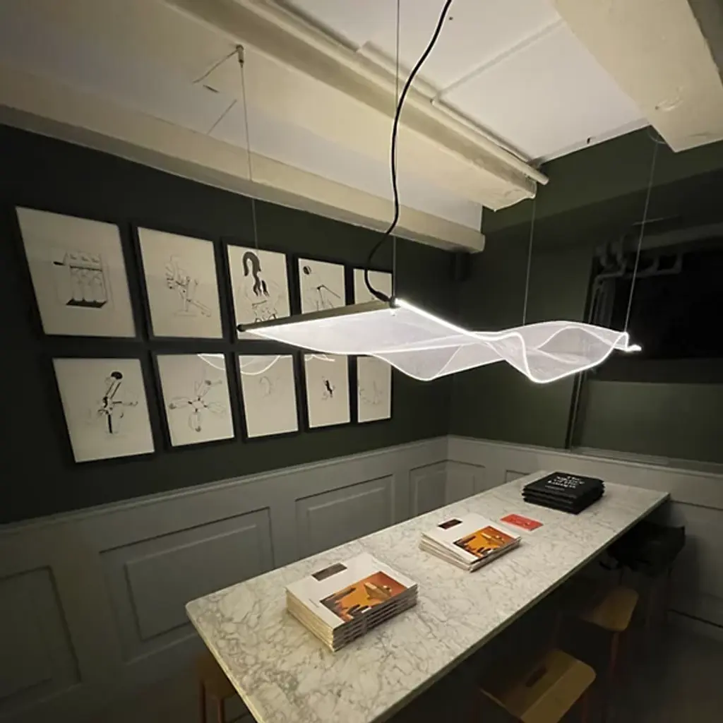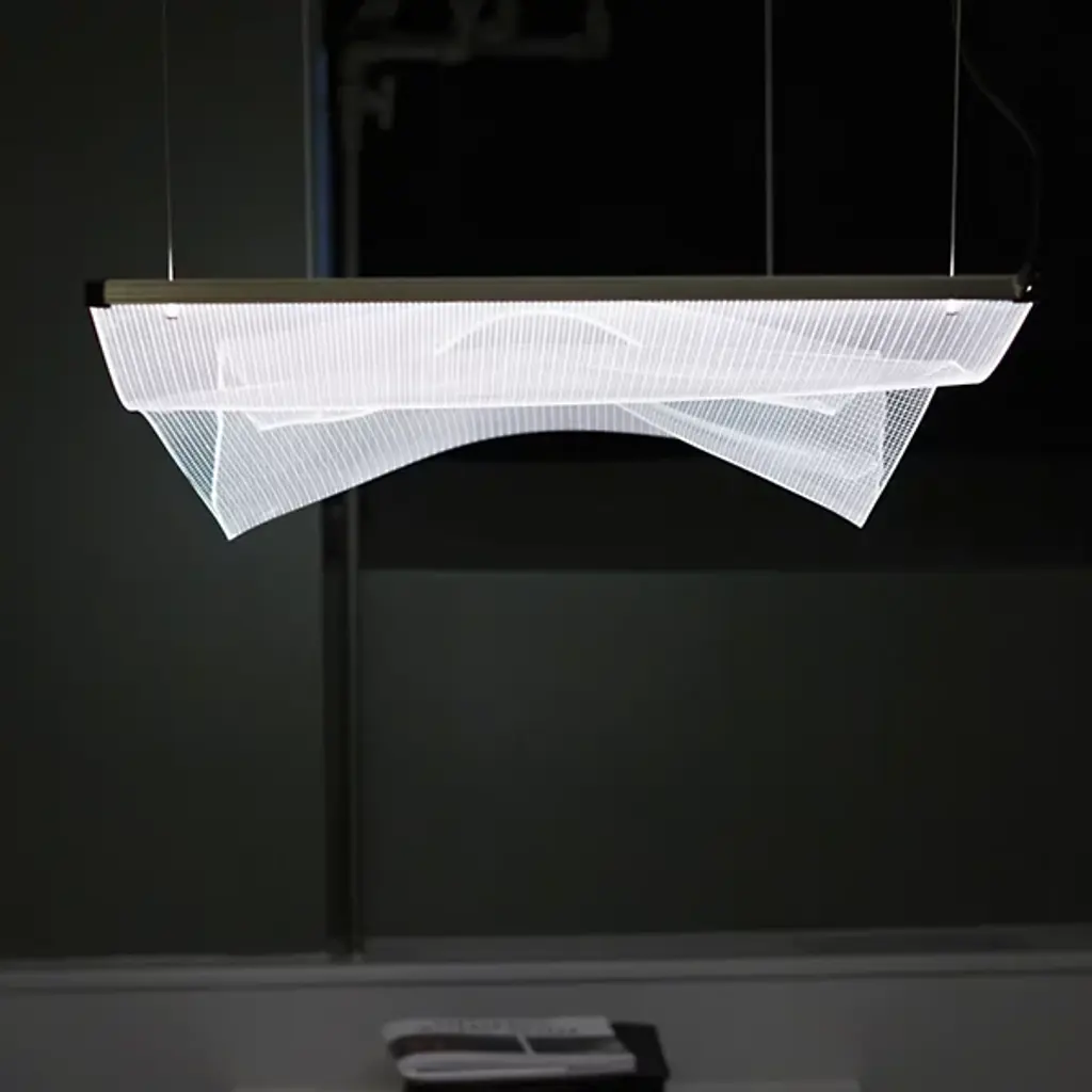 The Gweilo Zhou Horizontal LED Linear Suspension from Parachilna is designed by Partisans. This exquisitely crafted light fixture is the recipient of the Good Design Award. It features intricate acrylic, meticulously molded for a light and airy presentation. It is made in the long-standing tradition of Spanish artisanship. This horizontally shaped lighting solution easily adapts to sloped ceilings. It brings a vibrant glow to your living space courtesy of an integrated LED that’s dimmable when paired with a 0-10V dimmer.