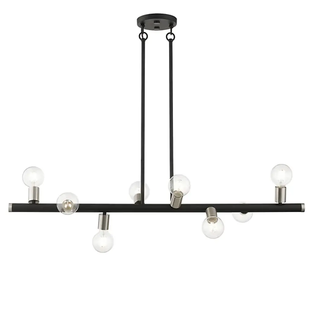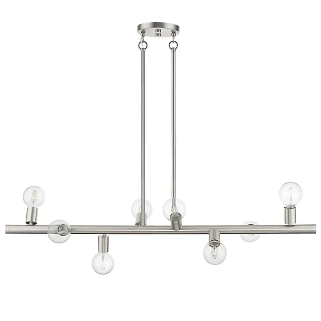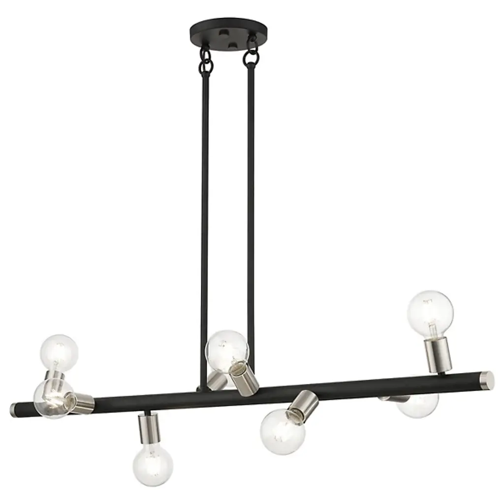 The Hampton Linear Suspension from Alder & Ore embodies simplicity and meticulous attention to detail, defining its essence. Its dimensional form, exposed bulbs, and diverse finishes inject a playful atmosphere into contemporary or urban interiors. This eight-light asymmetrical large chandelier redefines spaces like kitchens or dining rooms, offering a fresh perspective and a touch of modernity. Elevate your interior decor with the distinctive charm and character of the Bannister collection, adding flair to any room.
