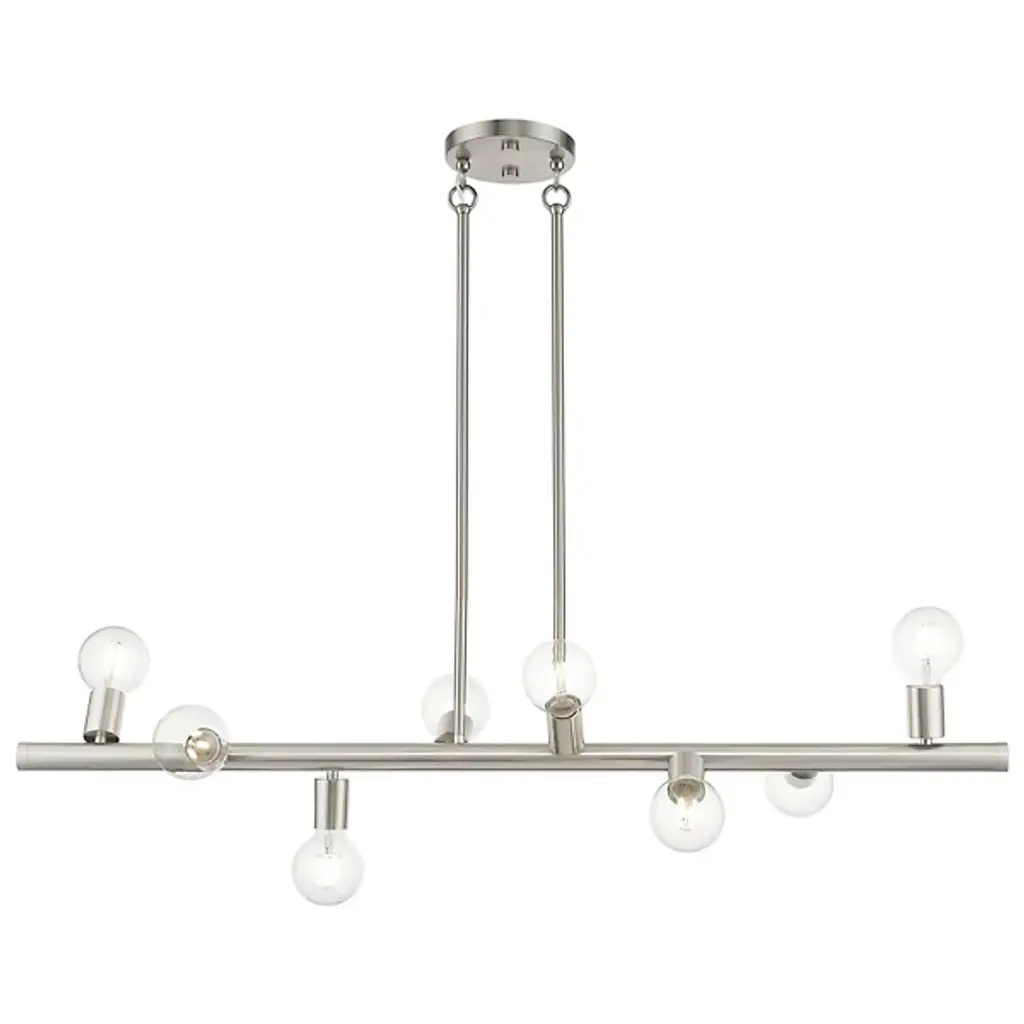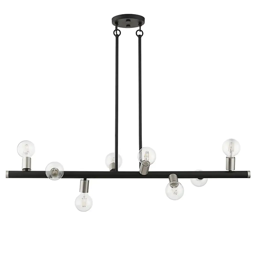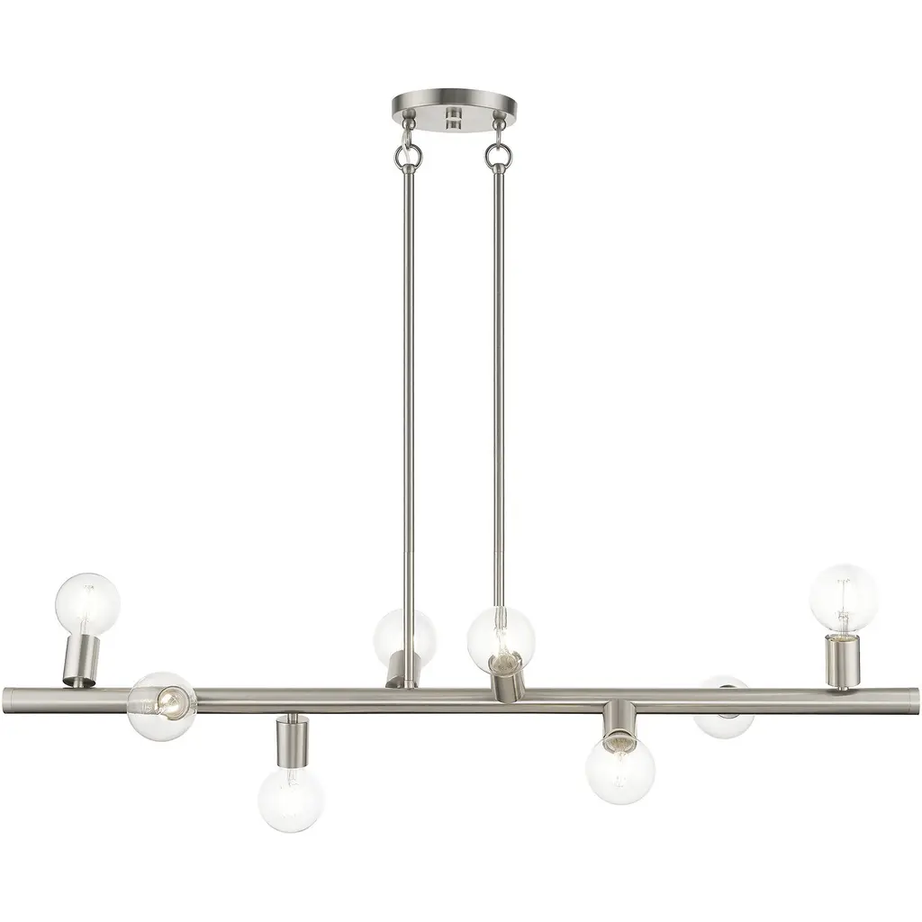 The Hampton Linear Suspension from Alder & Ore embodies simplicity and meticulous attention to detail, defining its essence. Its dimensional form, exposed bulbs, and diverse finishes inject a playful atmosphere into contemporary or urban interiors. This eight-light asymmetrical large chandelier redefines spaces like kitchens or dining rooms, offering a fresh perspective and a touch of modernity. Elevate your interior decor with the distinctive charm and character of the Bannister collection, adding flair to any room.