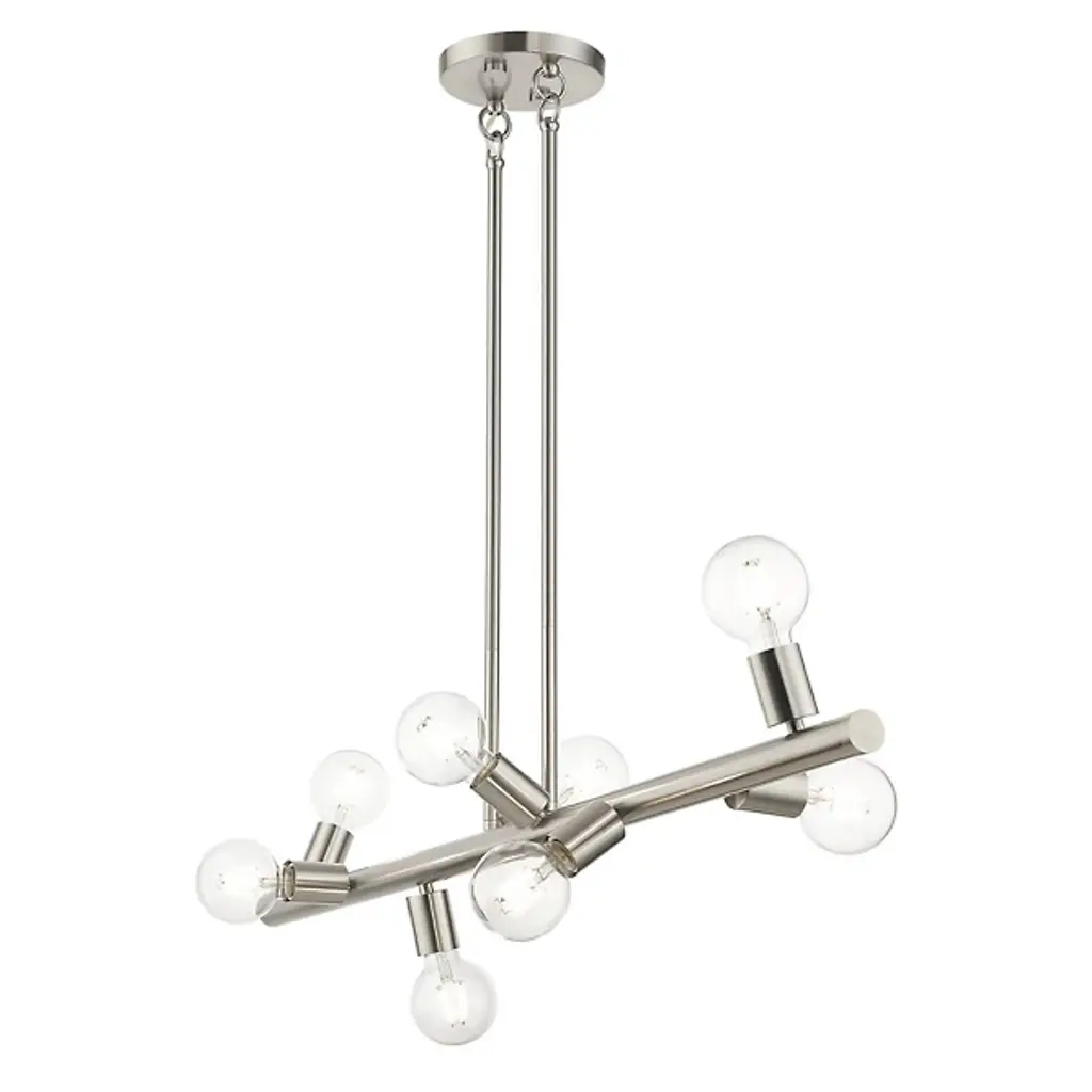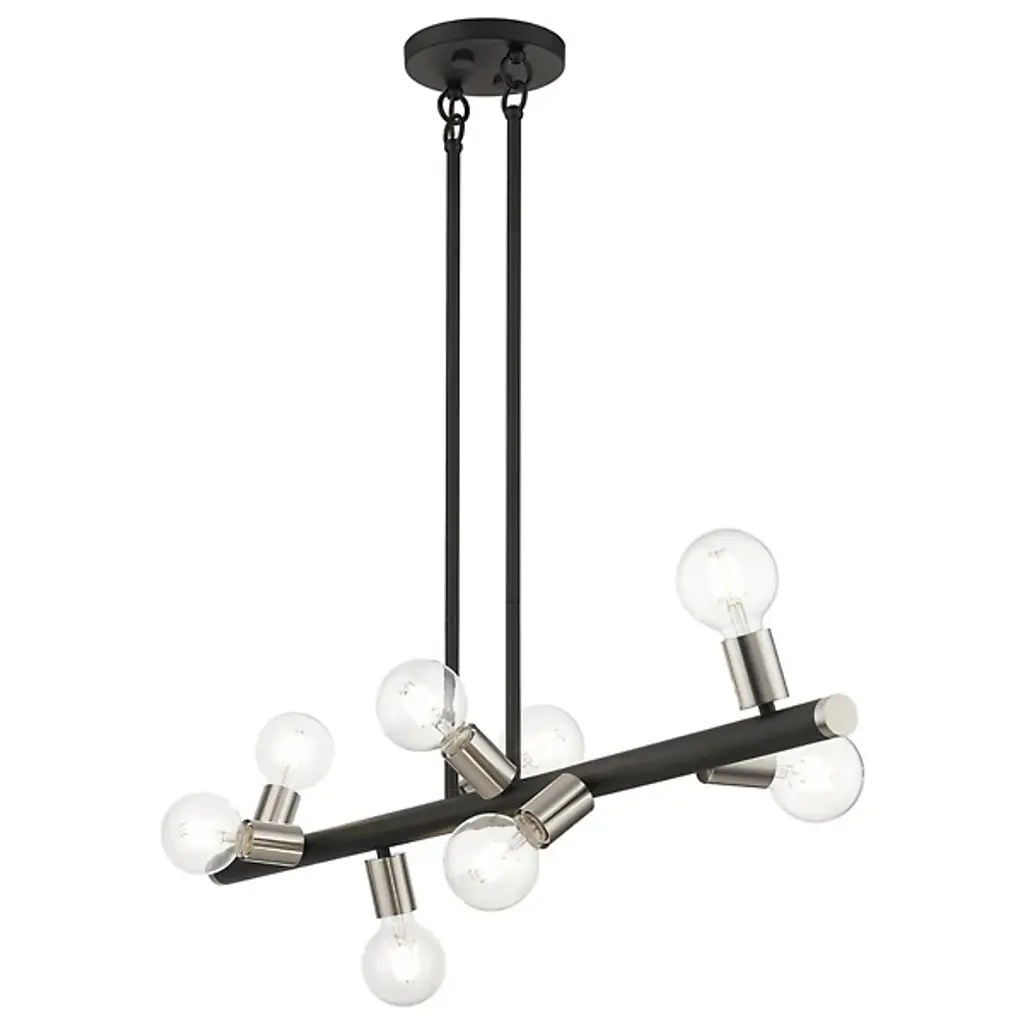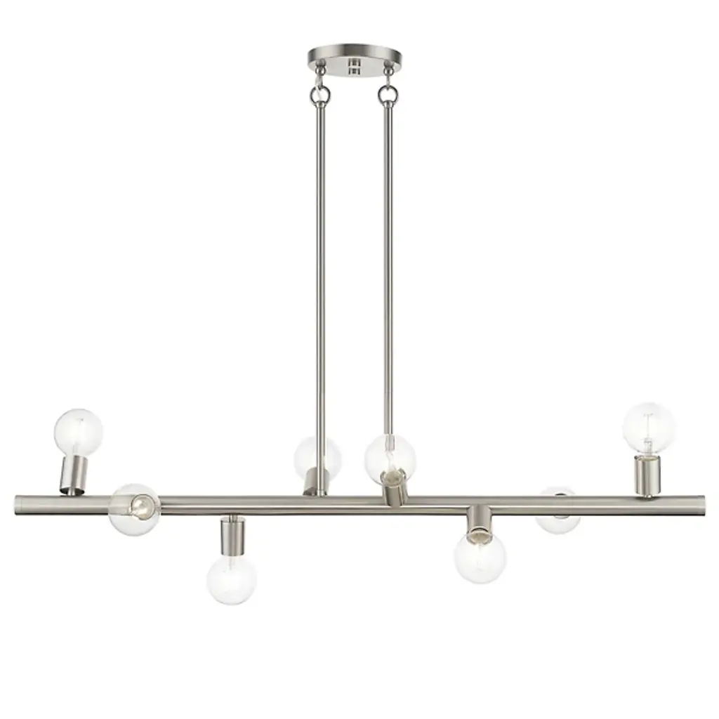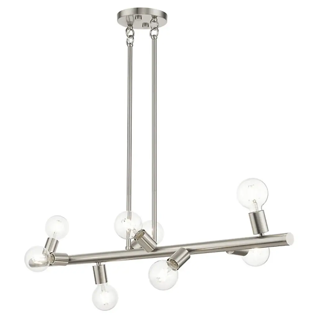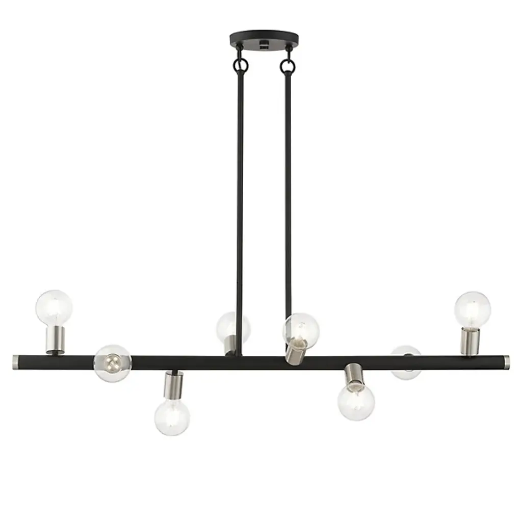 The Hampton Linear Suspension from Alder & Ore embodies simplicity and meticulous attention to detail, defining its essence. Its dimensional form, exposed bulbs, and diverse finishes inject a playful atmosphere into contemporary or urban interiors. This eight-light asymmetrical large chandelier redefines spaces like kitchens or dining rooms, offering a fresh perspective and a touch of modernity. Elevate your interior decor with the distinctive charm and character of the Bannister collection, adding flair to any room.