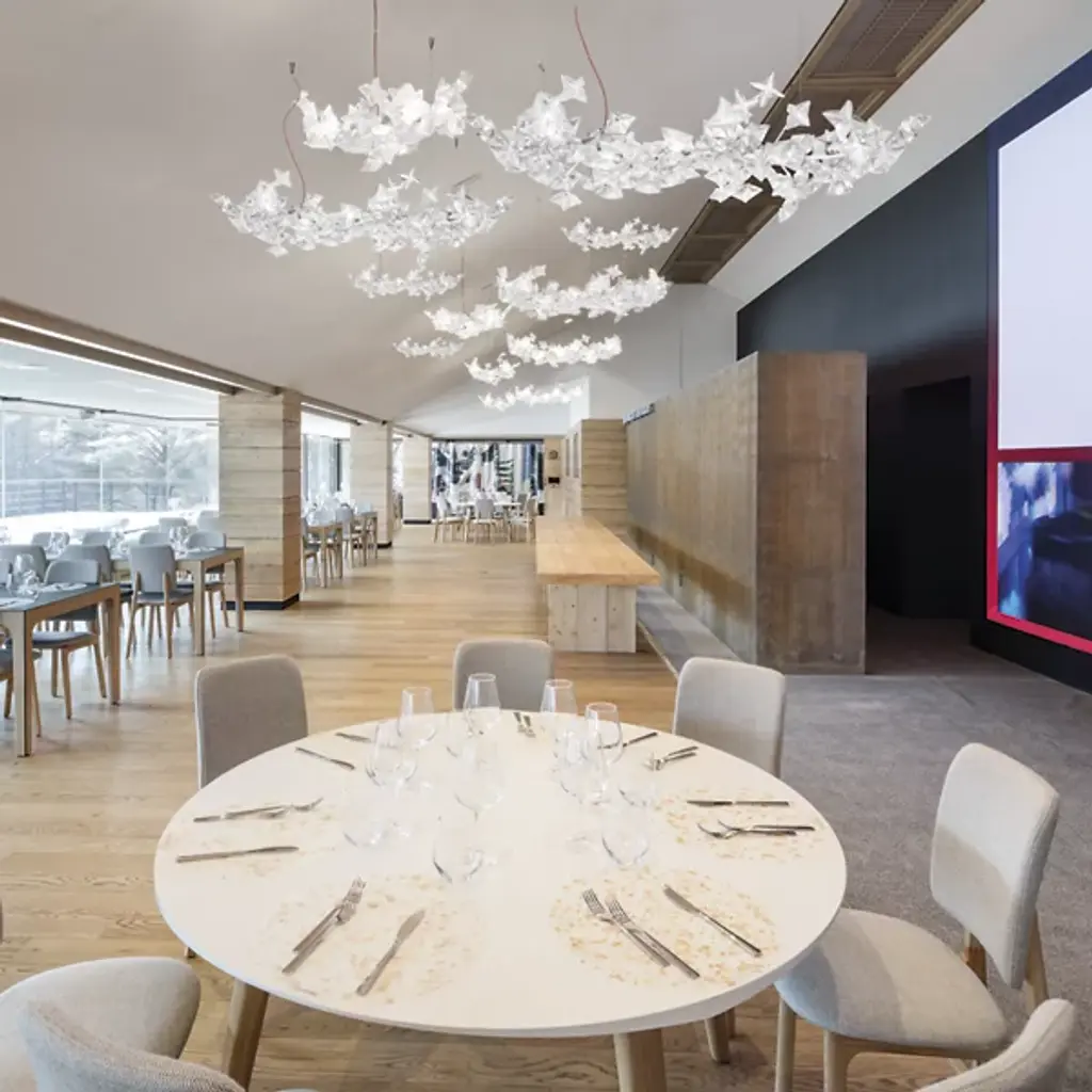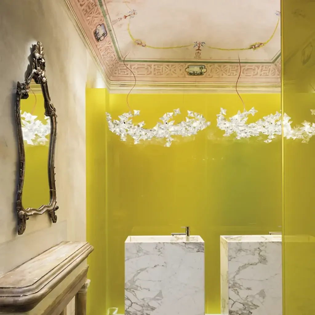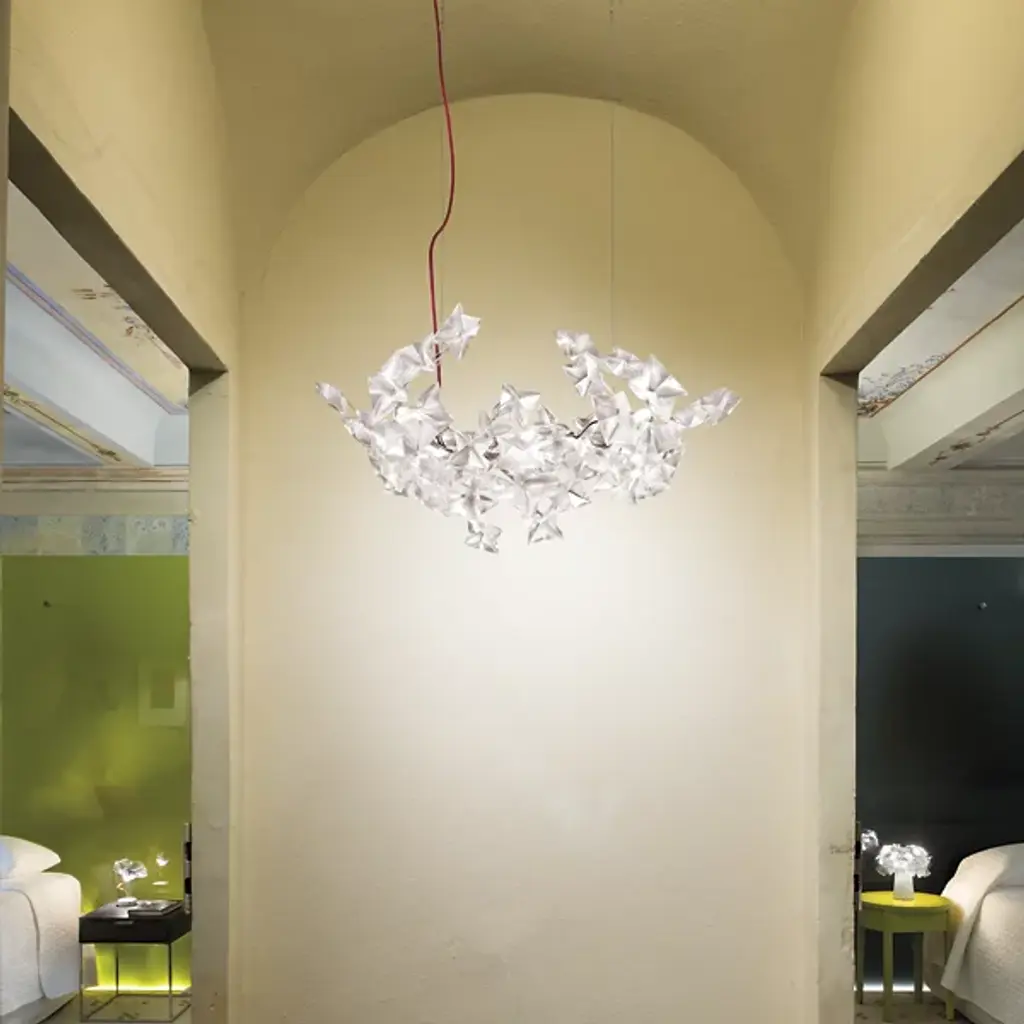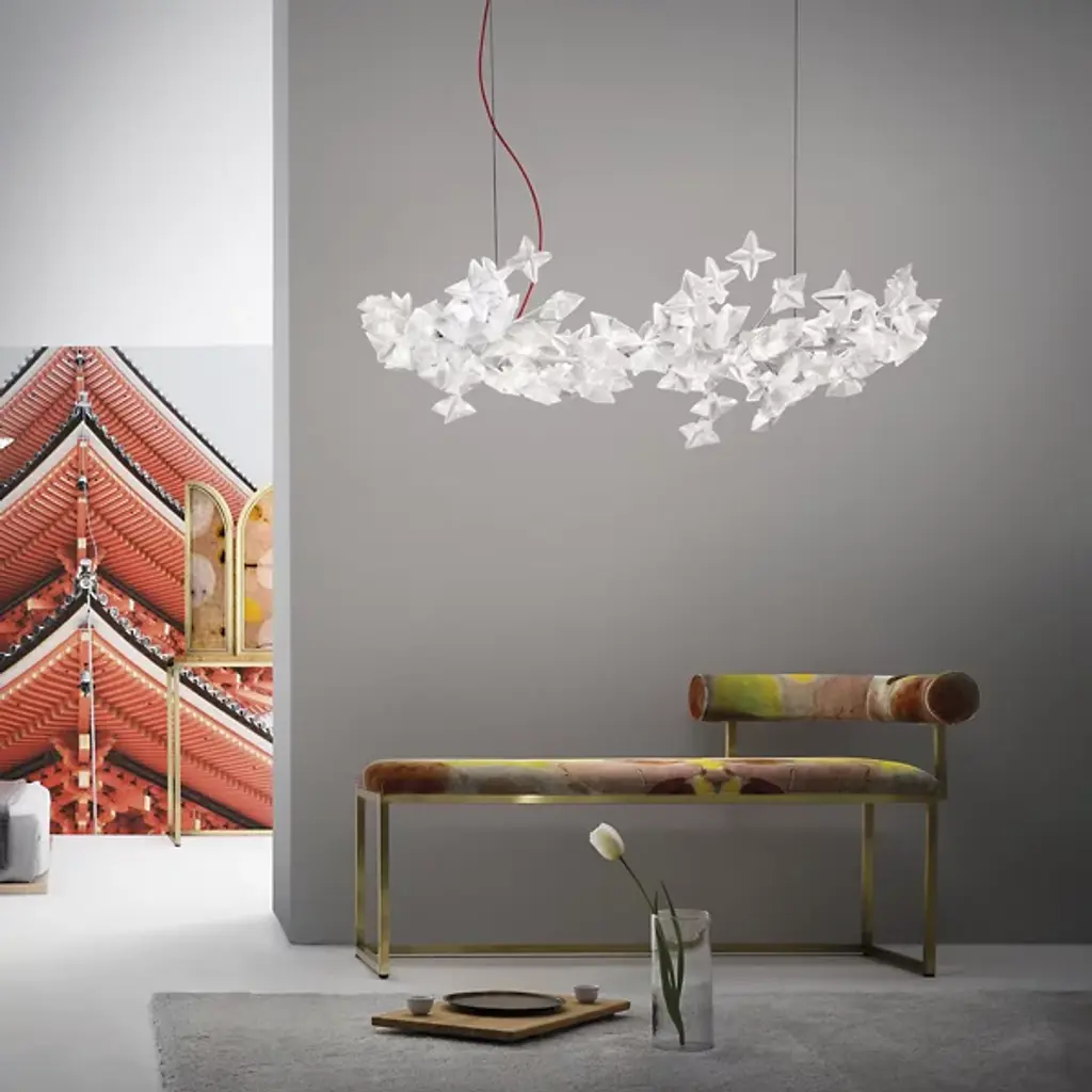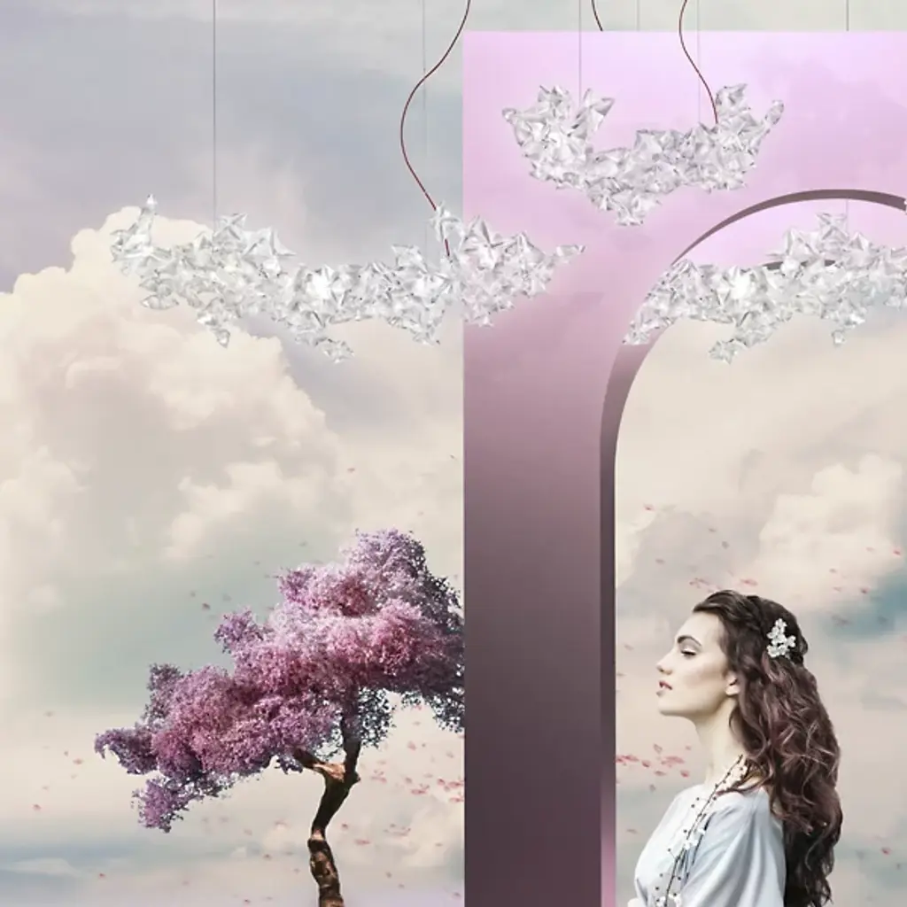 The practice of hanami refers to the Japanese tradition of viewing and celebrating the legendary blossoming of the cherry trees. The Hanami Linear Suspension by Slamp is an ethereal vision of brilliance with handmade flowers that diffuse light with diamond luster. The warm white LED lights are housed betwixt the flower petals, creating a contemporary look that is sure to impress.