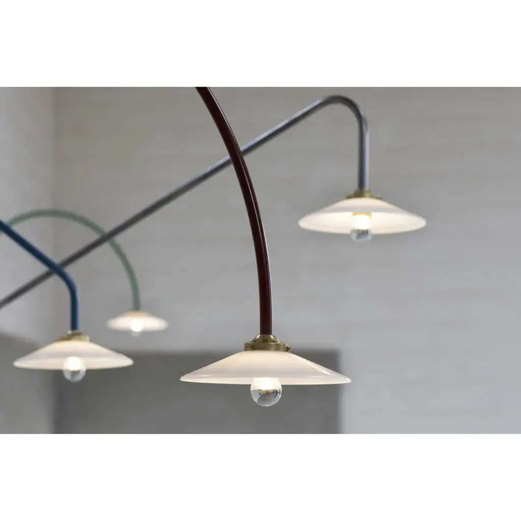 The Hanging Lamp, designed by Muller Van Severen for valerie objects, is a compellingly innovative luminaire defined by a modern and simple design with a unique touch of playfulness. Inspired by a lamp Fien Muller and Hannes Van Severen designed for their own home, the Hanging Lamp consists of a wall-mounted metal tube and a classic cone-shaped glass shade. The minimalist luminaire's gist lies in the extreme simplicity of the metal tube – as if someone had just drawn it in the air with a crayon. This adds a touch of whimsy to the almost industrial look of the lamp, making it a fascinating, distinctive and unique addition to any space. Over the years, the Hanging Lamp has grown into a whole collection of distinctive luminaires, all characterized by the same recognizable, minimalistic expression.