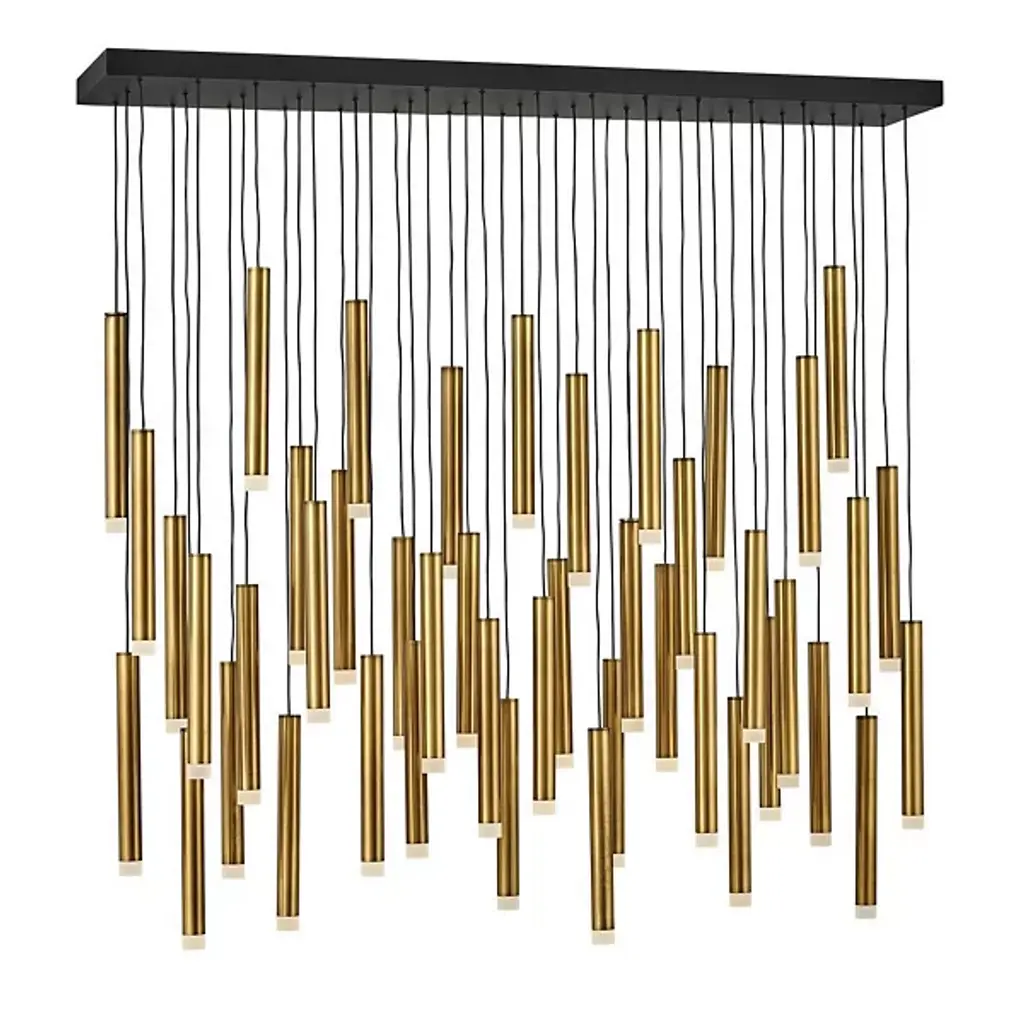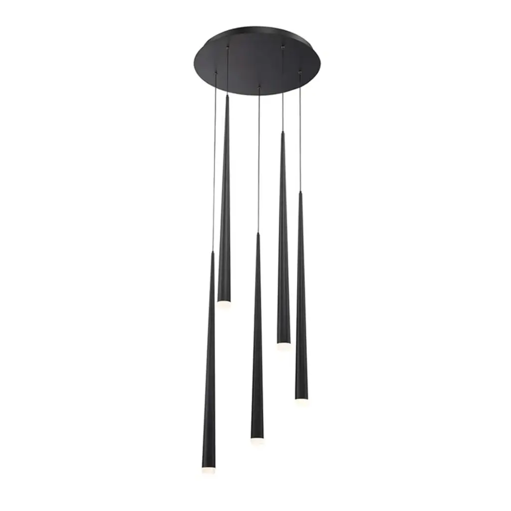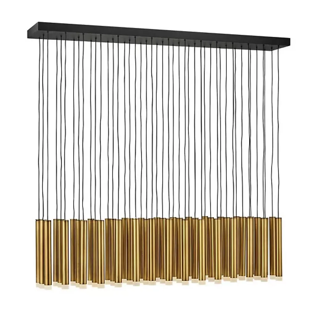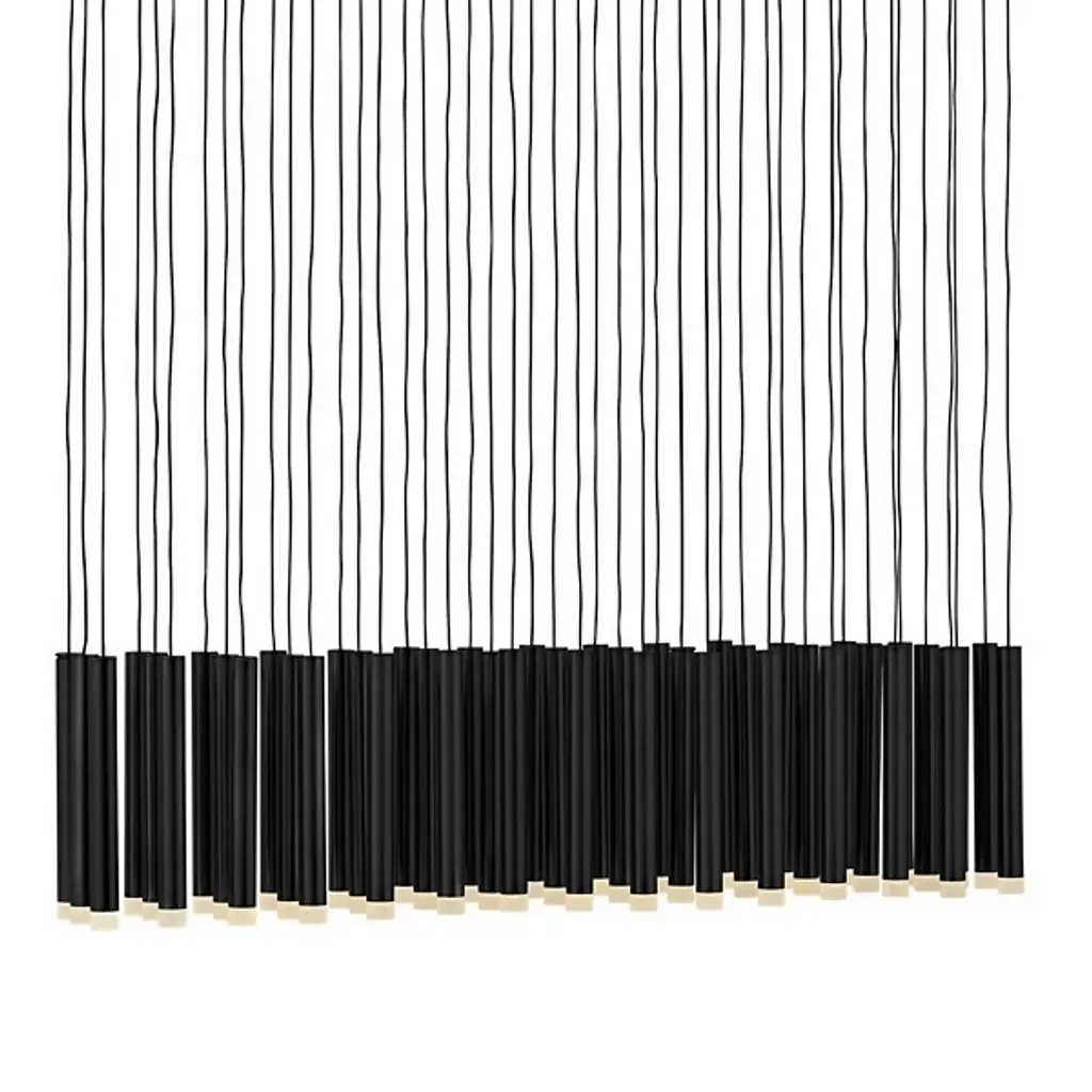 Turn its chorus of forms into a breathtaking display of cascading light or a smart symmetrical composition. Elevating dining tables and kitchens counters with transformative and contemporary styling is the Harmony LED Linear Suspension from Fredrick Ramond. Its steel forms take a cue from the grace of wind chimes, coming across as clean, sharp, and slender. A slim profiled rectangular canopy and height-adjustable cables let you freely customize each of the columns. Streaming through capped opaque diffusers is an unforgettable downlight and radiating glow.