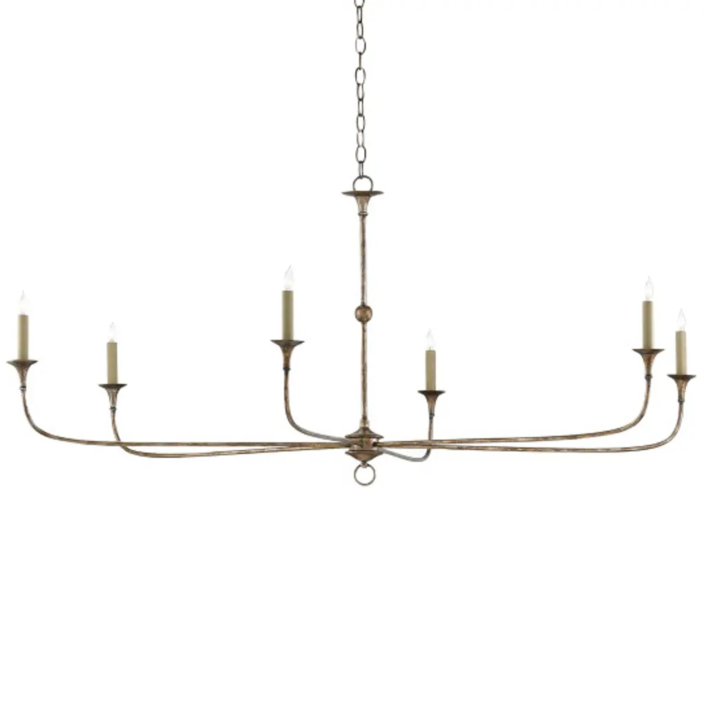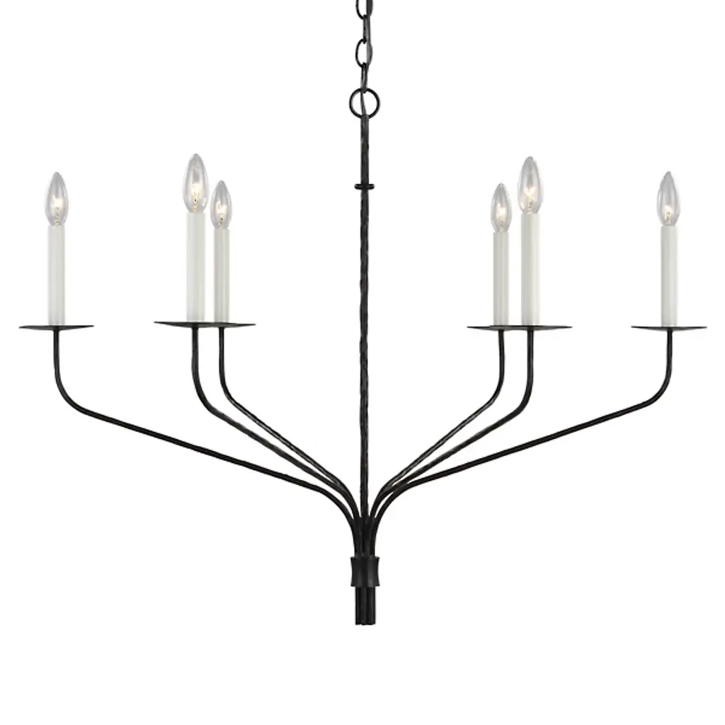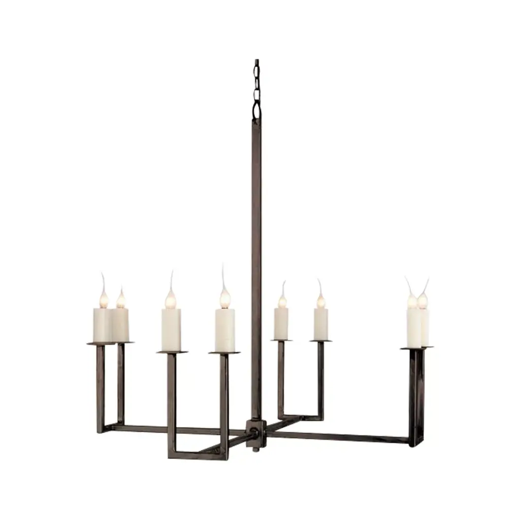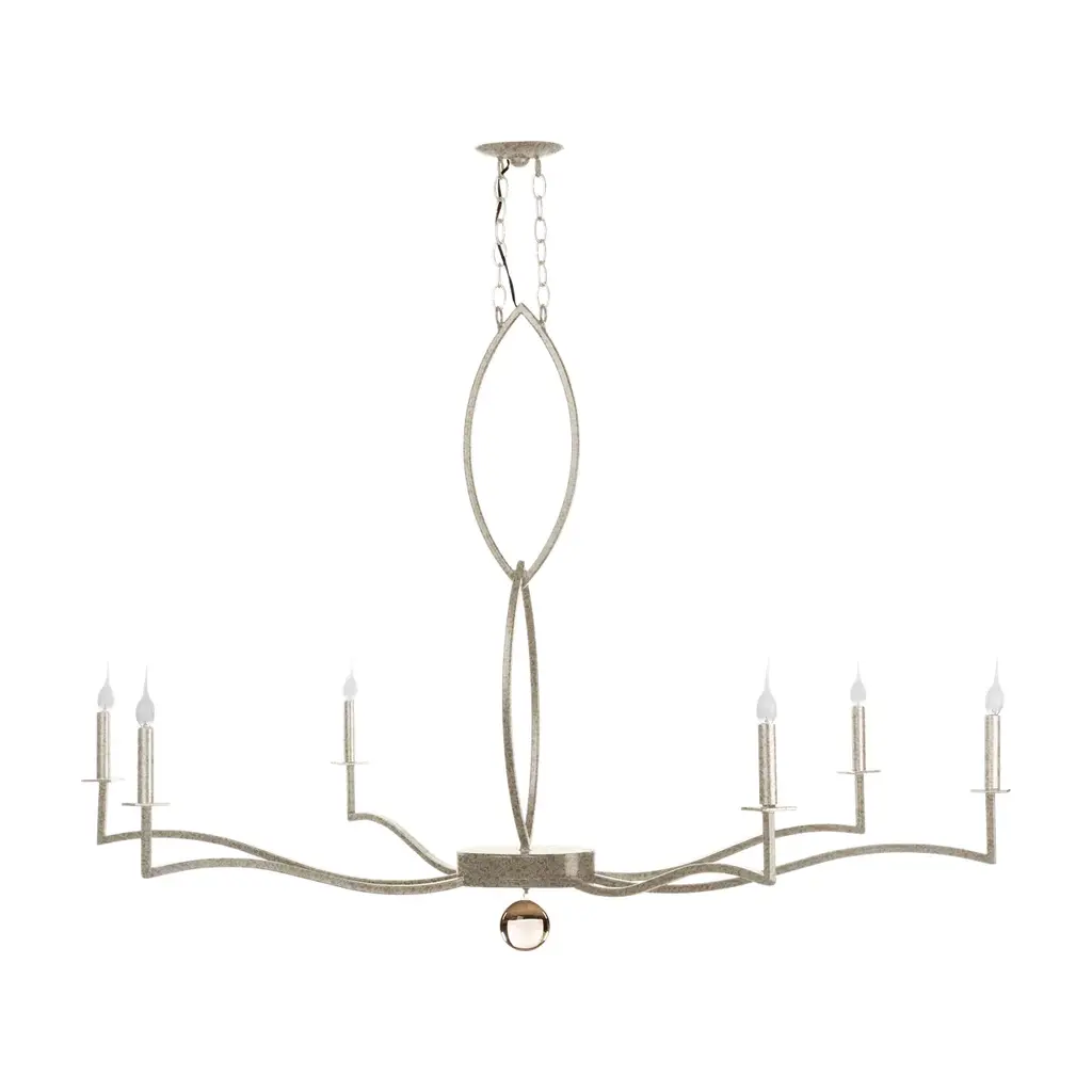 Designed by Julie Neill and presented by Visual Comfort Signature, formerly known as Visual Comfort, brand, the visually striking Illana Linear Suspension is a contemporary example of elevated artistry. Nature-inspired candelabra bases with leaf-like detailing are lined up evenly along the sturdy steel structure. It hangs from two chain links and anchors to the shared canopy above. This high-quality example of design will beautifully brighten interiors across the spectrum of work and play.