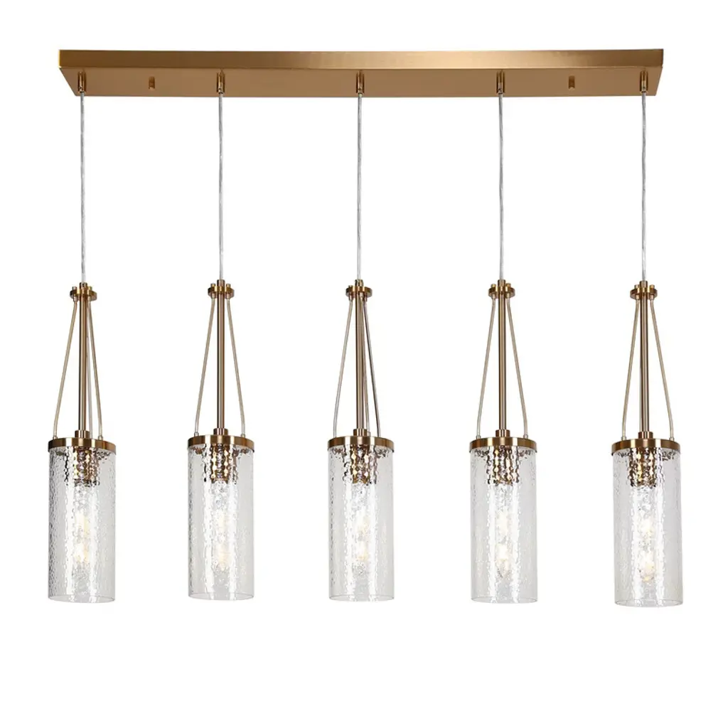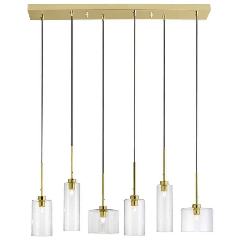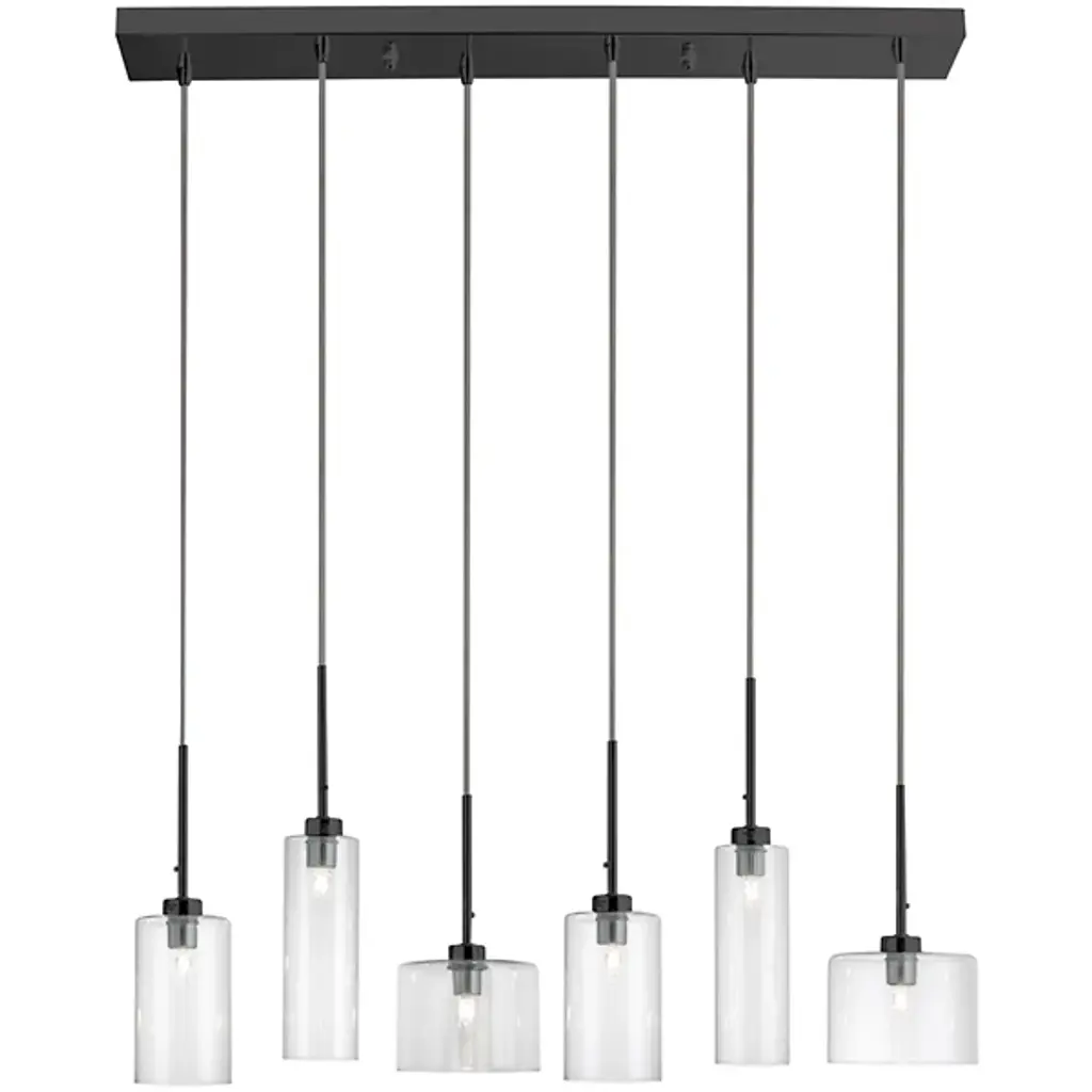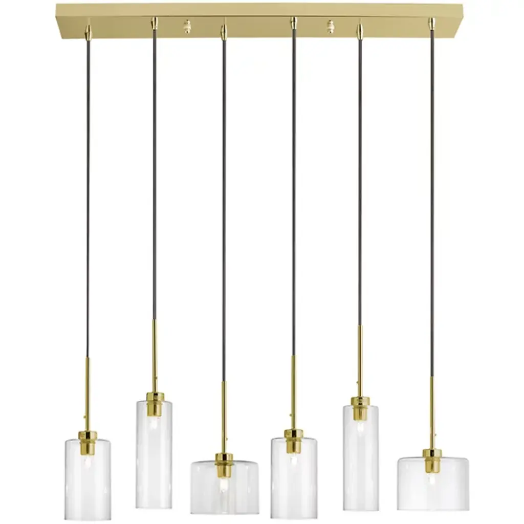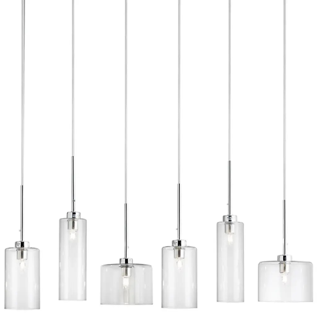 The Industrial Chic Linear Suspension by Dainolite is a clean and modern fixture with a touch of edge. A polished metal canopy drops a set of cords to suspend clear glass shades of various shapes and sizes. Metal sockets hold incandescent bulbs inside each glass shade, casting a vibrant light throughout the space while illuminating the glass and adding to its luster. Its cool, polished finish lends the piece its industrial flair while its simplistic and clean design makes it versatile enough for a range of interior styles.