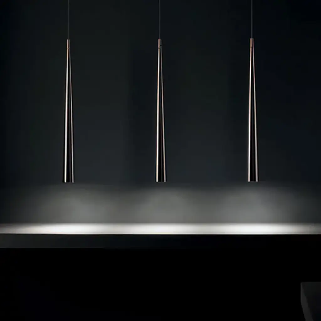 The IO SO 3L Linear Suspension by ITAMA is ideal for hanging over modern kitchen counters and dining room tables. The cone-shape of the fixture creates a downward directed glow. There are a variety of finishes and light options (not included) that create a textured look for any modern kitchen or dining room.