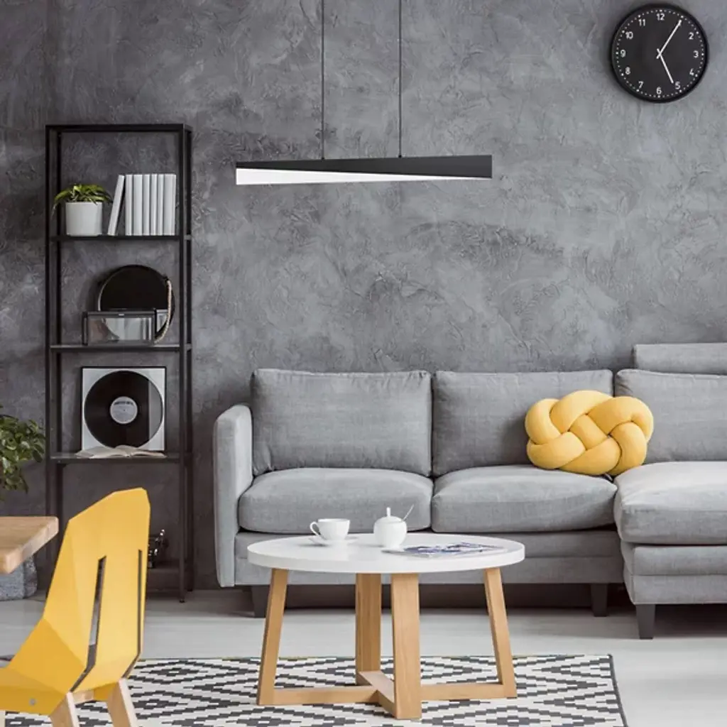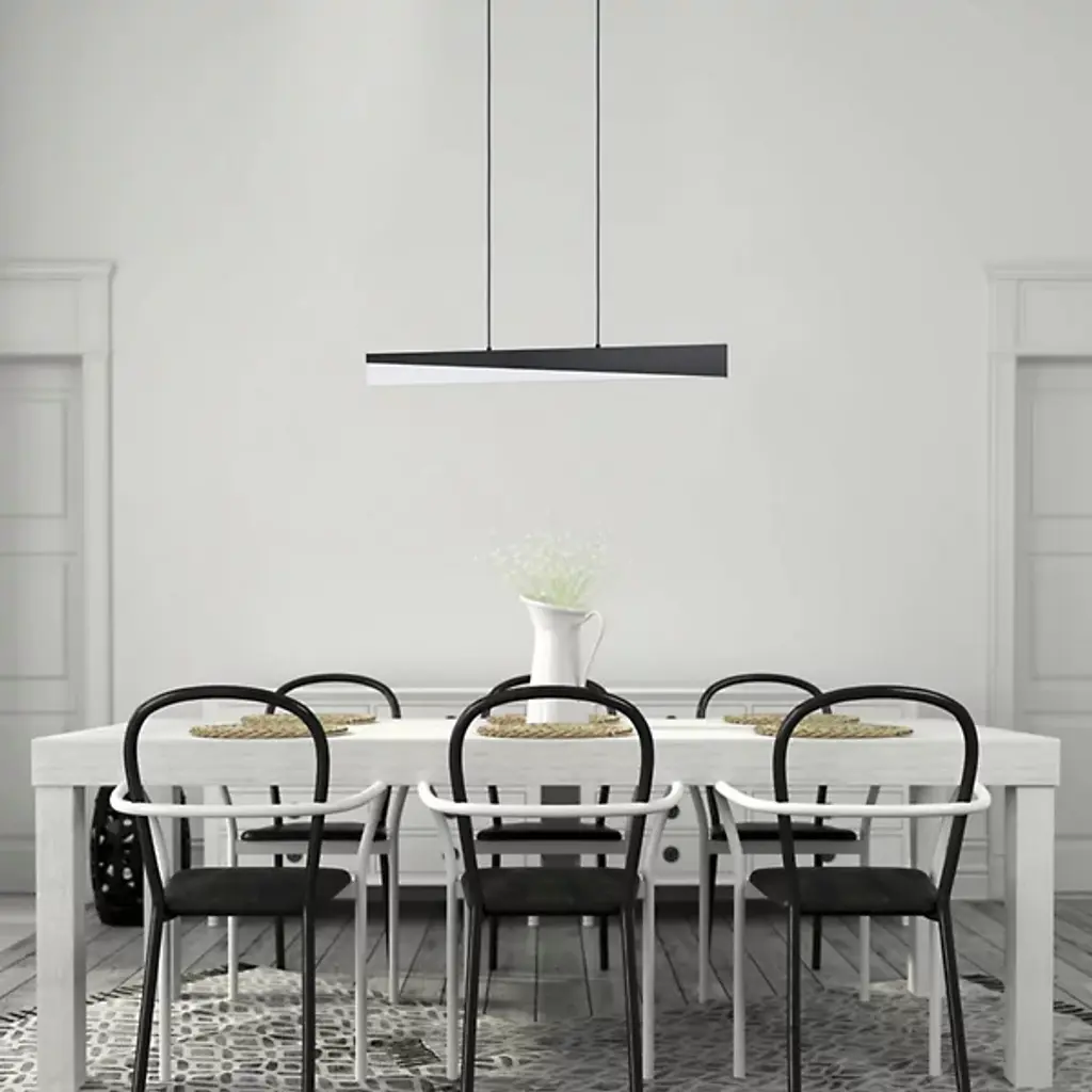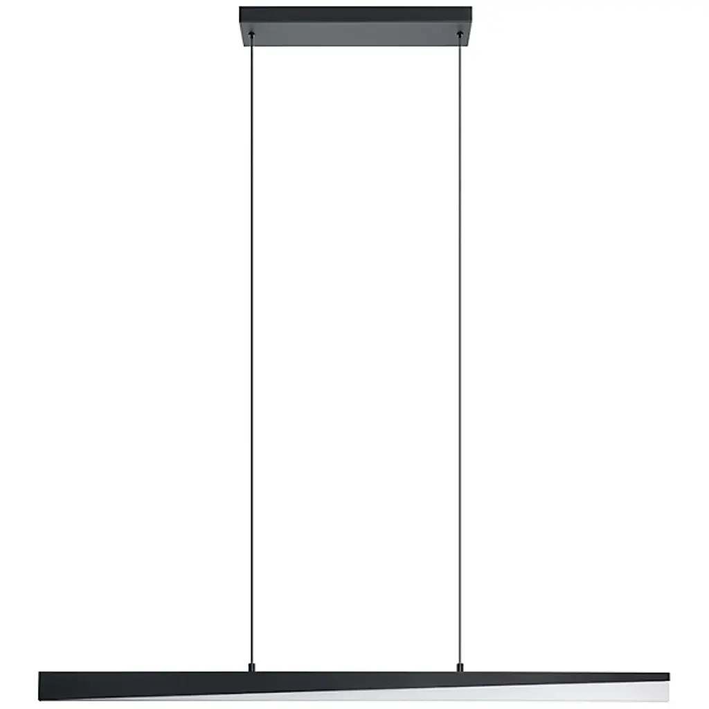 An ode to contemporary luxury design inspired by sleek architectural angles, the Isidro LED Linear Suspension by Eglo shines literally and figuratively. Its beauty lies in its balance—minimal and simplistic yet striking and visually appealing. A dainty base serves as the ceiling mount, grasping tightly to two slim cables that hold the pendant in suspension. Light pours out from behind the acrylic diffuser panel, making it a perfect addition above workspaces, countertops, or tables.