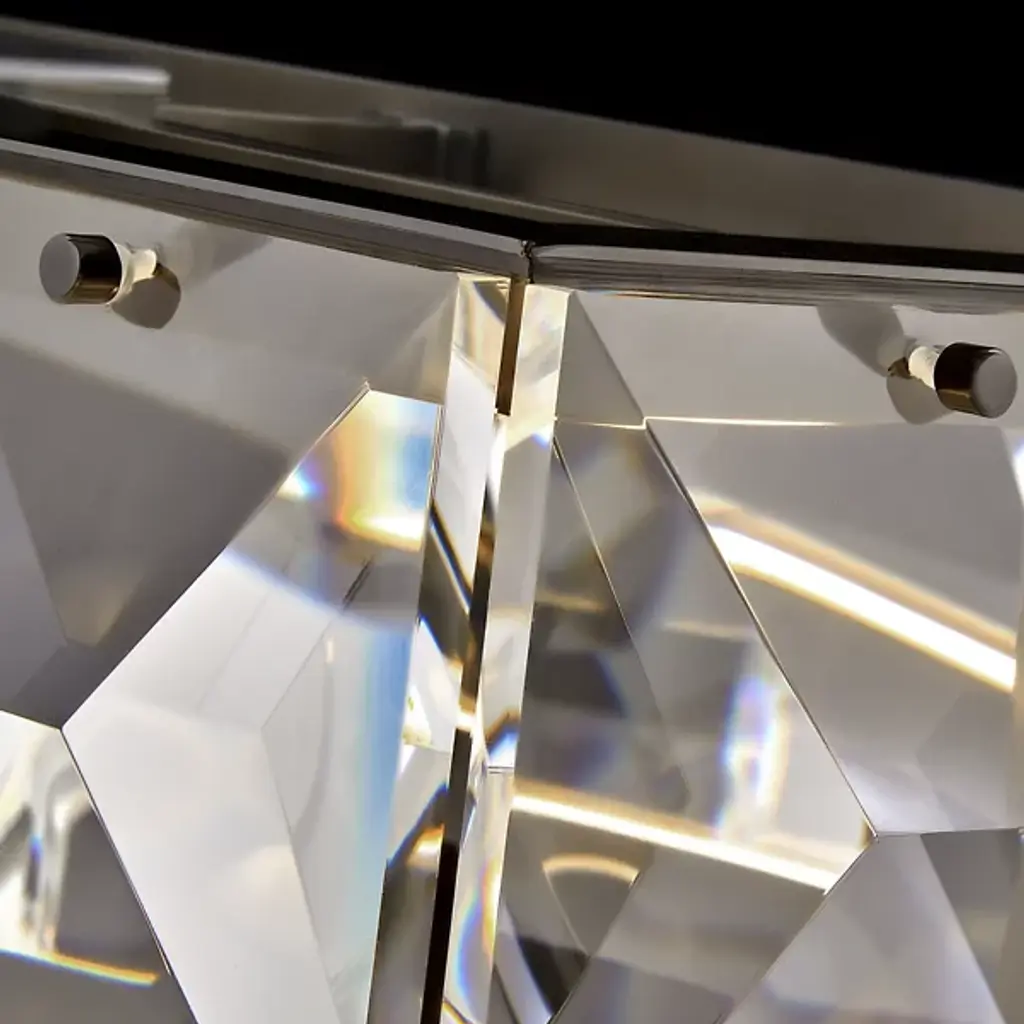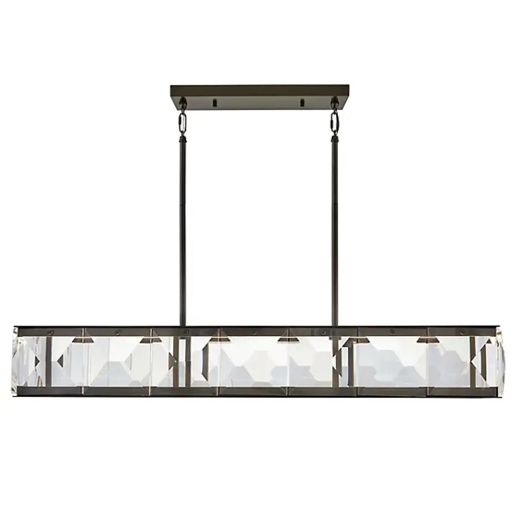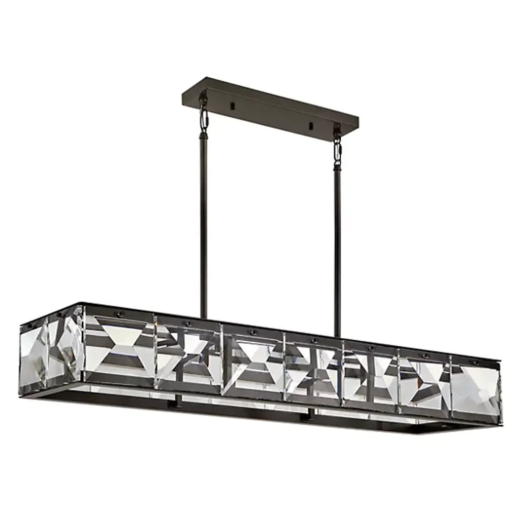 Bring a sense of glamor to a room with the Jolie LED Linear Suspension by Fredrick Ramond. This elegant fixture drops from a rectangular canopy by twin downrods that attach to an angular open frame. Square shaped faceted crystal panels line the frames’ outer sides, creating a glistening shade as integrated LED modules send light flowing through the crystal from within the metal. Radiating with light and style, this fixture instantly transforms the look and ambiance of any modern space.