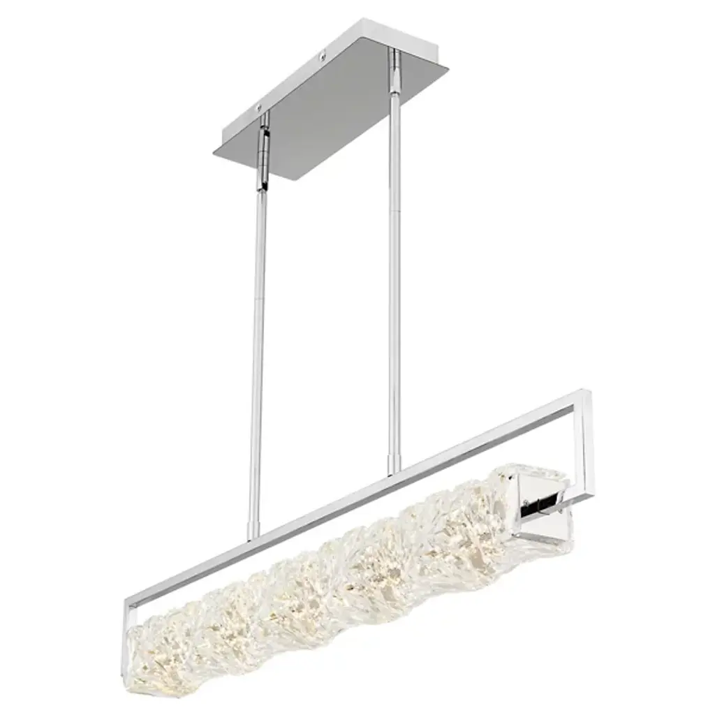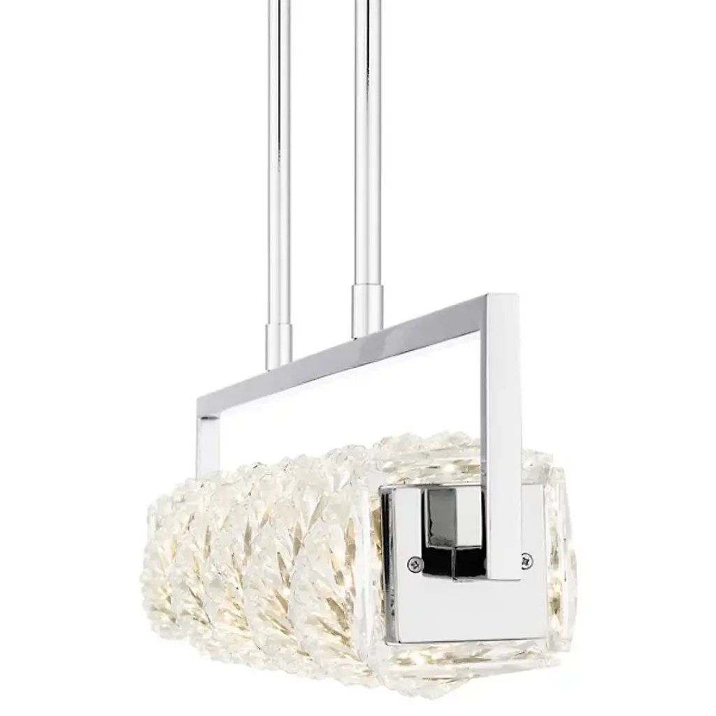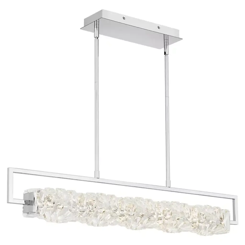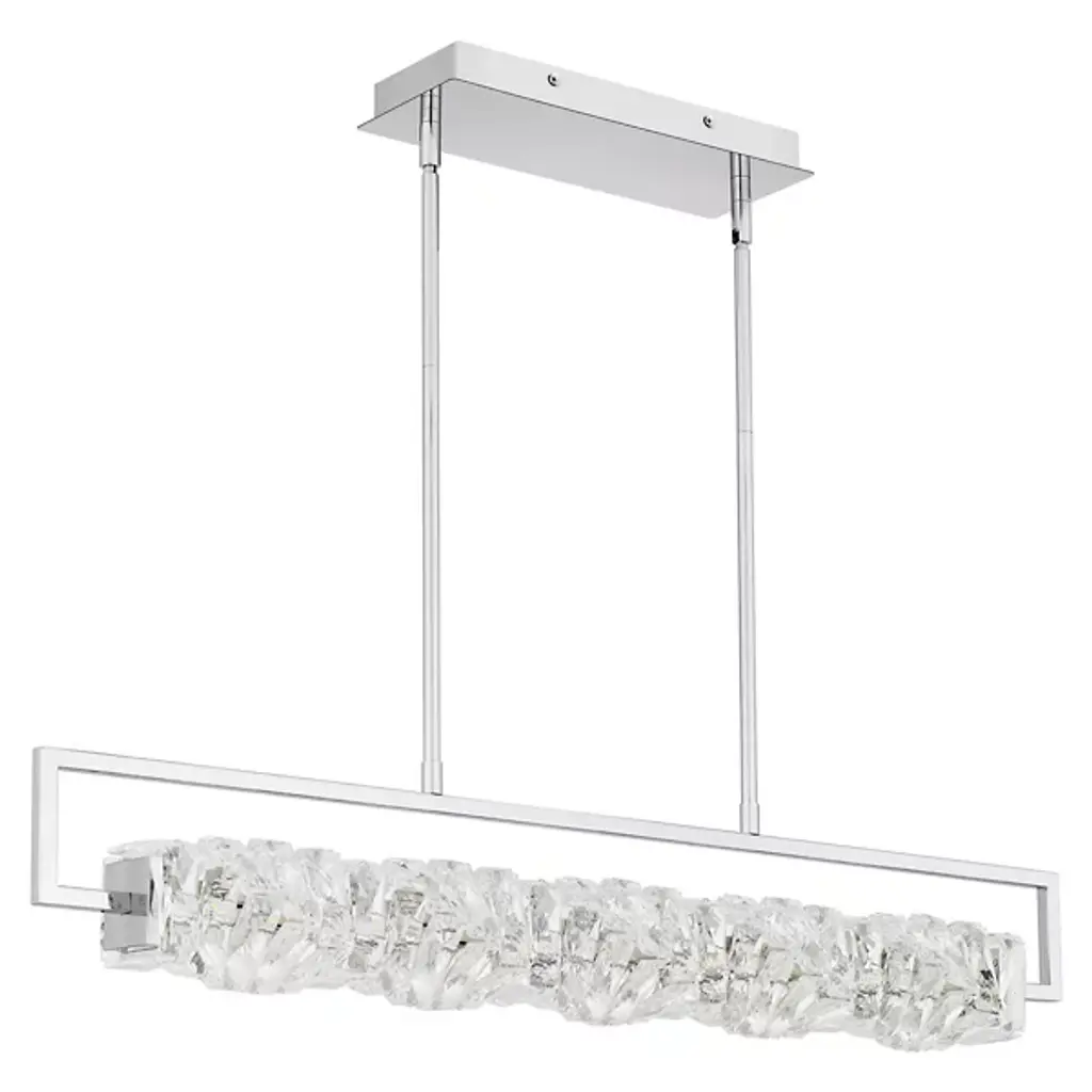The Klass LED Linear Suspension from Quoizel epitomizes elegance, where polished chrome meets sparkling crystal glass for a luxurious ambiance. Enhanced by an integrated LED light source, the clear crystal glass shines brilliantly, illuminating any space with sophistication. As a part of the renowned Platinum by Quoizel collection, the Klass LED Linear Suspension is an ideal choice for modern or contemporary kitchen islands or bar areas, adding a touch of glamour and style to your home.