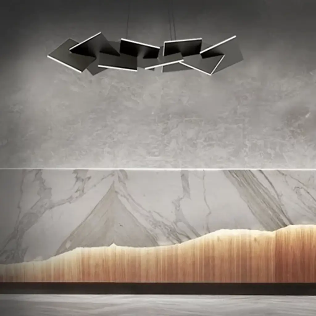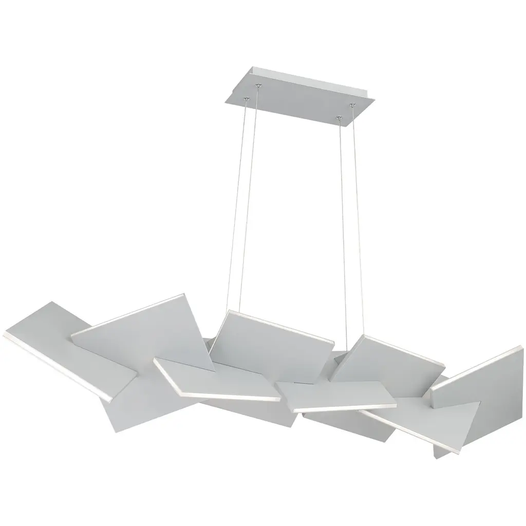 The Konstrukt LED Linear Suspension by Modern Forms is a cool, sculptural addition to spaces. A series of edge-lit interlocking square panels create a dynamic, geometric display that is distinct from every angle. These aluminum panels are dressed up with a uniform finish for a sleek look and this entire design is suspended and powered by thin cables for a clean, airy feel. Providing plenty of energy-efficient light, this floating piece brings a functional, artistic touch to its environment.