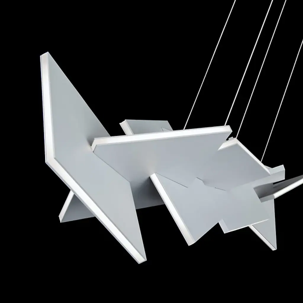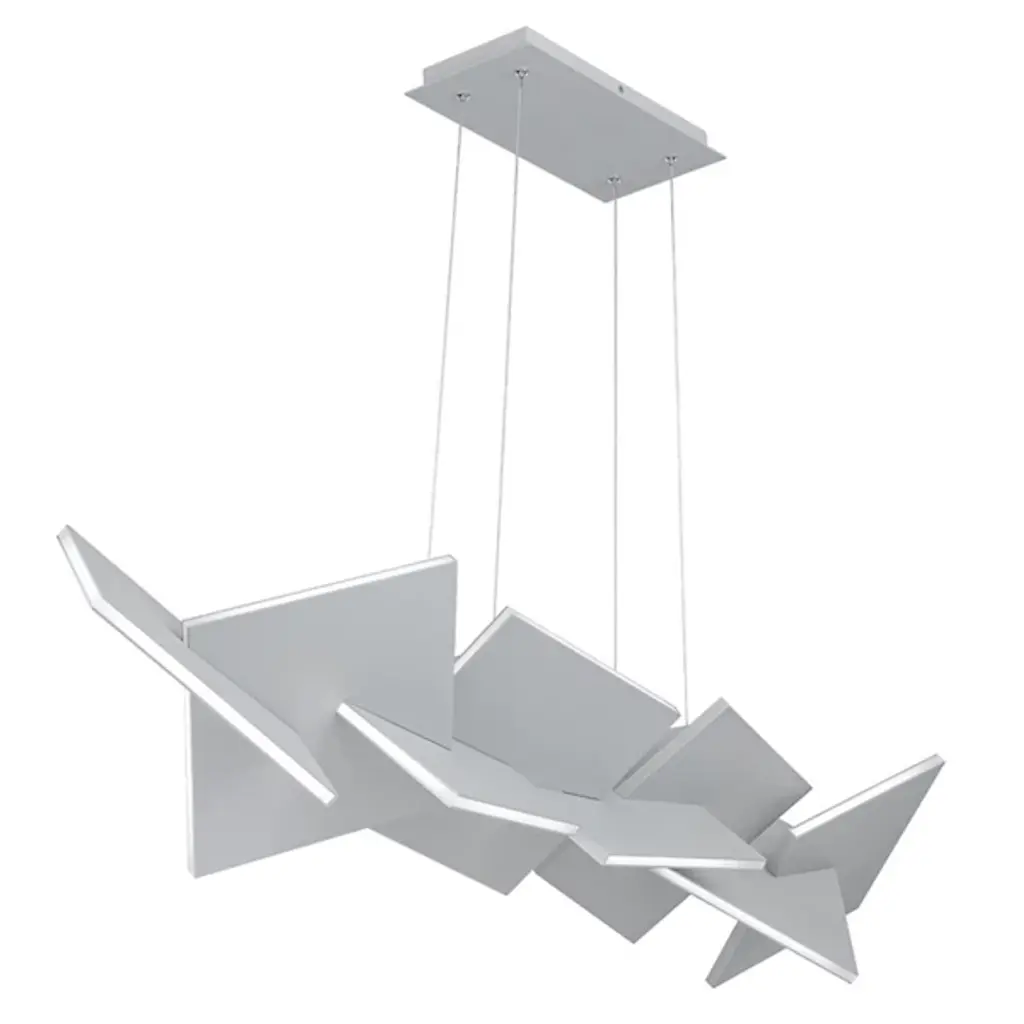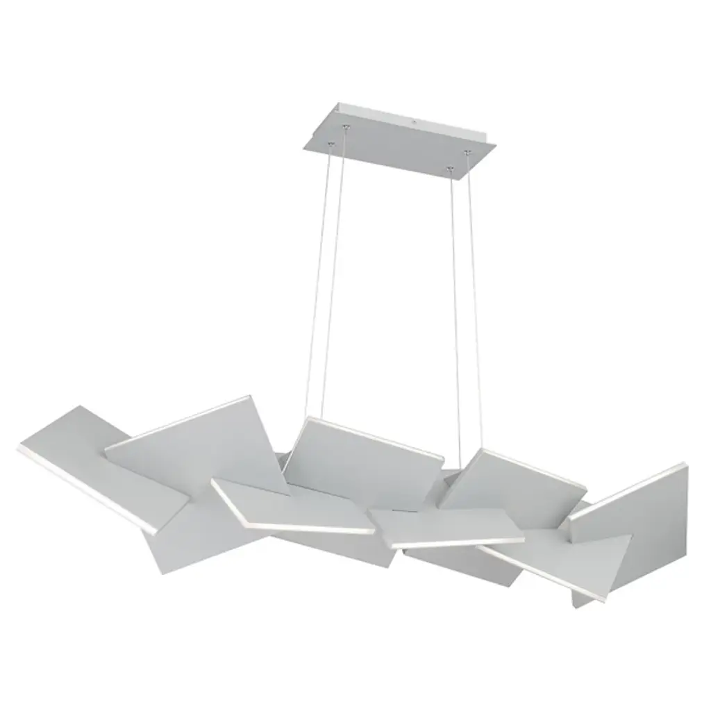 The Konstrukt LED Linear Suspension by Modern Forms is a cool, sculptural addition to spaces. A series of edge-lit interlocking square panels create a dynamic, geometric display that is distinct from every angle. These aluminum panels are dressed up with a uniform finish for a sleek look and this entire design is suspended and powered by thin cables for a clean, airy feel. Providing plenty of energy-efficient light, this floating piece brings a functional, artistic touch to its environment.