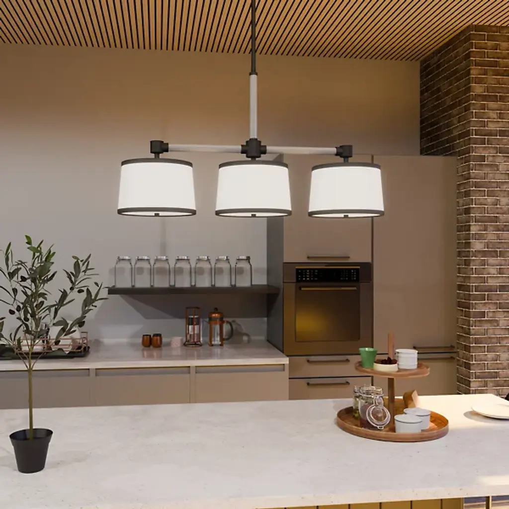 Explore the Kylen Linear Suspension from Quoizel, a perfect marriage of classic design and modern flair. Adorned with drum shades featuring egg-shell fabric and contrasting black edges, this fixture exudes sophistication. Enhanced by a matte black finish, it offers versatile styling options, seamlessly complementing any space. Elevate your decor with the timeless elegance and contemporary allure of the Kylen Linear Suspension, a fusion of traditional charm and modern sophistication that adds a touch of refinement to any room.