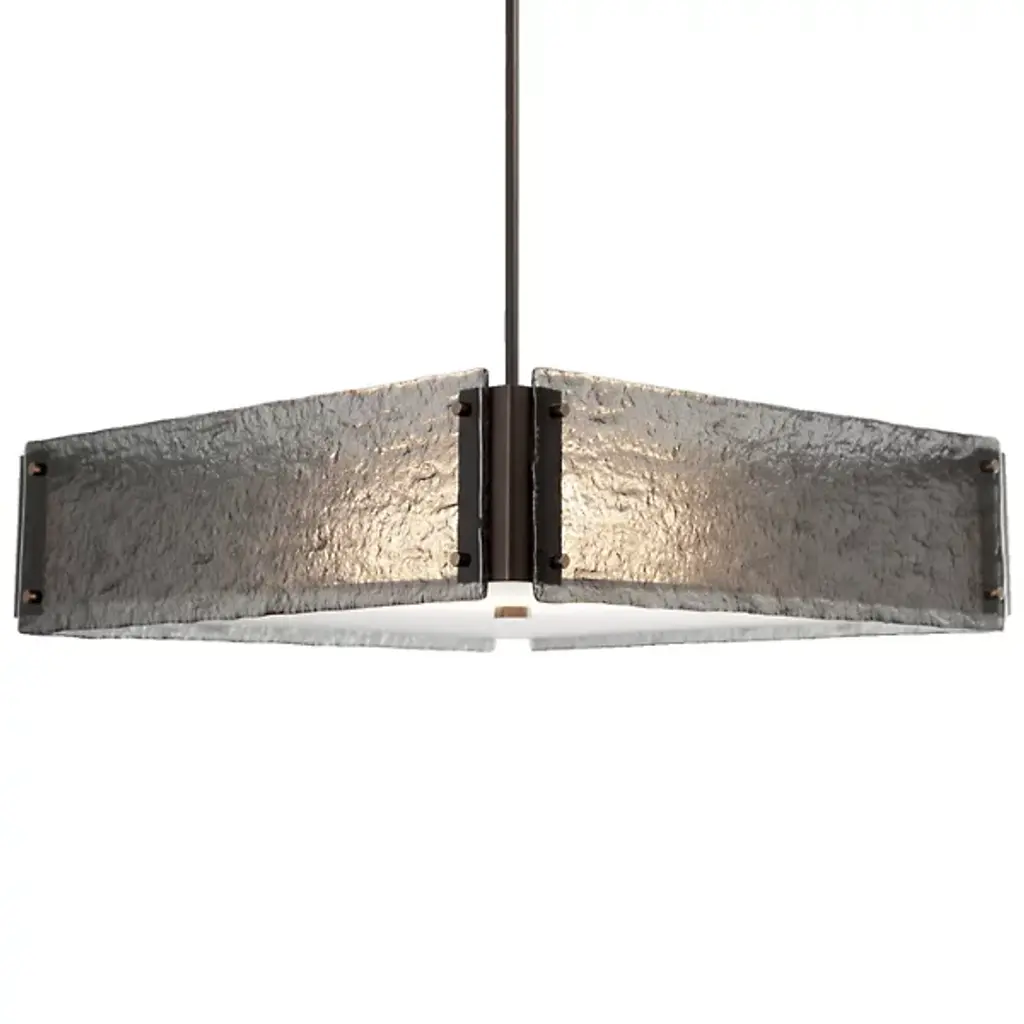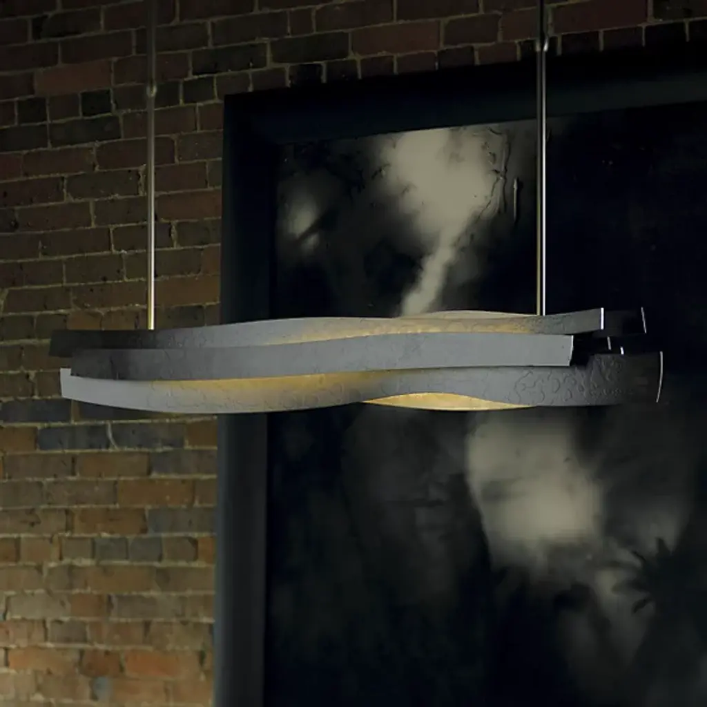 Meant to invoke thoughts of a pleasant scene of rolling hills, the Hubbardton Forge Landscape LED Linear Suspension features undulating steel planes surrounding a horizontal plate. A row of LEDs on the horizontal guide plate create a wash of up and down light, creating enough light for a dining or living space.