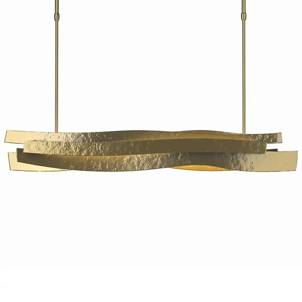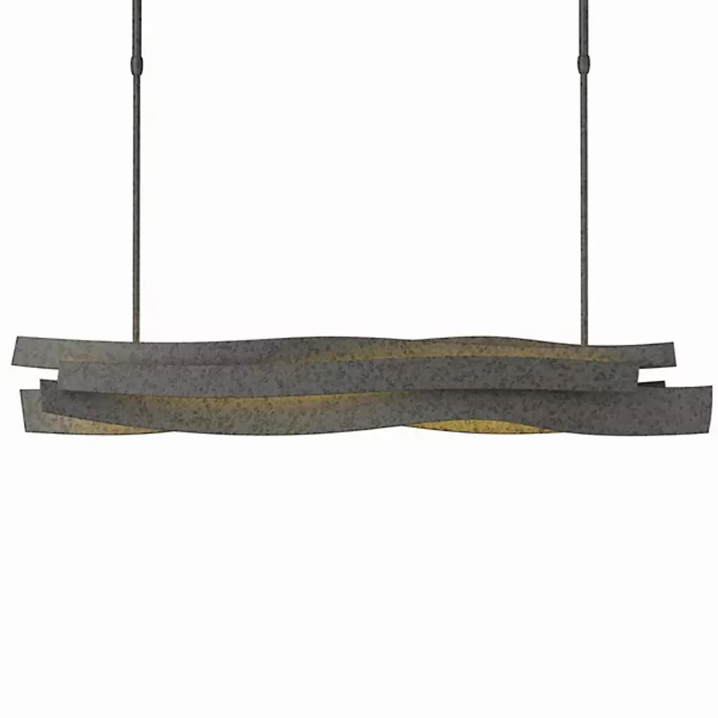 Meant to invoke thoughts of a pleasant scene of rolling hills, the Hubbardton Forge Landscape LED Linear Suspension features undulating steel planes surrounding a horizontal plate. A row of LEDs on the horizontal guide plate create a wash of up and down light, creating enough light for a dining or living space.