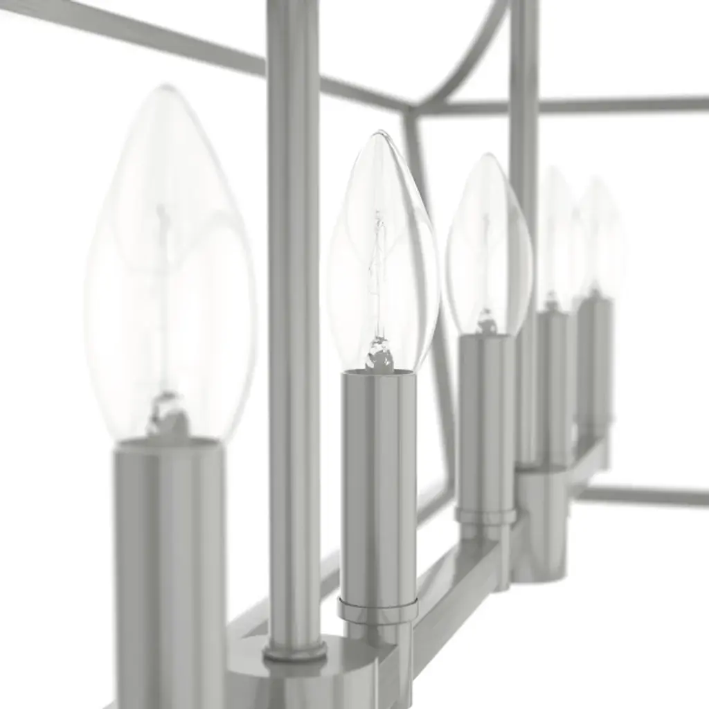 Add a sleek presentation to the rooms of your modern home with the Laurel Ridge Linear Suspension from Hunter Fans. Hanging from the ceiling with a rectangular mount and a pair of chainlinks, this piece enhances the décor with a simple yet appealing silhouette made of smooth metal. Rectangular in form, this piece features a linear arrangement of bulbs at the center and an upper part with gracefully angling arms for added visual appeal.
