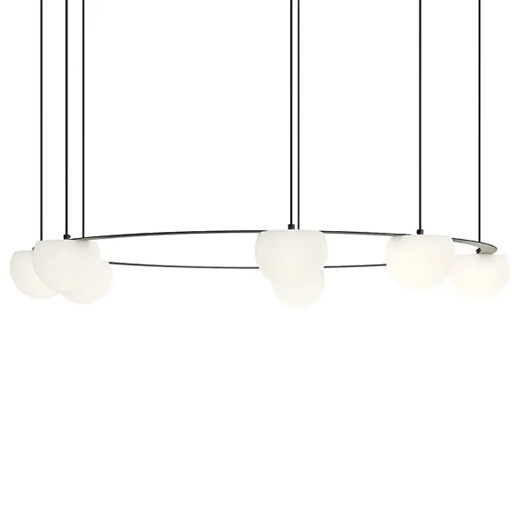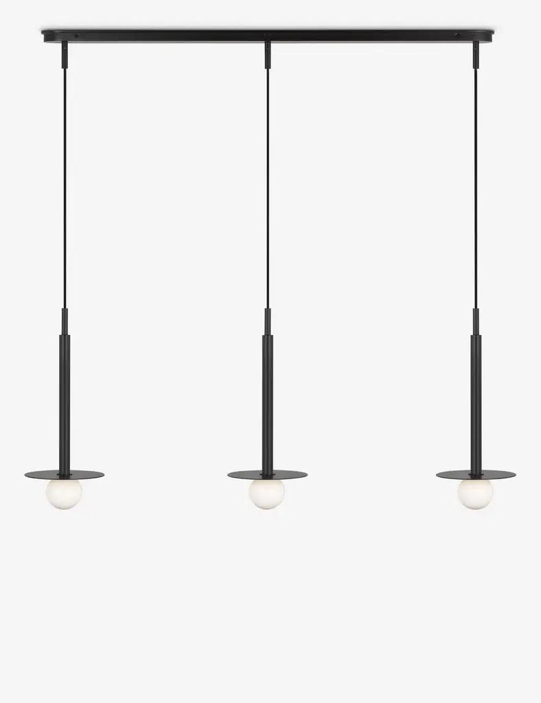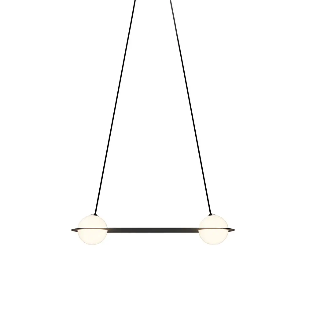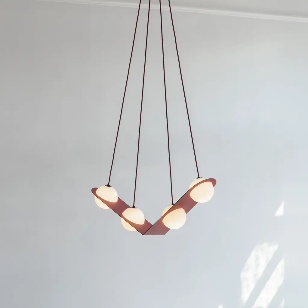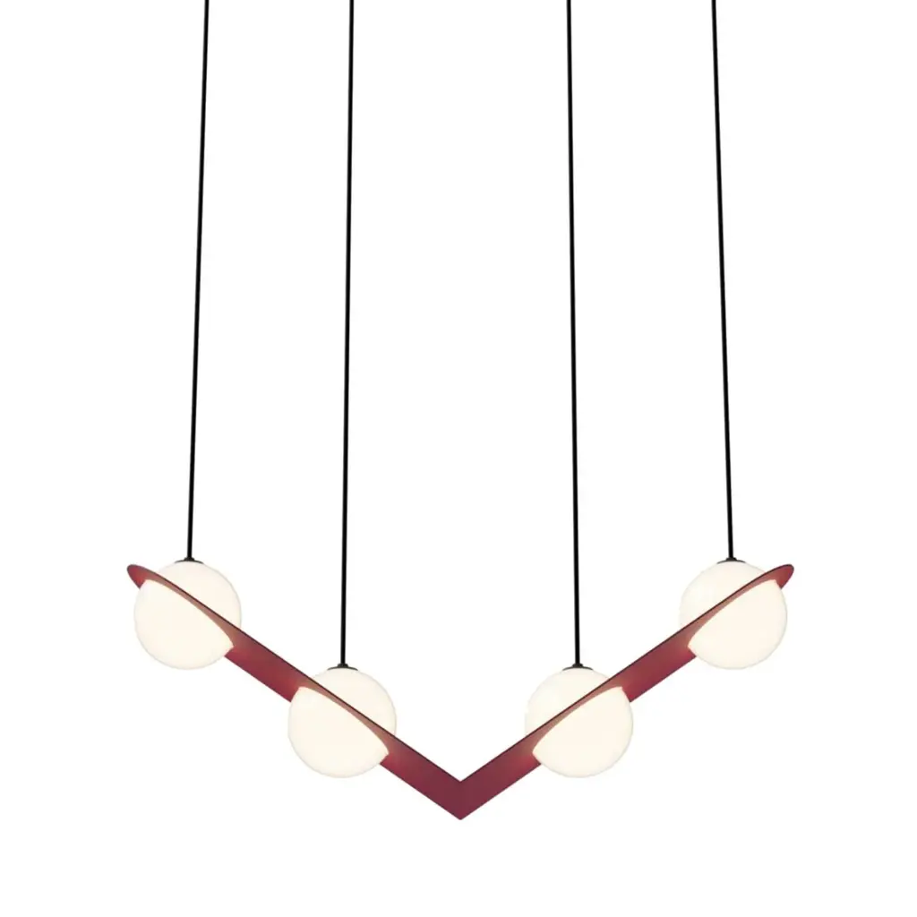 Laurent 02 follows Lambert & Fils collection's geometric template with its 4 handblown opaline globes "sliced" by a classic V-shaped metal structure. Offering an ambient LED glow via the milky glass forms, the suspension light is available in an curated choice of finishes in polished brass, nickel-plate or varied colors of powder-coated aluminum. With a choice of angled- or parallel-mount models, the striking fixture is handmade at the brand's Montreal atelier.