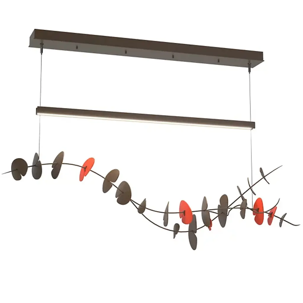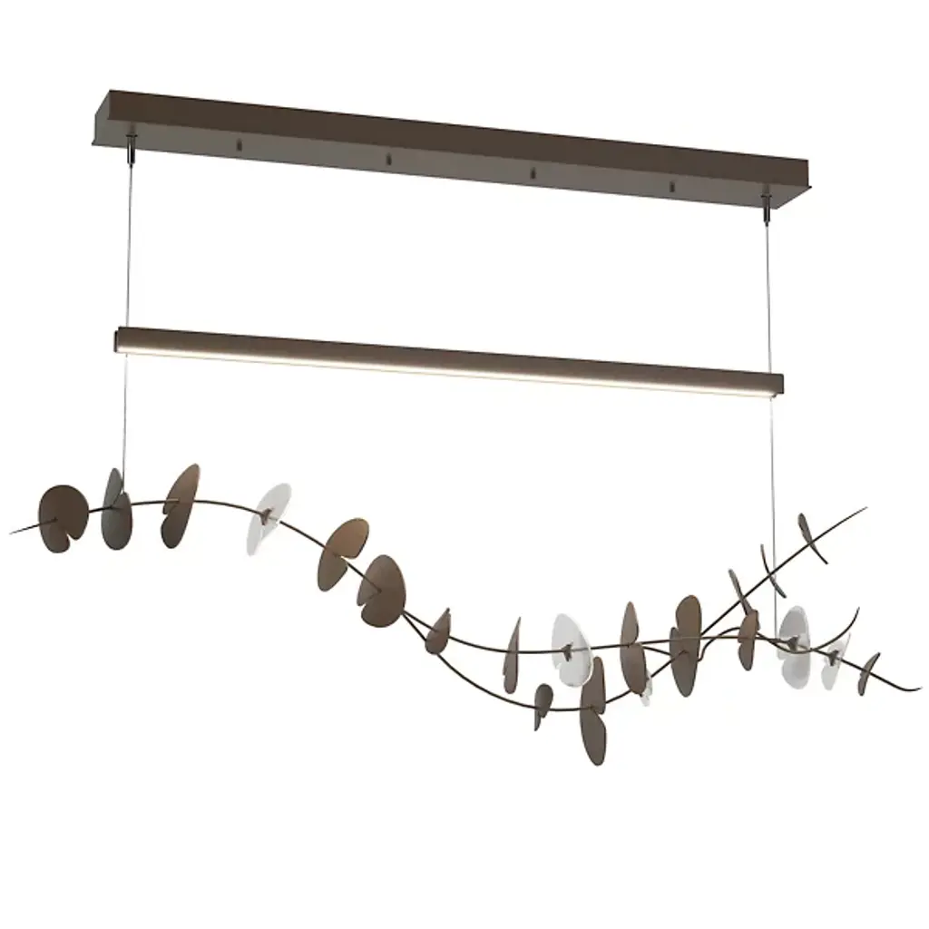 The Lily LED Linear Suspension by Hubbardton Forge features an integrated LED light source that beautifully illuminates two ‘vines’ of ‘lily pads’. Vermont-based craftsmanship and attention to detail are put on display when this fixture is lit, as the artisan accents come to life. Dimmable with an ELV dimmer (not included).