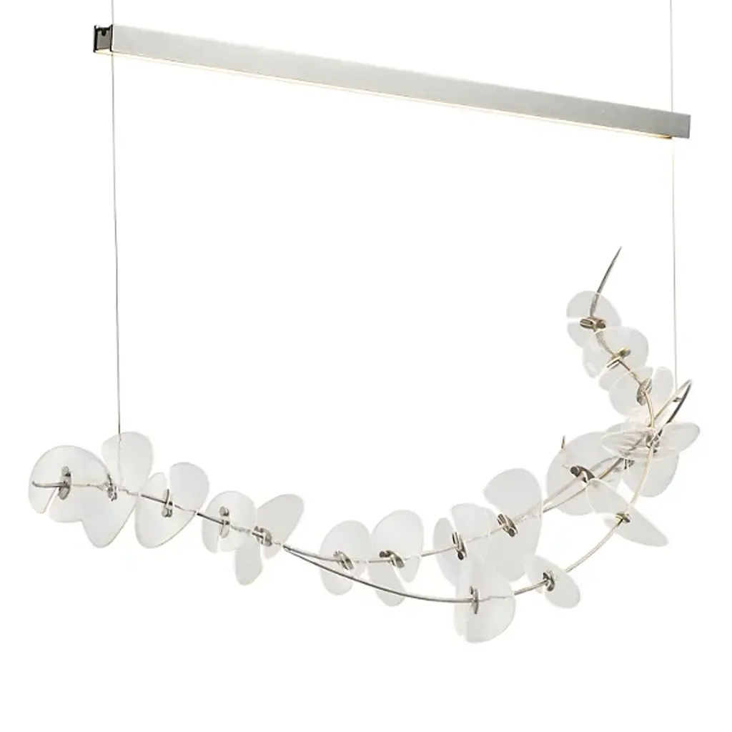 The Lily LED Linear Suspension by Hubbardton Forge features an integrated LED light source that beautifully illuminates two ‘vines’ of ‘lily pads’. Vermont-based craftsmanship and attention to detail are put on display when this fixture is lit, as the artisan accents come to life. Dimmable with an ELV dimmer (not included).