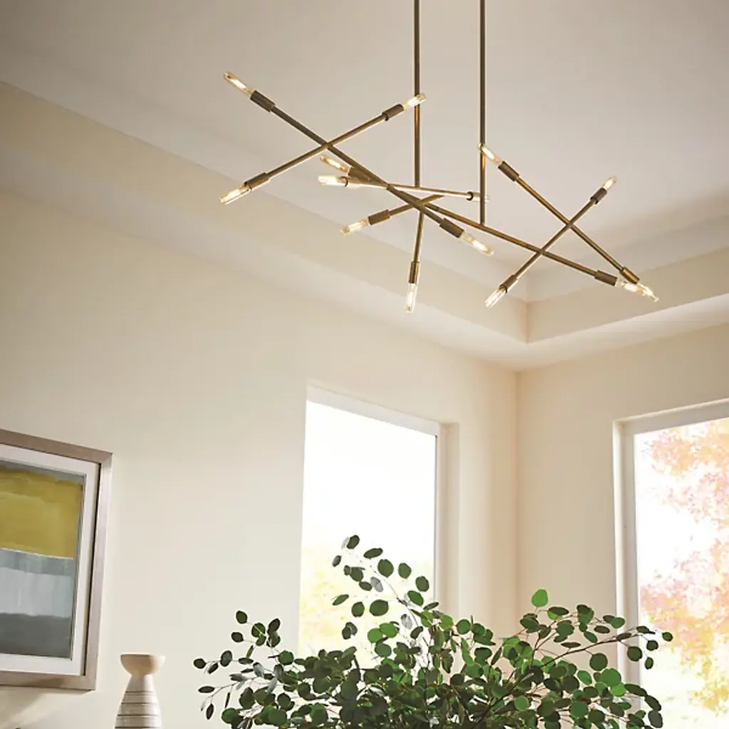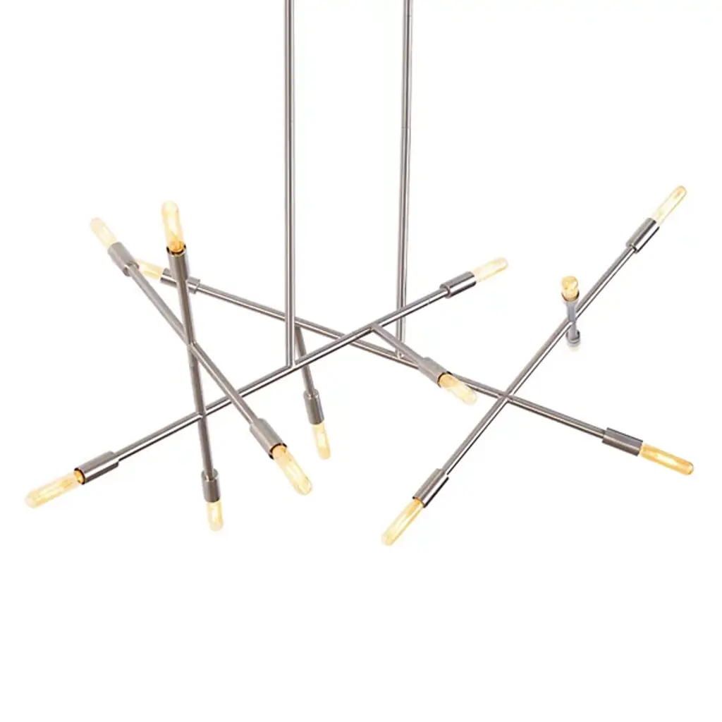 The Visual Comfort Modern, formerly known as Tech Lighting, Line Wave 2 Linear Suspension will bring some artistic asymmetry to your lighting scheme. Random placement of aluminum tubes with exposed bulbs at each end form this fixture. Two rigid stems and a rectangular ceiling canopy support the structure. Fully dimmable and height adjustable.