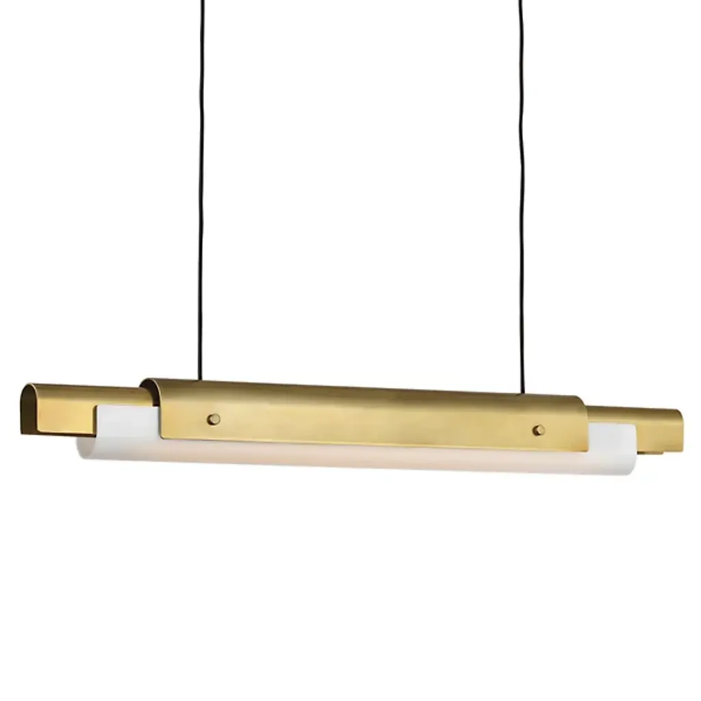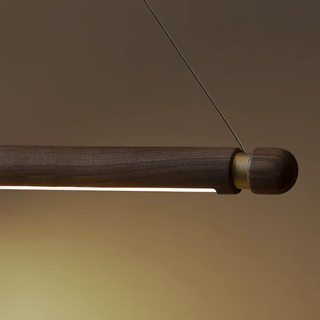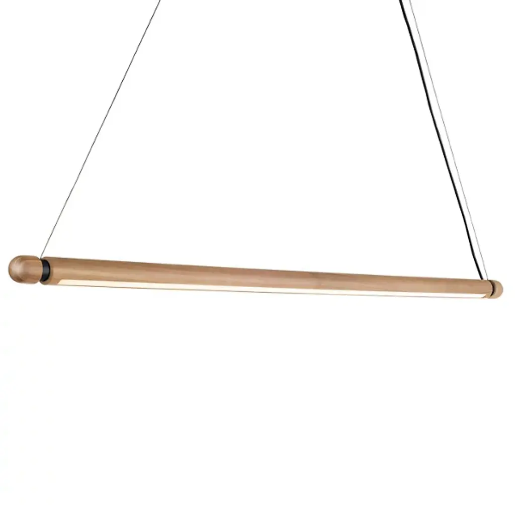 The Linea Horizontal LED Linear Suspension from Nomon offers unforgettable and elegant illumination to large inside spaces. Made in Spain, and suspended from a flaring canopy via slim cables, this simple and soothing design from the mind of Andres Martinez places strong and energy-friendly LED lamping inside a cylinder of natural wood. The fixture's body directs the light, while metallic collars at either end provide stylish and strong accents that draw the eye.