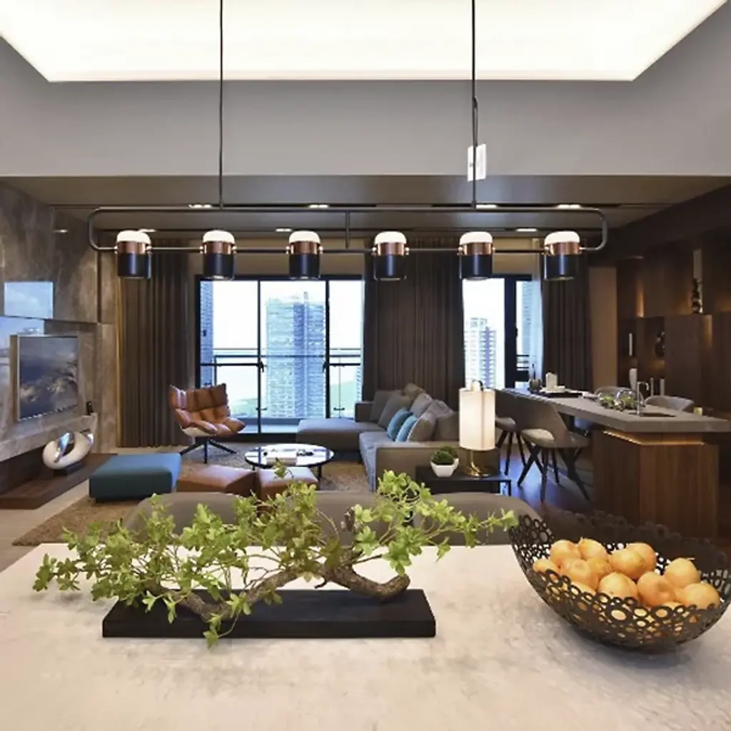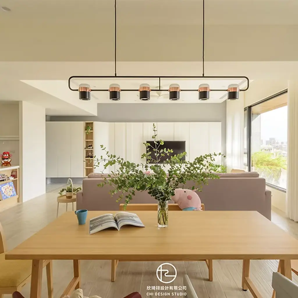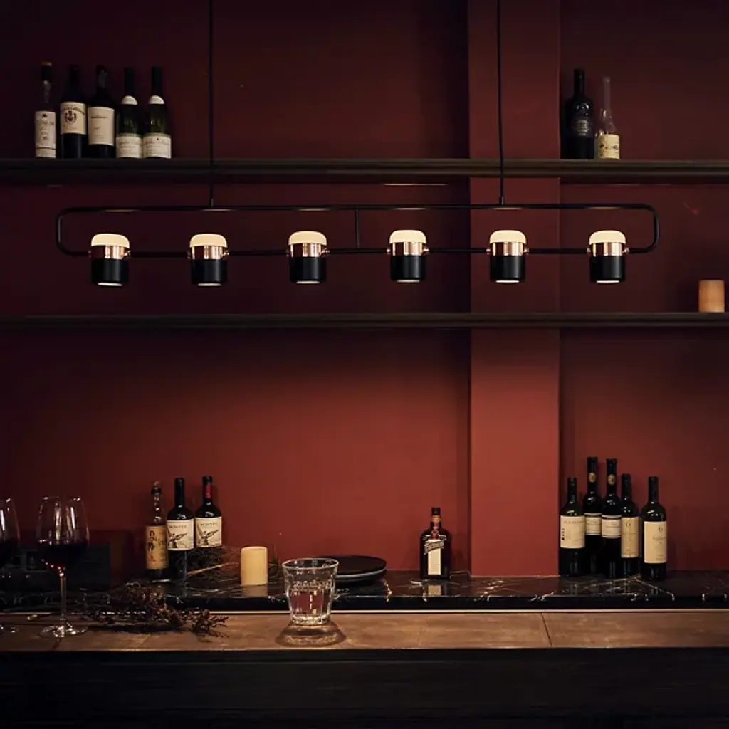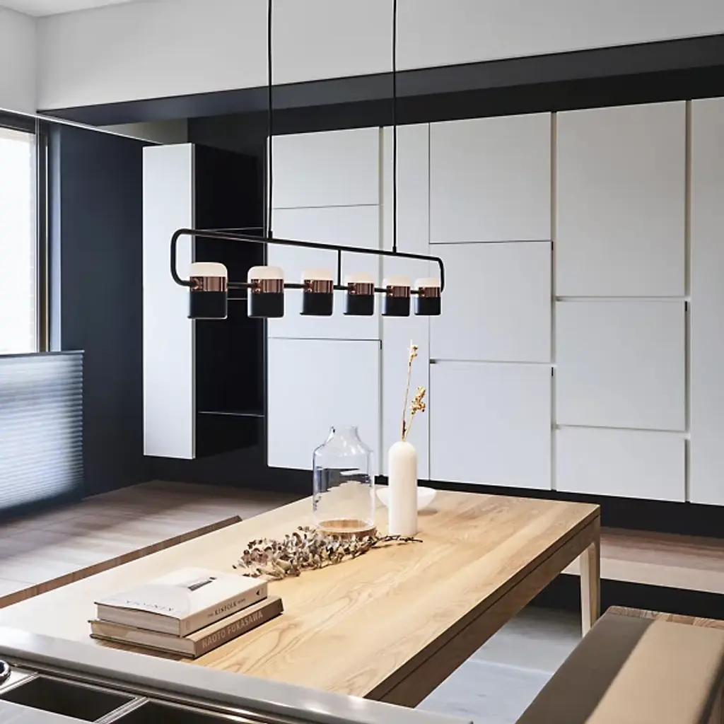 Effortlessly chic, the Ling PL6 LED Linear Suspension from Seed Design is a choice addition to a dining space or kitchen. Inspired by patterned metal fences built around balconies and windows, this fixture descends from an elongated canopy via two downrods. An open frame supports a series of cylindrical shades that glow brightly with light from integrated LEDs. Each shade can be adjusted to direct its light in any direction, allowing the piece to provide upward, downward, or ambient light with ease.