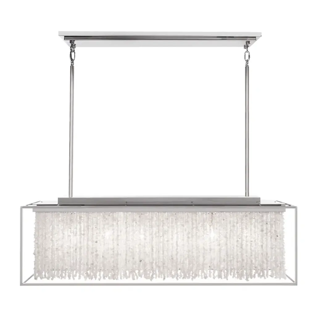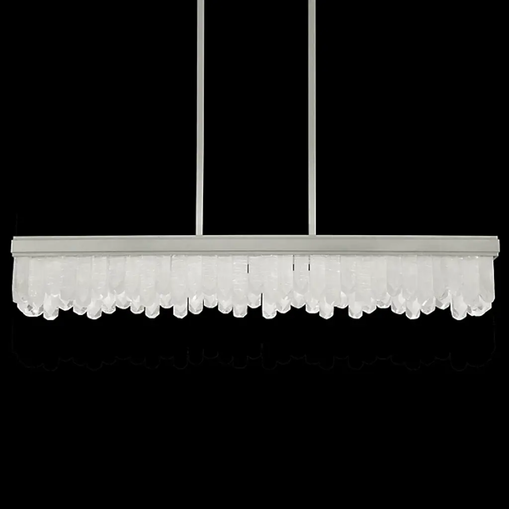 Bring the beauty of nature to your modern home with the Lior Down LED Linear Suspension by Fine Art Lamps. A striking piece designed to make a statement in any setting, this fixture features an array of illuminated rock crystals that drop vertically from a rectangular metal frame. Each glass spire takes on a natural silhouette to lend a more organic aesthetic, while the fixture’s integrated LEDs fill each crystal with light and create an encompassing glow throughout the space.