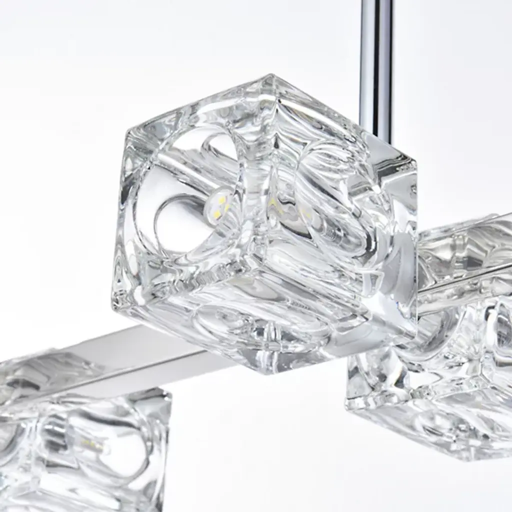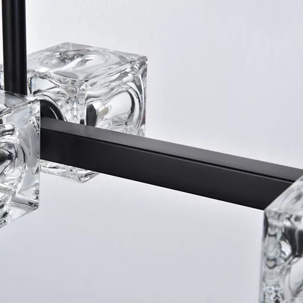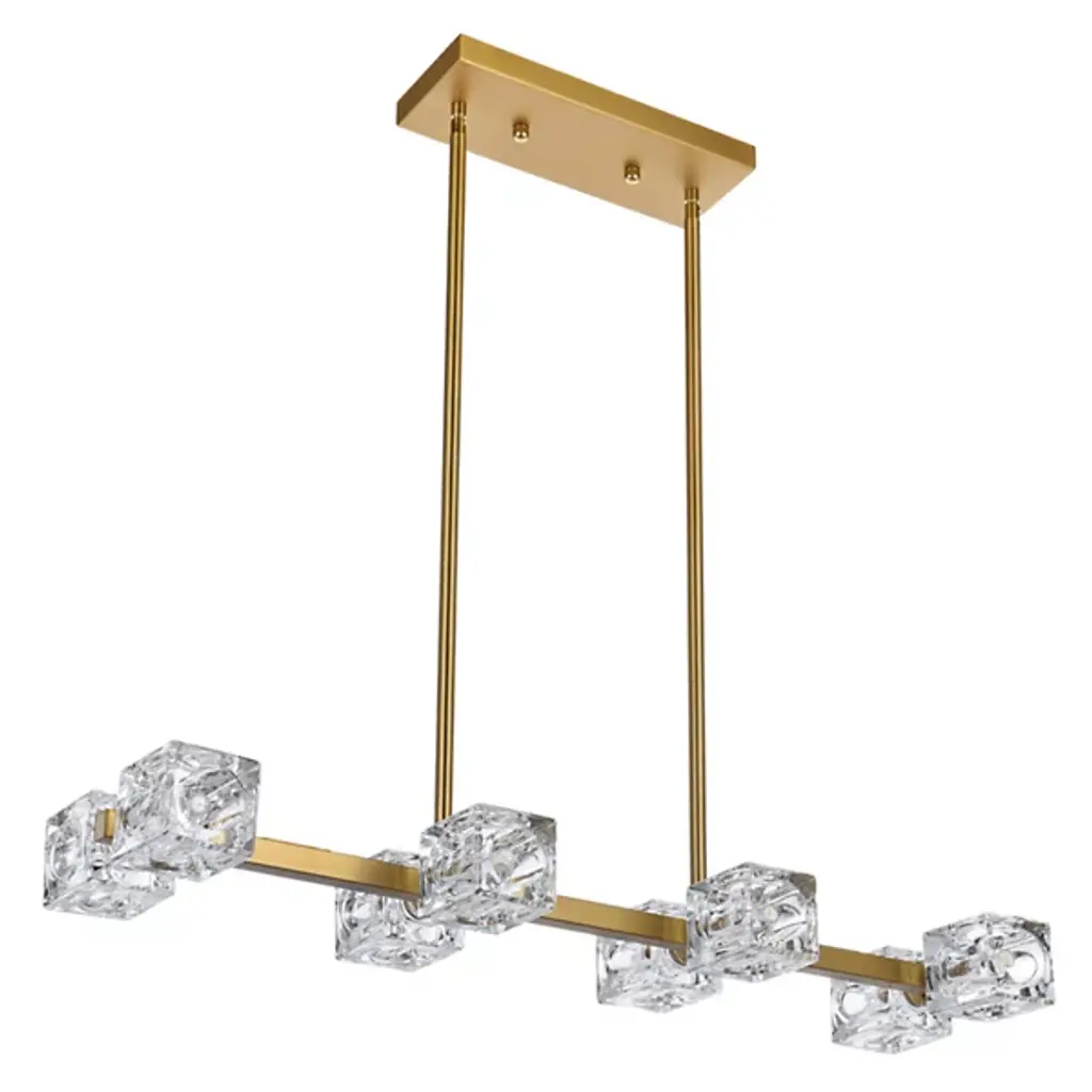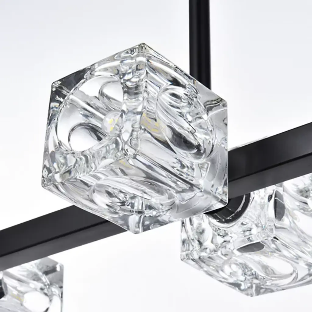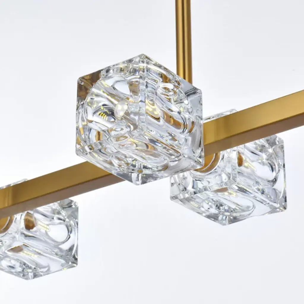 The Lira Linear Suspension from Huxe is at once simple and sculptural. It features eight lights with distinctive dimpled square glass shades, offering a uniquely textured look. Its durable iron support structure blends simple contemporary design with industrial elegance. Descending from a rectangular canopy, it includes two slim rods set in parallel for stability and a refined, modern character. This fixture shows off elements of Mid-Century Modern and Transitional styles, making it a versatile and sophisticated addition as it distributes a mellow ambiance around any interior space.