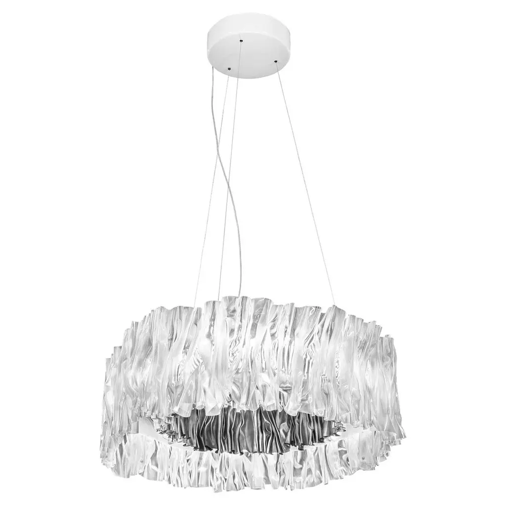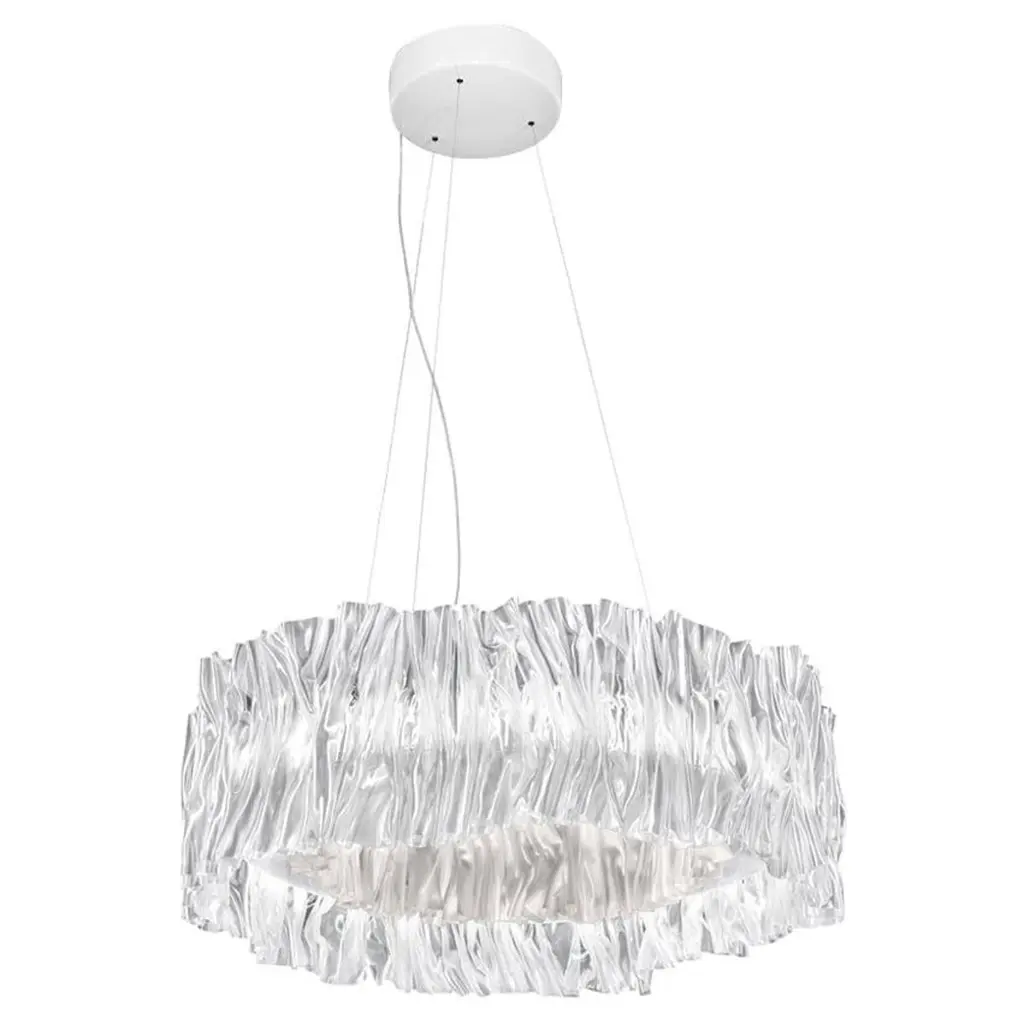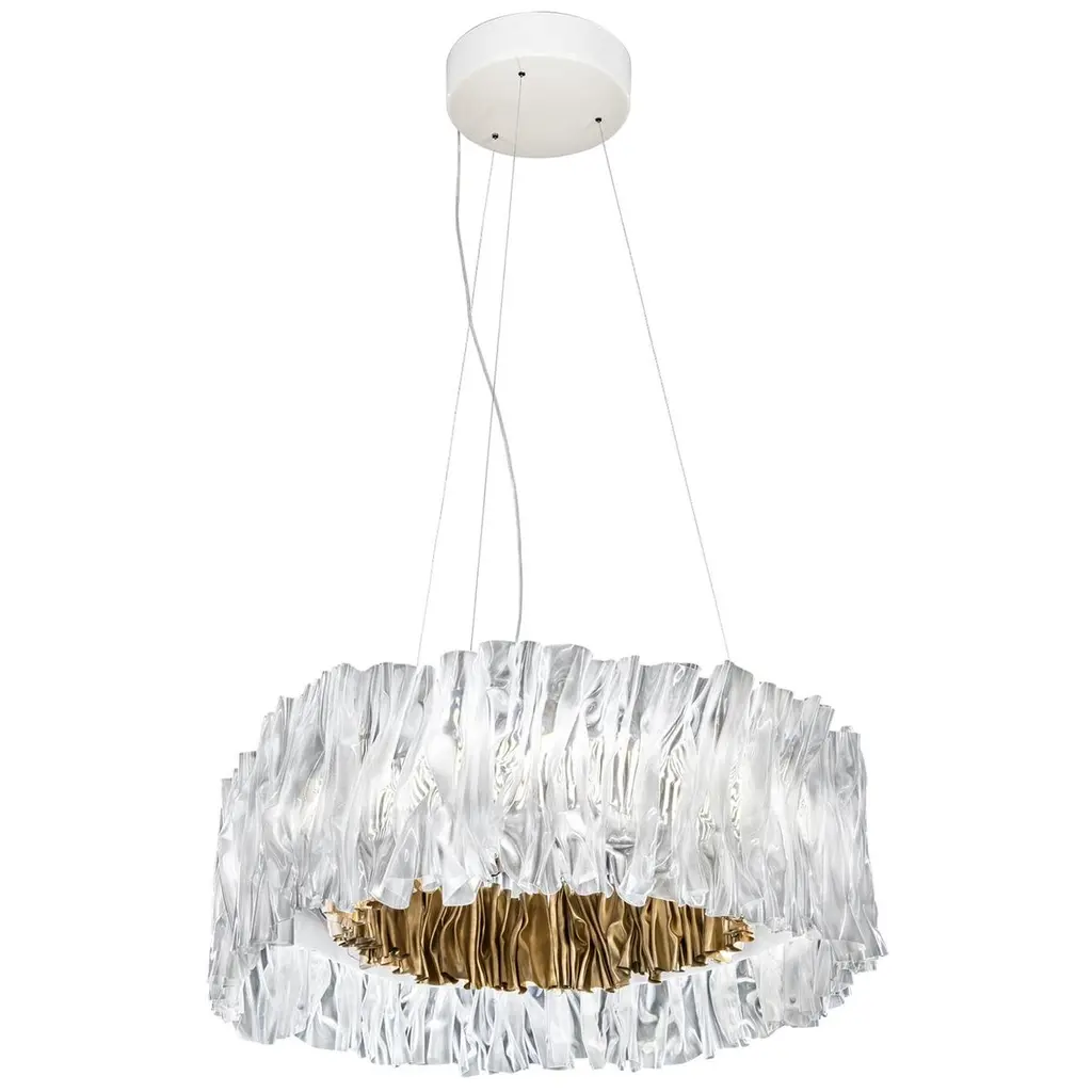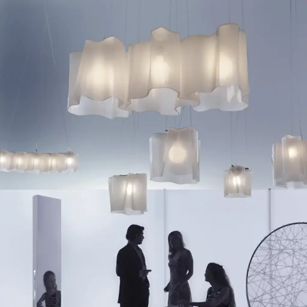 Over lengthy dining room tables, the Artemide Logico Triple Linear Suspension provides beautiful diffuse illumination and a sense of harmony. It features three of the distinctive Logico shades, the various folds of the hand-blown glass overlapping and connecting the three shades into one linear configuration. Designed by Michele De Lucchi and Gerhard Reichert.