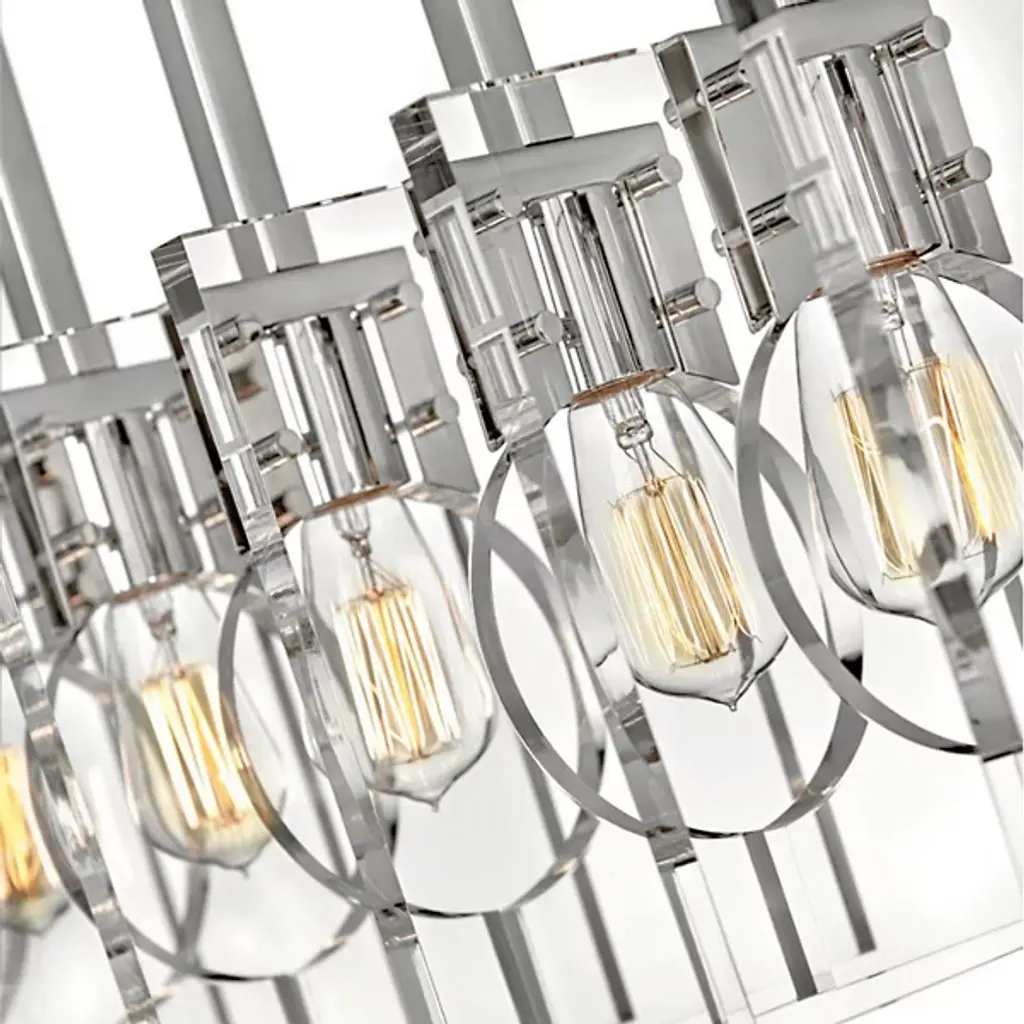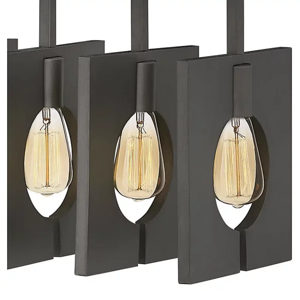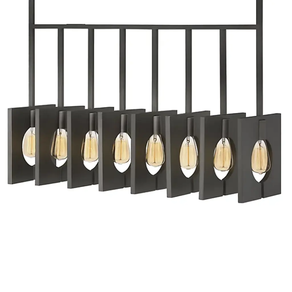 Designed by Lisa McDennon, the Ludlow Linear Suspension by Hinkley will bring distinct elements of design-minded style and geometry to your living space. Featuring detailed steel work and exposed lamping, this fixture is perfectly complemented by vintage Edison bulbs. Install over a kitchen island, dining room table, or even in an office or game room. Dimming capability allows for control over room ambience.