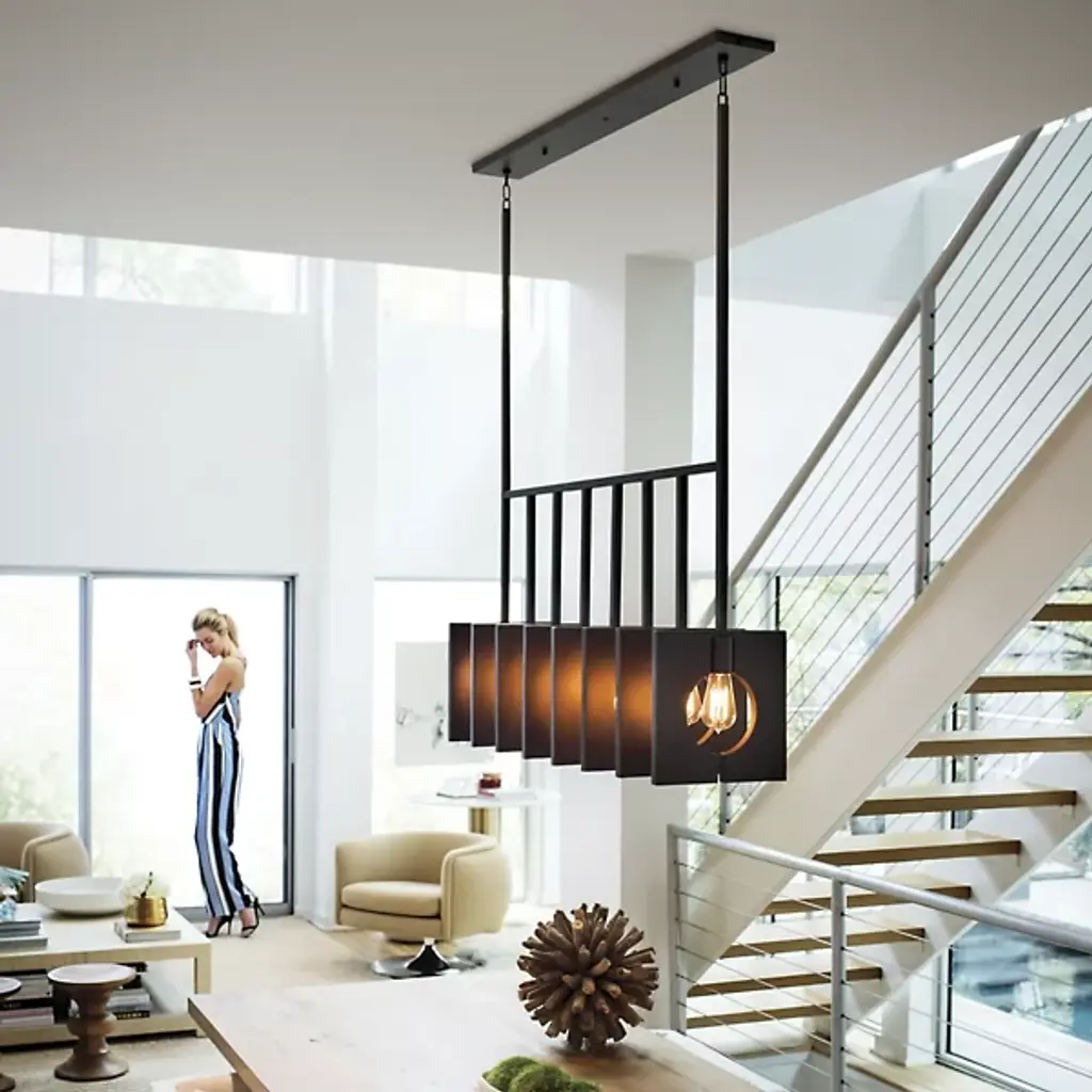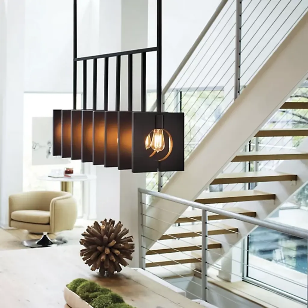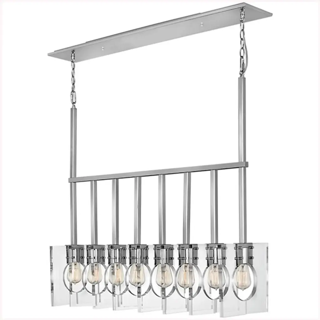 Designed by Lisa McDennon, the Ludlow Linear Suspension by Hinkley will bring distinct elements of design-minded style and geometry to your living space. Featuring detailed steel work and exposed lamping, this fixture is perfectly complemented by vintage Edison bulbs. Install over a kitchen island, dining room table, or even in an office or game room. Dimming capability allows for control over room ambience.