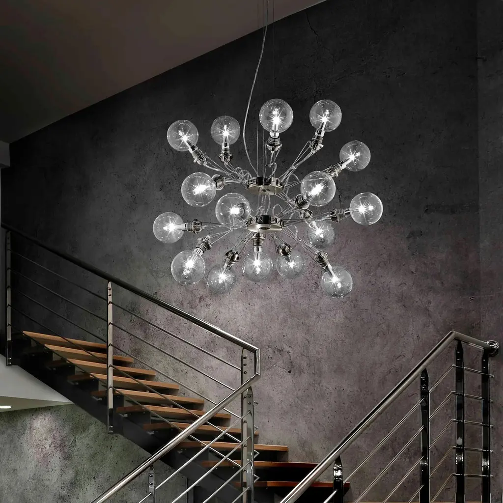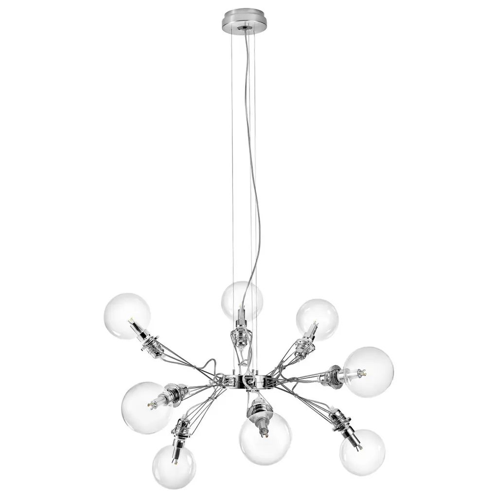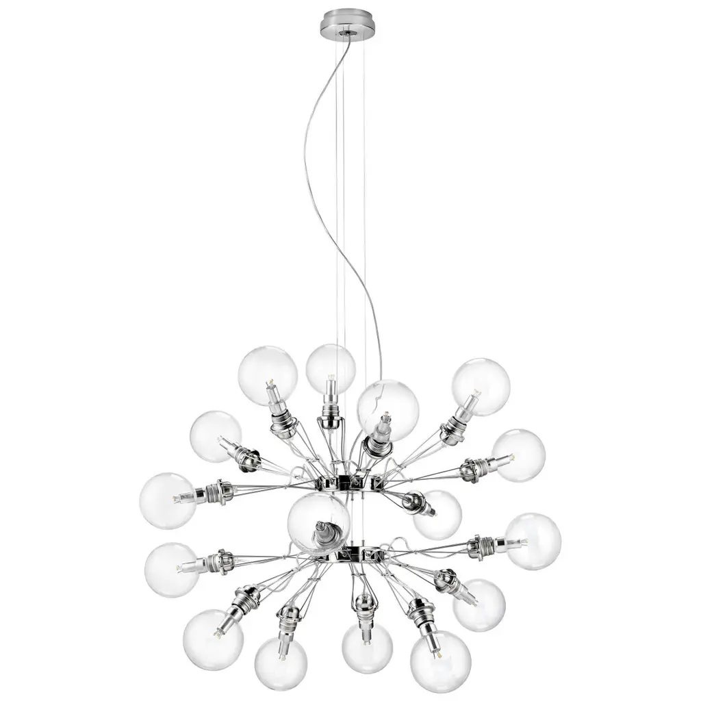 Hanging lamp in aluminium alloy and steel made of a central body with sixteen arms that can be moved vertically; halogen or fluorescent compact bulbs can be used within the maximum admitted power.bulbs are not includedDimmableWith dimmable bulbs onlySource:16 Max 60 WE27Code:38744.