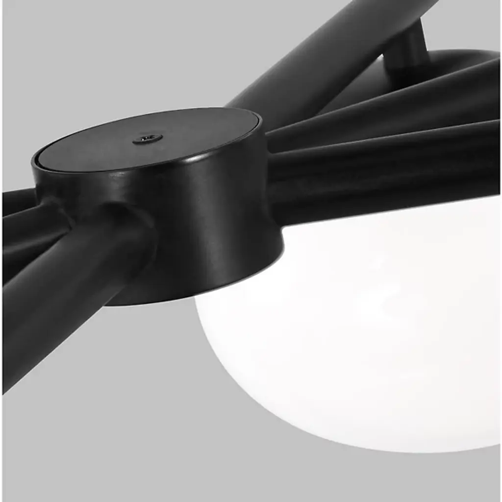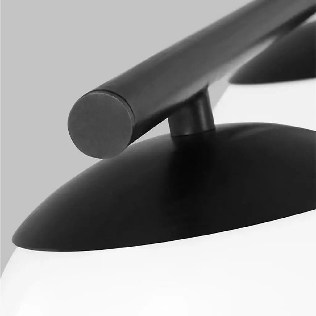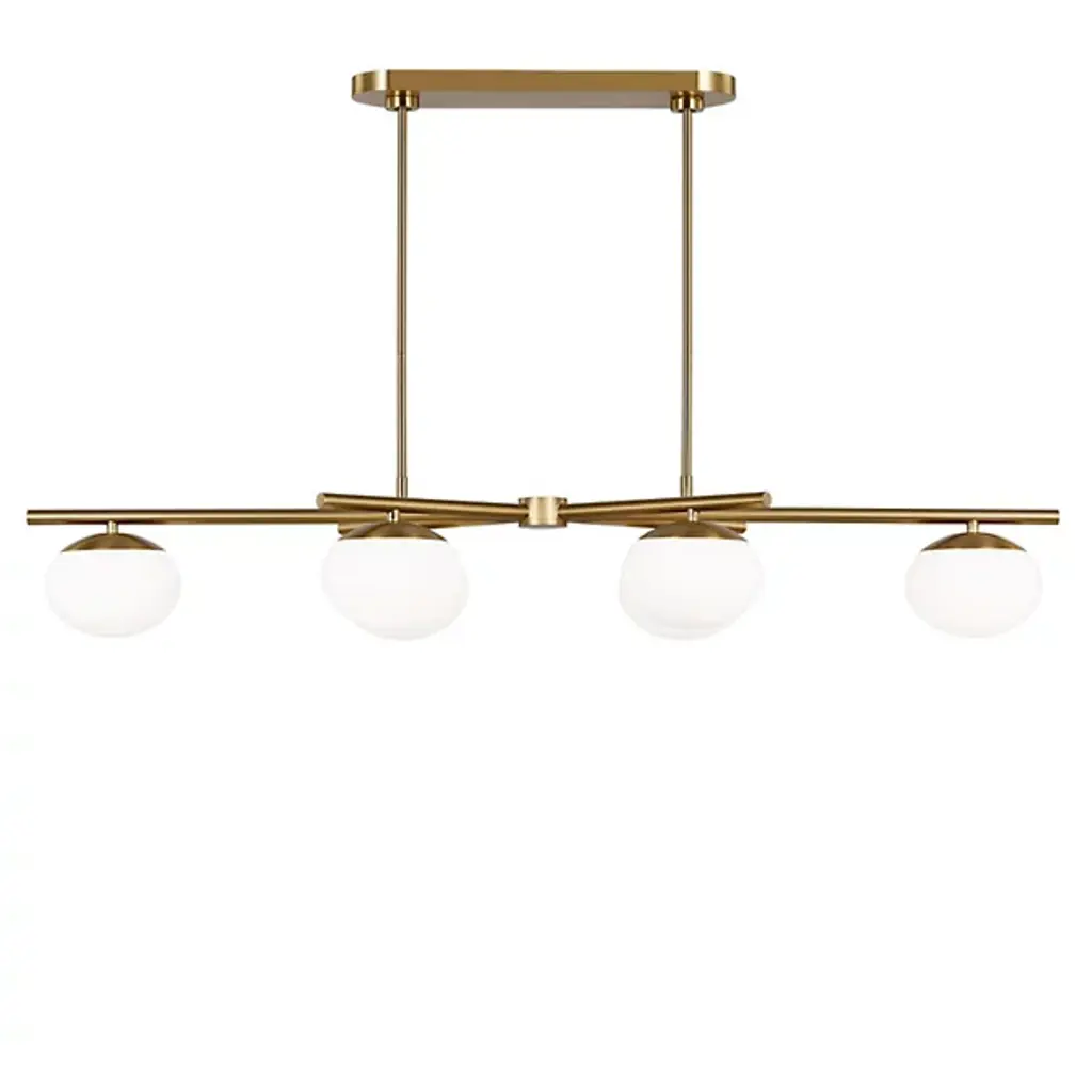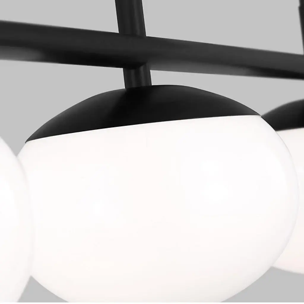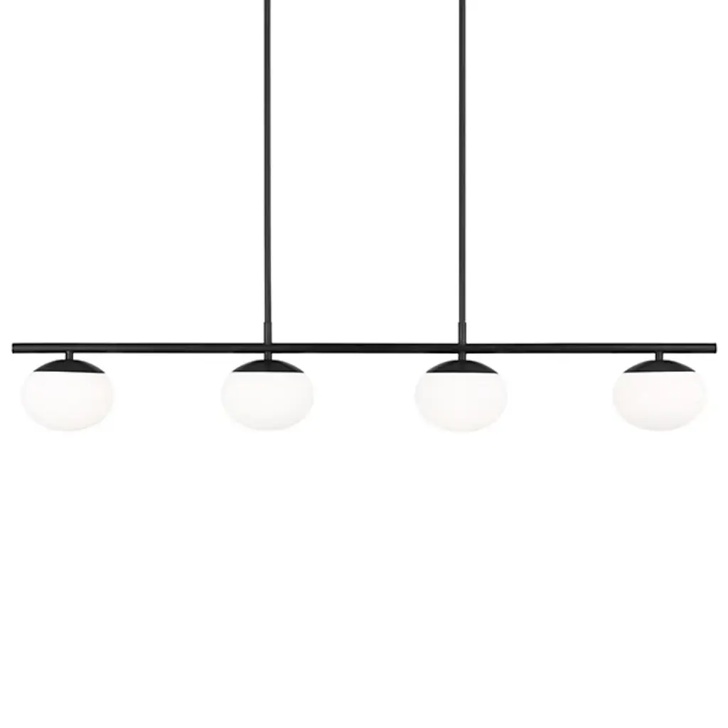 Creating for the high-quality lifestyle brand ED, Ellen DeGeneres brings her unique vision to life with the mid-century modern Lune Linear Chandelier. Beautiful orbs of milk glass serve as diffusing shades for this piece. Each shade seems to suspend from the minimal horizontal steel rod that hangs from the matching canopy above. Because this item is suitable for dry interiors or damp locales, it allows many options to make a luxurious statement.
