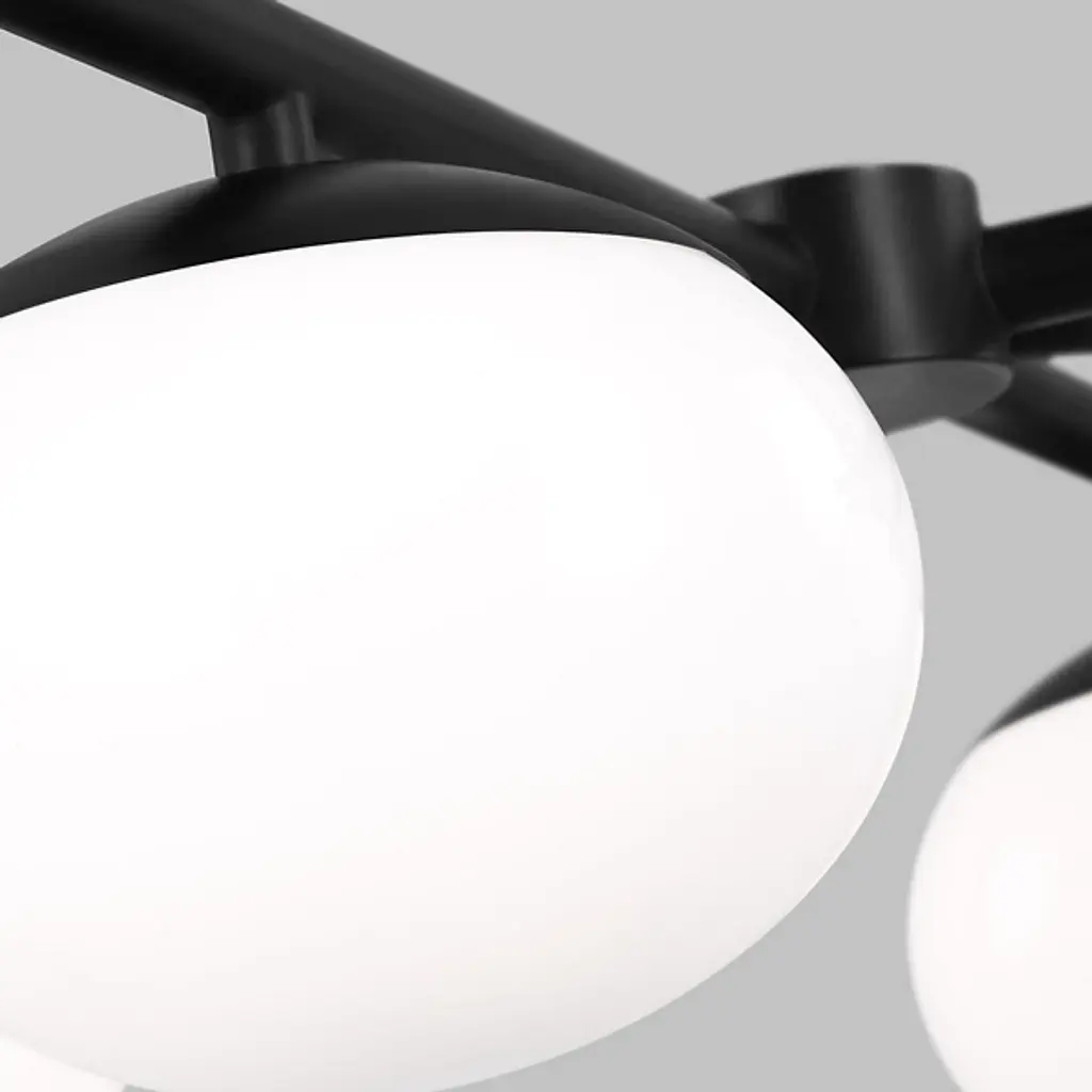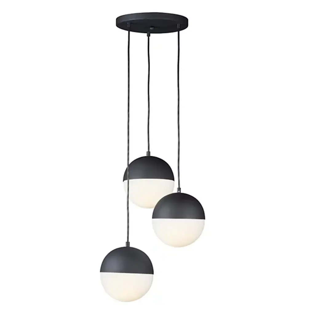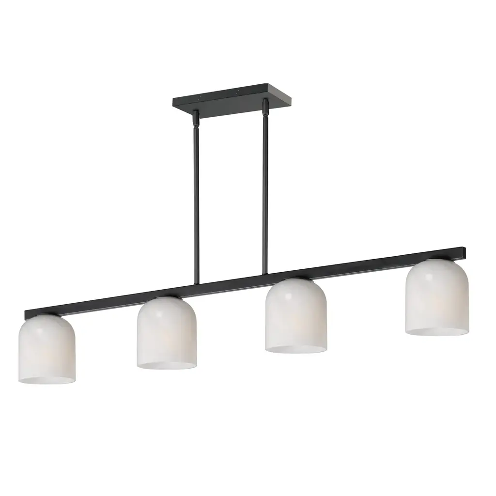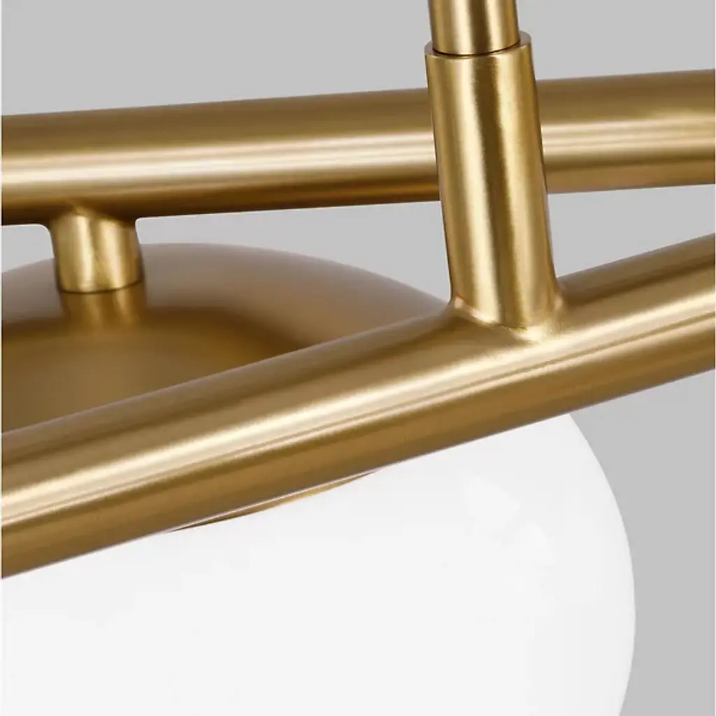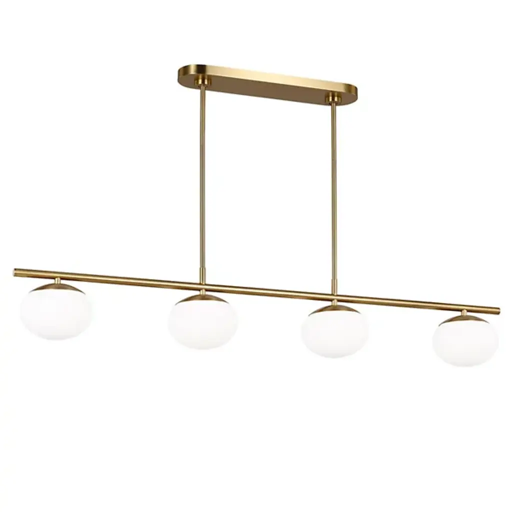Creating for the high-quality lifestyle brand ED, Ellen DeGeneres brings her unique vision to life with the mid-century modern Lune Linear Chandelier. Beautiful orbs of milk glass serve as diffusing shades for this piece. Each shade seems to suspend from the minimal horizontal steel rod that hangs from the matching canopy above. Because this item is suitable for dry interiors or damp locales, it allows many options to make a luxurious statement.