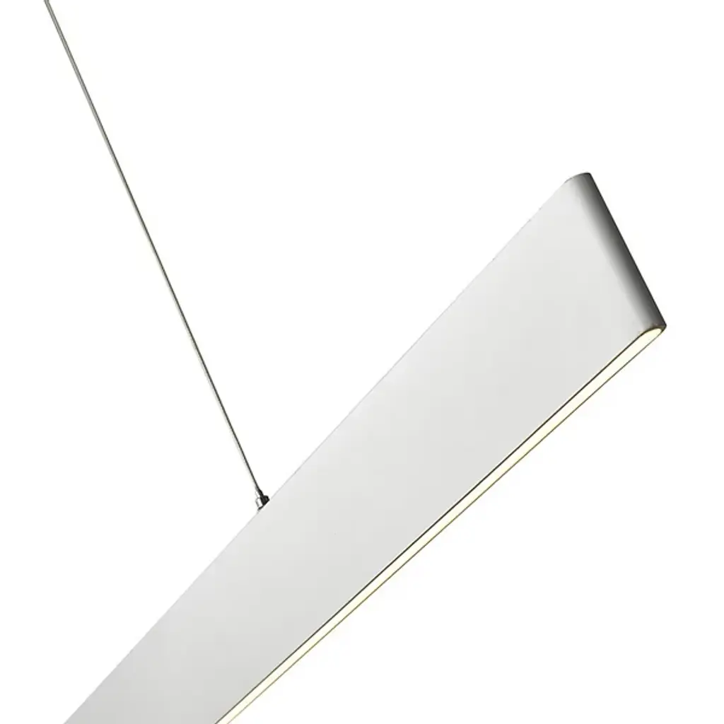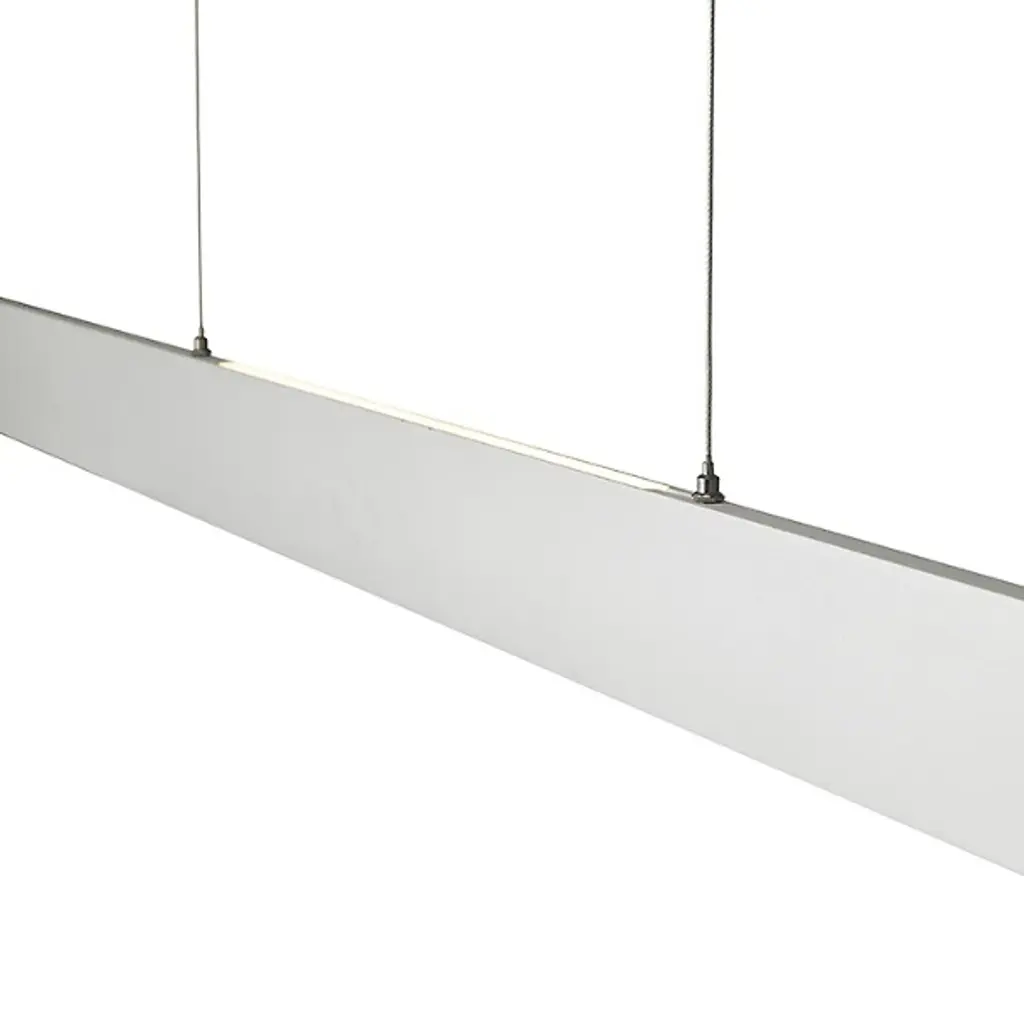 The Mario LED Linear Suspension Light from Huxe complements a dining room's modern sensibilities with a slick, streamlined composition. The structure is milled into its rounded bar shape and finished with a sophisticated brushed texture by hand. Ultra-sleek aircraft cables power the piece and suspend it with tasteful vertical accents. The aircraft cables demarcate the edges of an opening on the top surface of the housing. Its bottom side is completely left open, capped as the top with an acrylic diffuser. Dynamic illumination is realized as integrated LEDs produce an accented uplight and uniform downlight