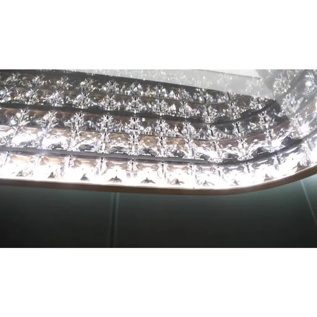 Simple, sweeping, and cleverly contemporary. The Marquis LED Linear Suspension from Schonbek Beyond offers a broad, appealing addition to large, high-ceilinged spaces. A sleek steel fixture descending from a long, stepped canopy via parallel downrods, it sets strong, damp-rated LED lamping inside a long oval shade, while a series of clear Swarovski crystals set inside the housing act as a tasteful diffuser layer. The faceted crystal blunts direct glare, transforming it into a warm ambiance accented by a gleaming, opulent accent.