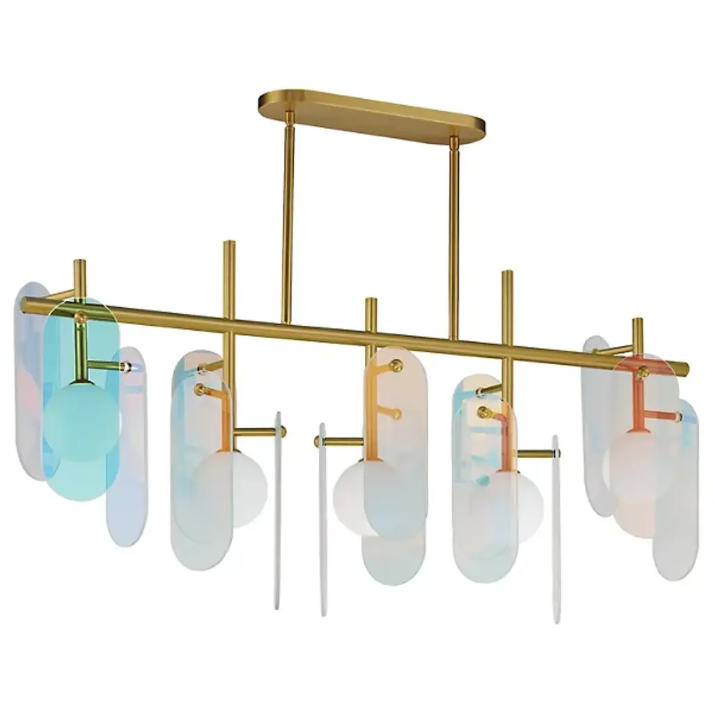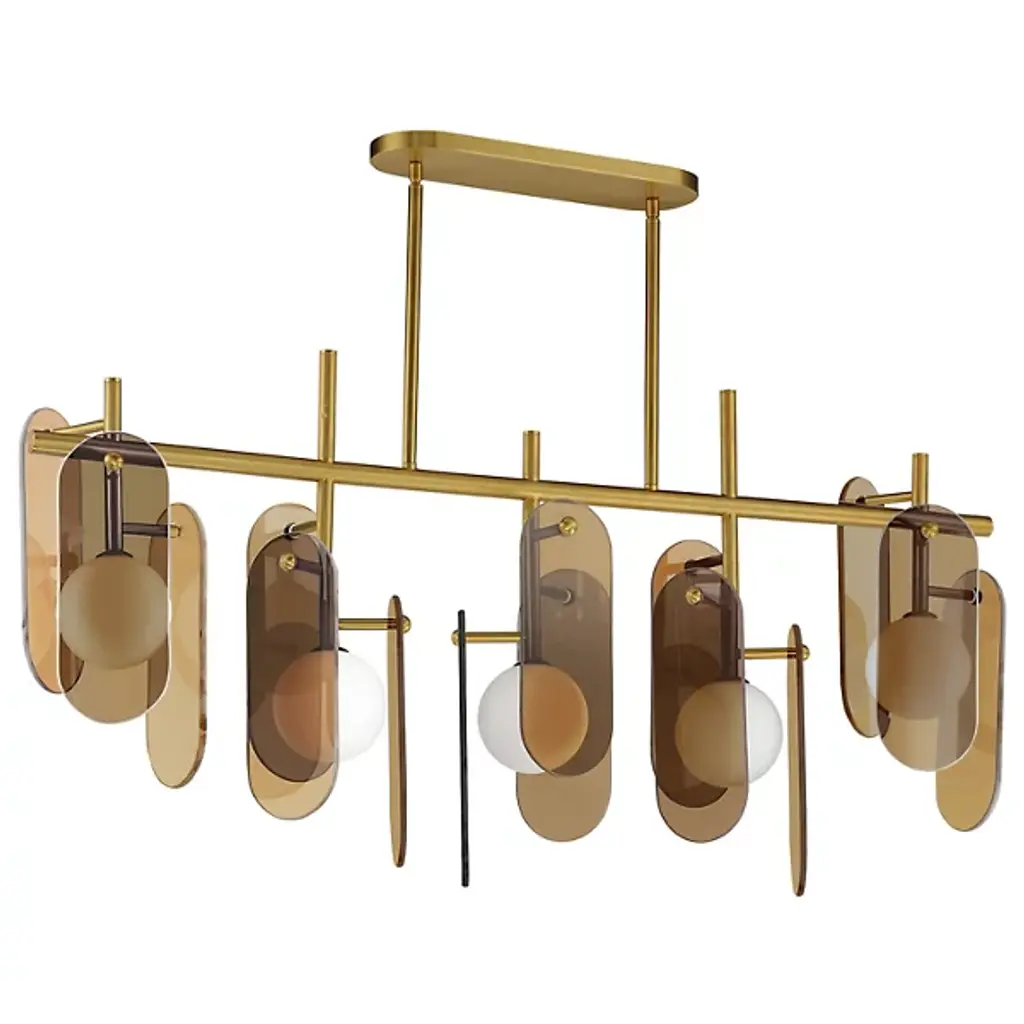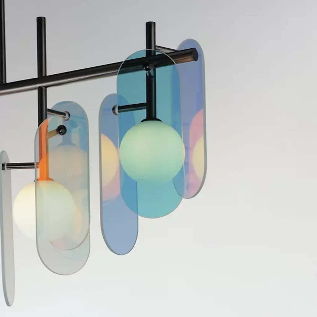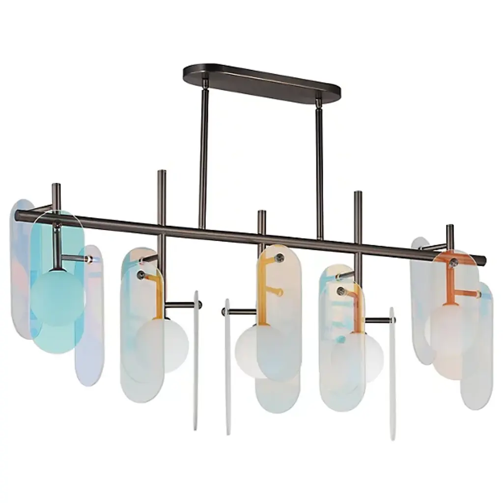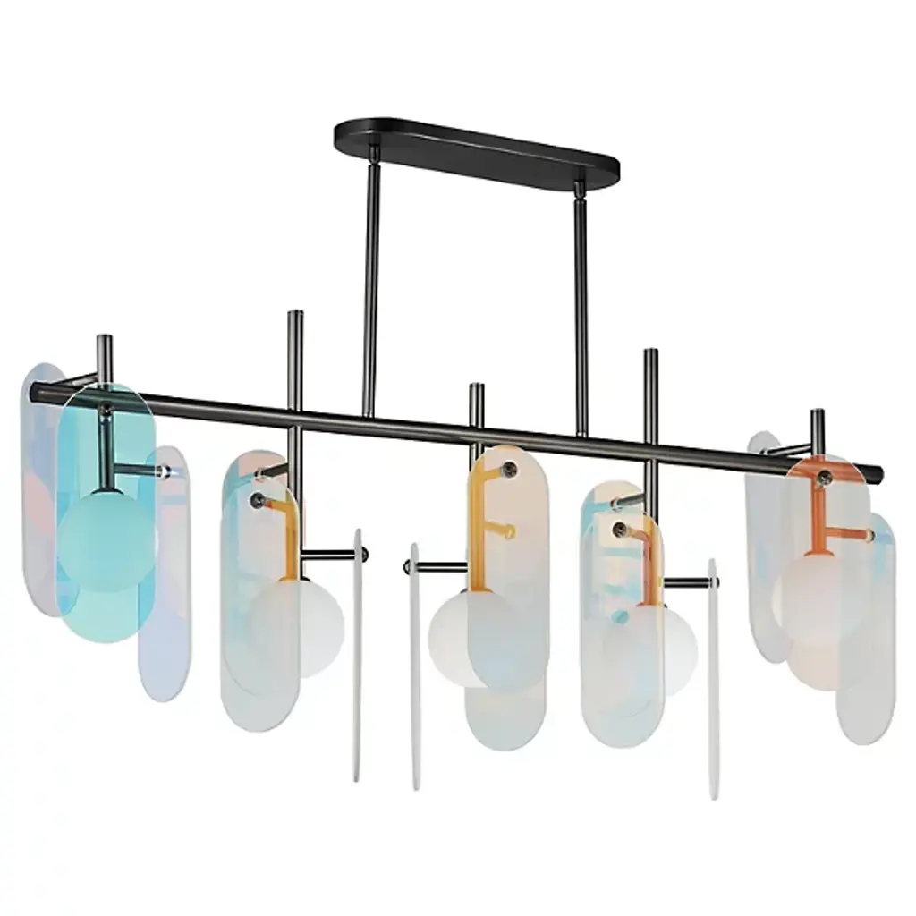 Fashioned as an ode to the timeless allure of glass, the Megalith Linear Suspension from Studio M embodies enduring elegance. Supported by robust iron stems descending from an oval canopy, it extends to cradle an assortment of oval-shaped translucent glass panels, each bathed in the gentle glow emitted by white-cased glass globes at their core; the fixture presents a captivating spectacle of indoor illumination. A diverse array of color options are available for the glass shades and the metal finish, ranging from subtle hues to vibrant tones, allowing for critical customization. The piece exudes an air of luxury and refinement, imparting a sophisticated ambiance that combines aesthetic allure with customizable versatility.