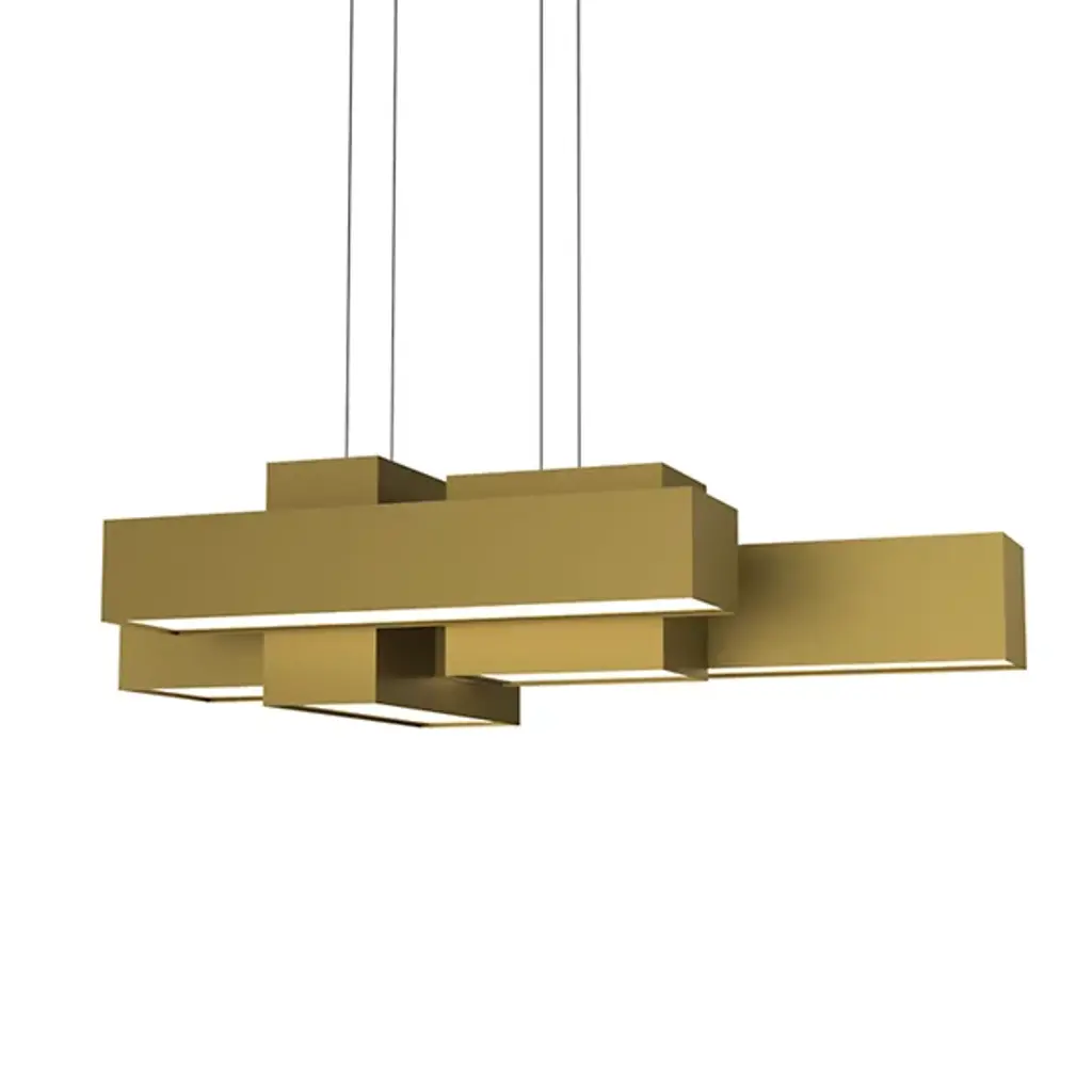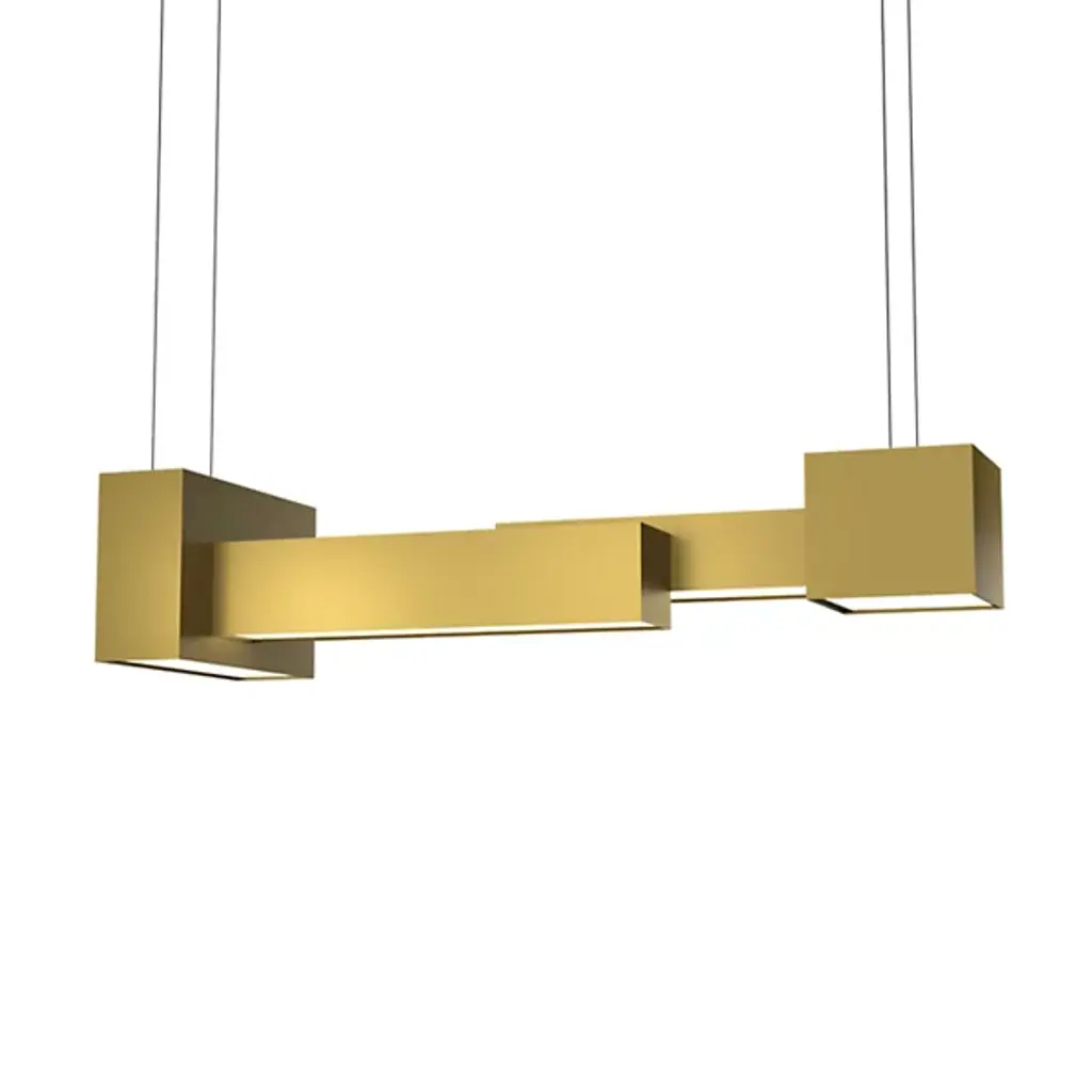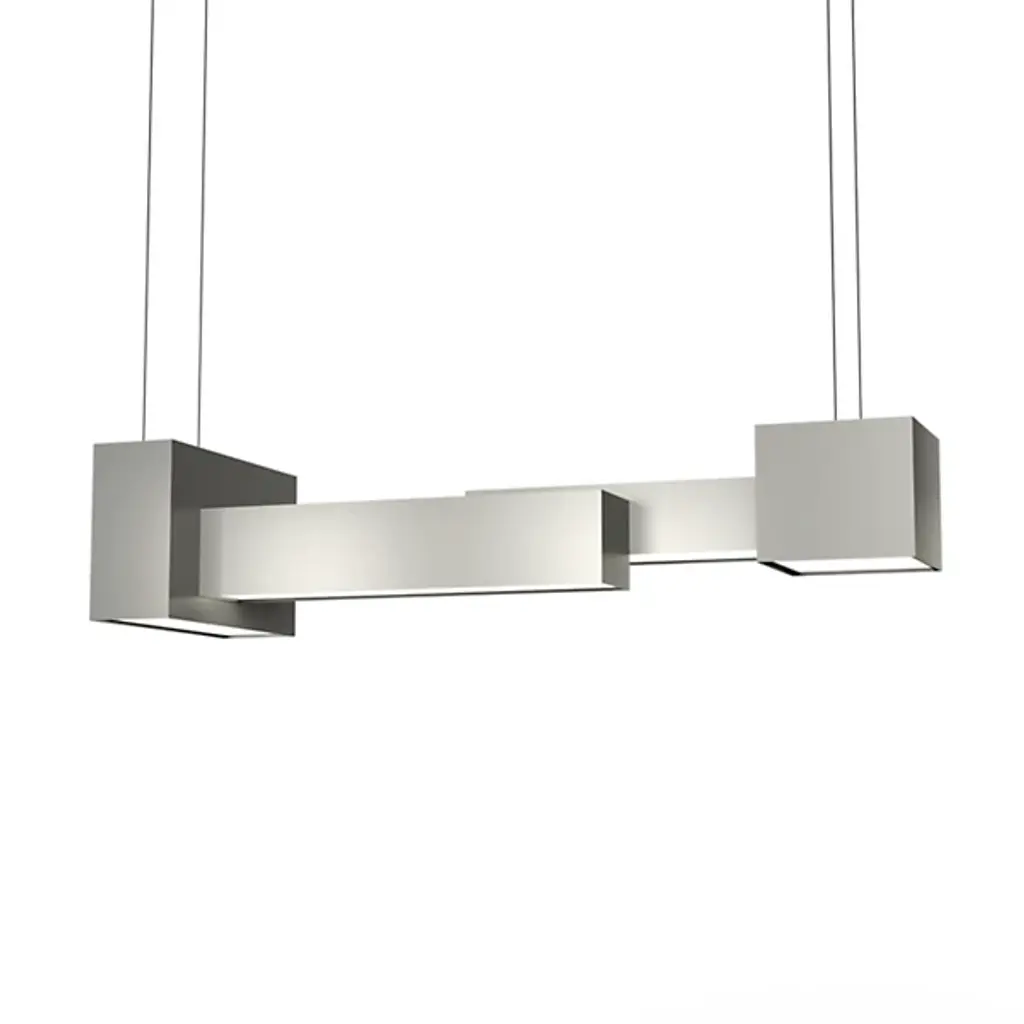 The Metro 24526 LED Linear Suspension from UltraLights features an asymmetrical design that creates a unique view from each perspective. Modular-style boxes of varying dimensions work with the light shining through the opal acrylic shade beneath to create a beautiful show of reflection and shadow. Made in the United States, these boxes house high-efficiency LEDs and are UL Listed Damp, making this fixture suitable for hospitality, commercial, or residential applications.