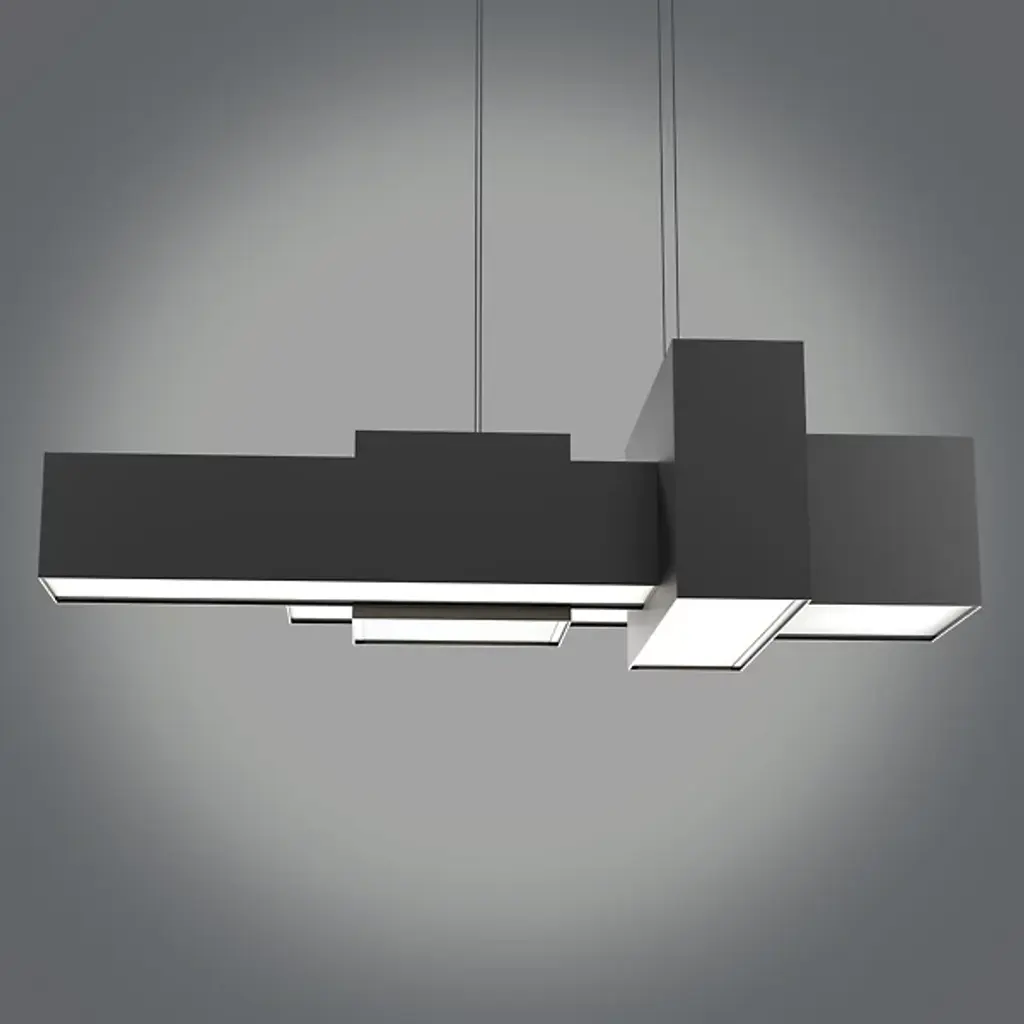 The Metro 24527 Linear Suspension from UltraLights offers a striking asymmetrical design that provides a unique visual experience from every angle. Modular-style boxes in varying dimensions combine with the opal acrylic shade below to create a captivating interplay of light, shadow, and reflection. Crafted in the United States, this fixture features high-efficiency LEDs and is UL-Listed for damp locations, making it an excellent choice for hospitality, commercial, or residential settings.