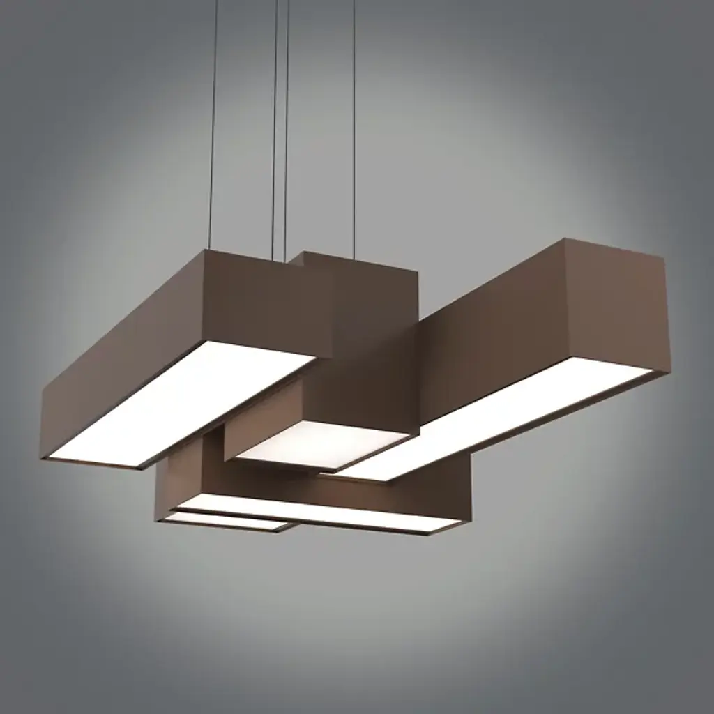 The Metro 24527 Linear Suspension from UltraLights offers a striking asymmetrical design that provides a unique visual experience from every angle. Modular-style boxes in varying dimensions combine with the opal acrylic shade below to create a captivating interplay of light, shadow, and reflection. Crafted in the United States, this fixture features high-efficiency LEDs and is UL-Listed for damp locations, making it an excellent choice for hospitality, commercial, or residential settings.