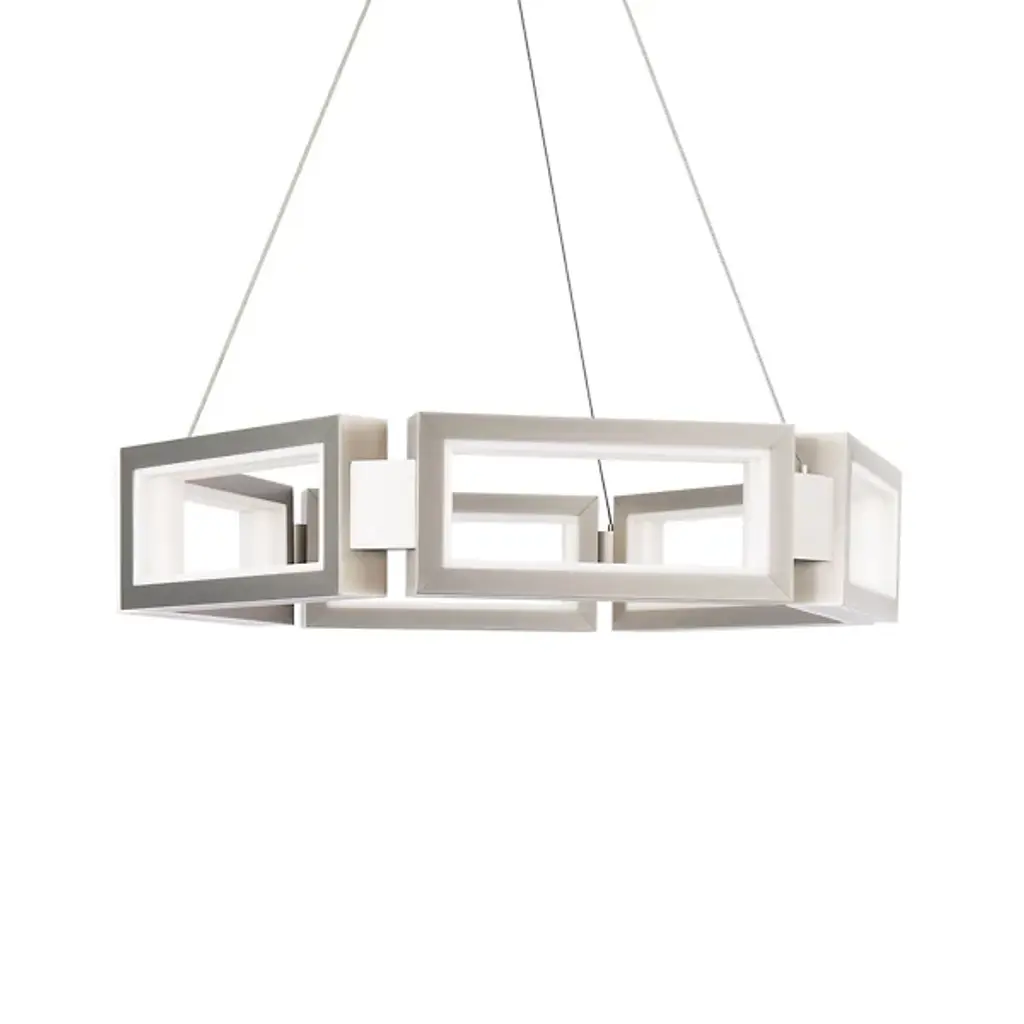 The Metro 24527 Linear Suspension from UltraLights offers a striking asymmetrical design that provides a unique visual experience from every angle. Modular-style boxes in varying dimensions combine with the opal acrylic shade below to create a captivating interplay of light, shadow, and reflection. Crafted in the United States, this fixture features high-efficiency LEDs and is UL-Listed for damp locations, making it an excellent choice for hospitality, commercial, or residential settings.